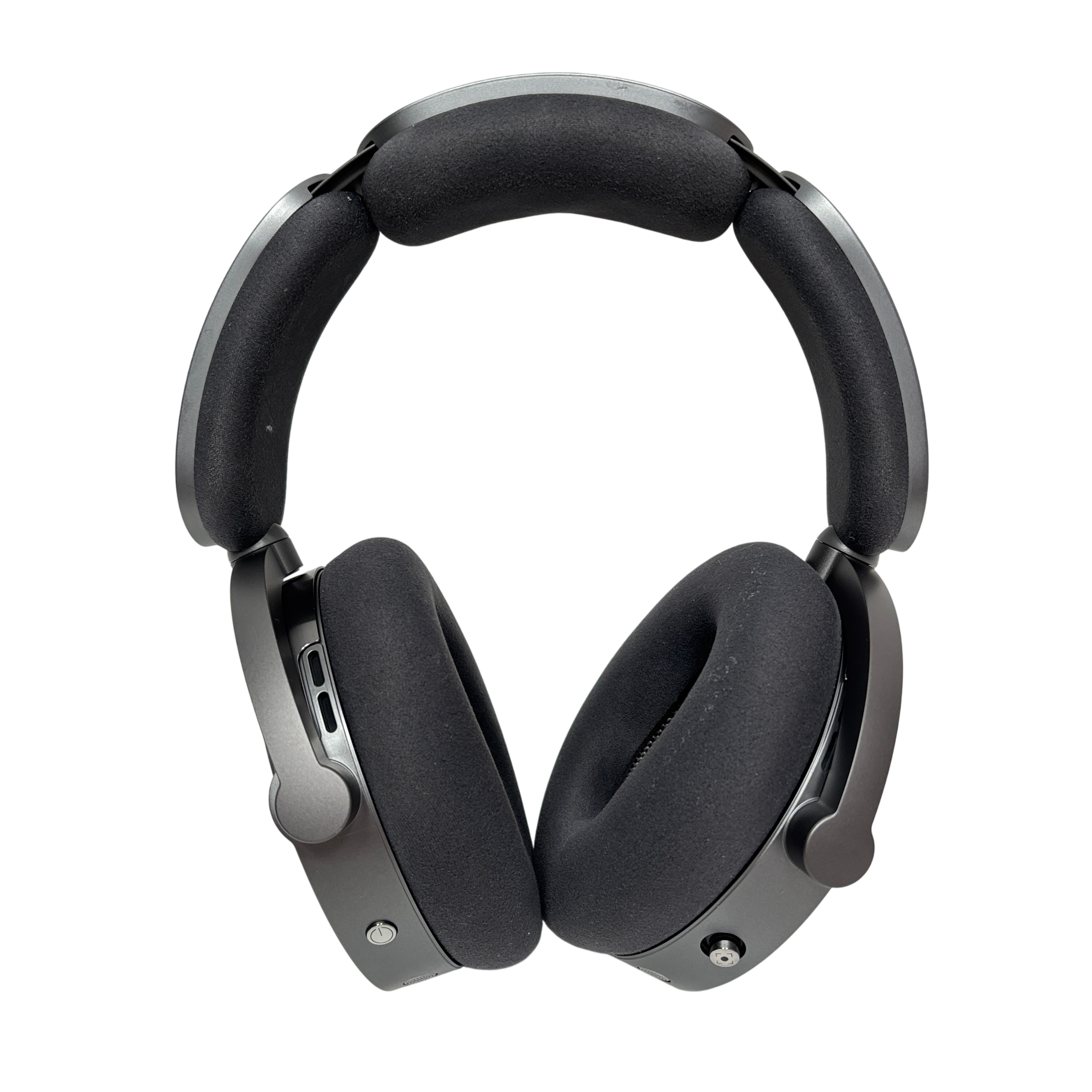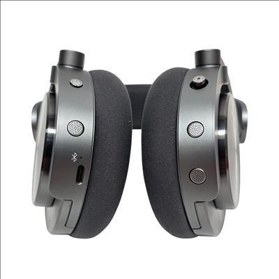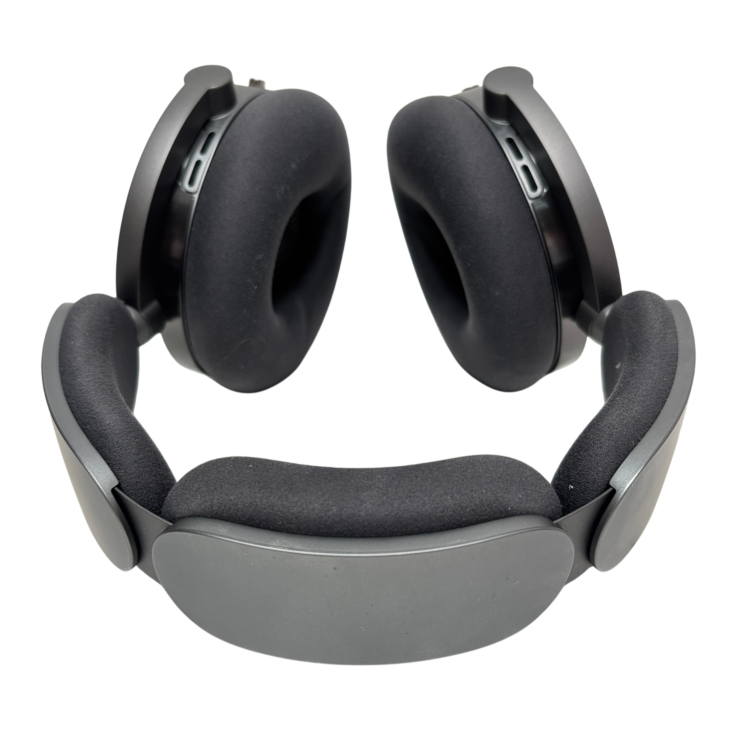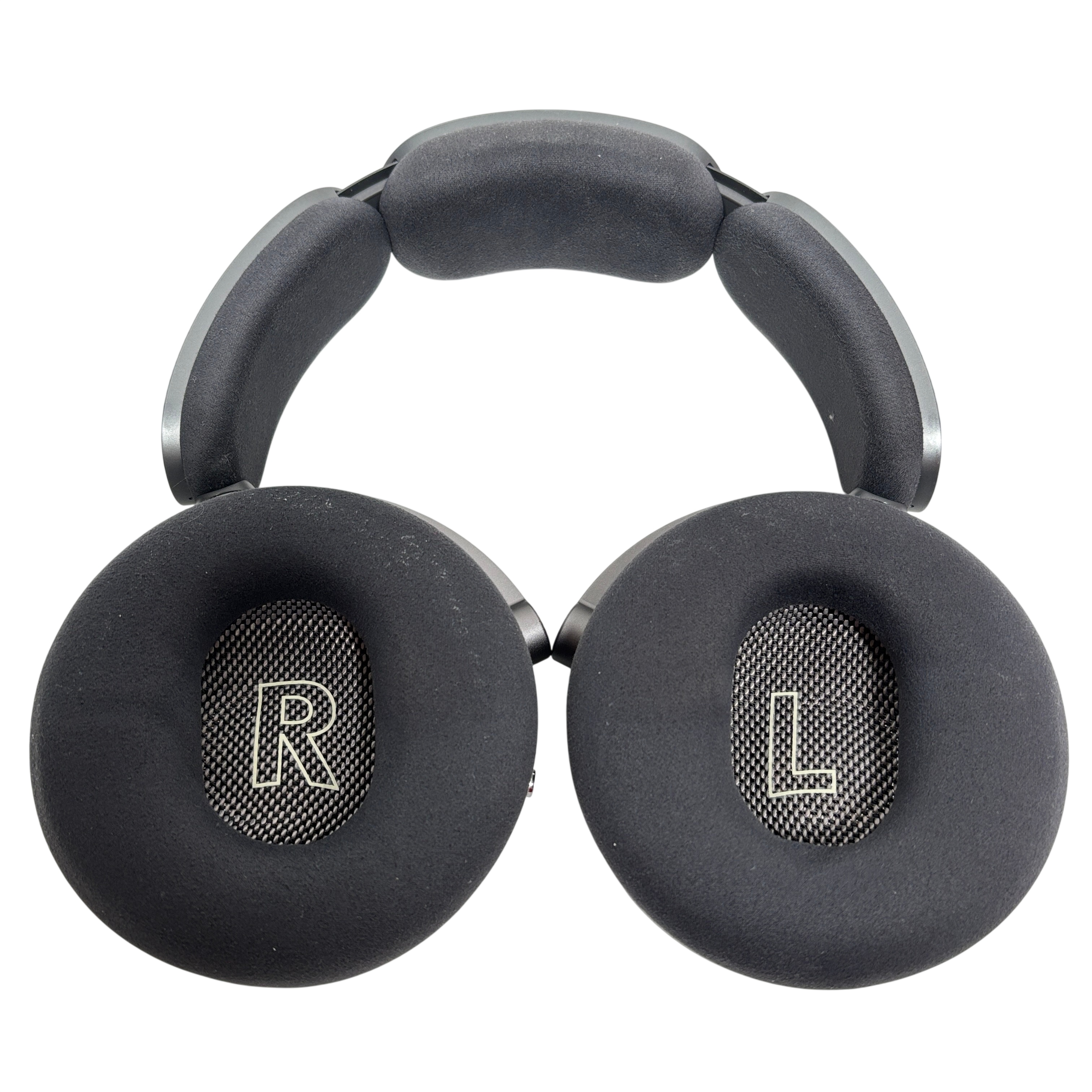Dyson Ontrac Headphones offer a premium over-ear listening experience with a sleek gunmetal gray design and plush padded ear cushions for extended comfort. These wireless headphones come with a charging cord and protective case, ensuring convenience and portability. Designed for high-quality sound and durability, the Dyson Ontrac headphones are ideal for immersive audio enjoyment at home or on the go.