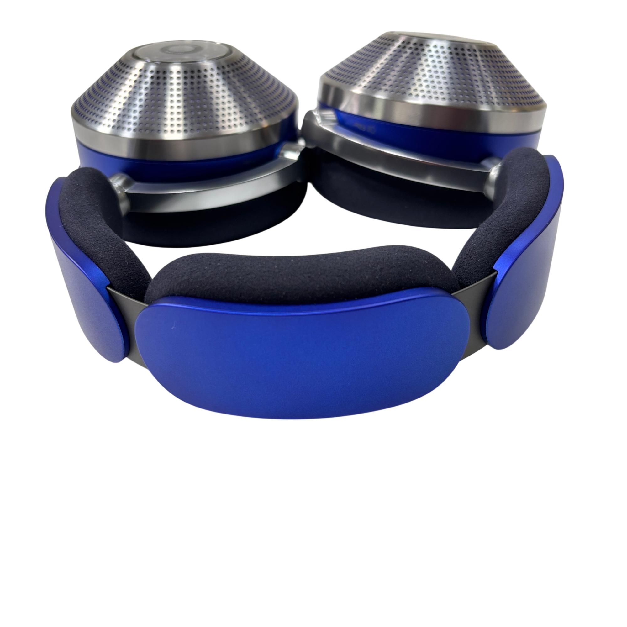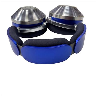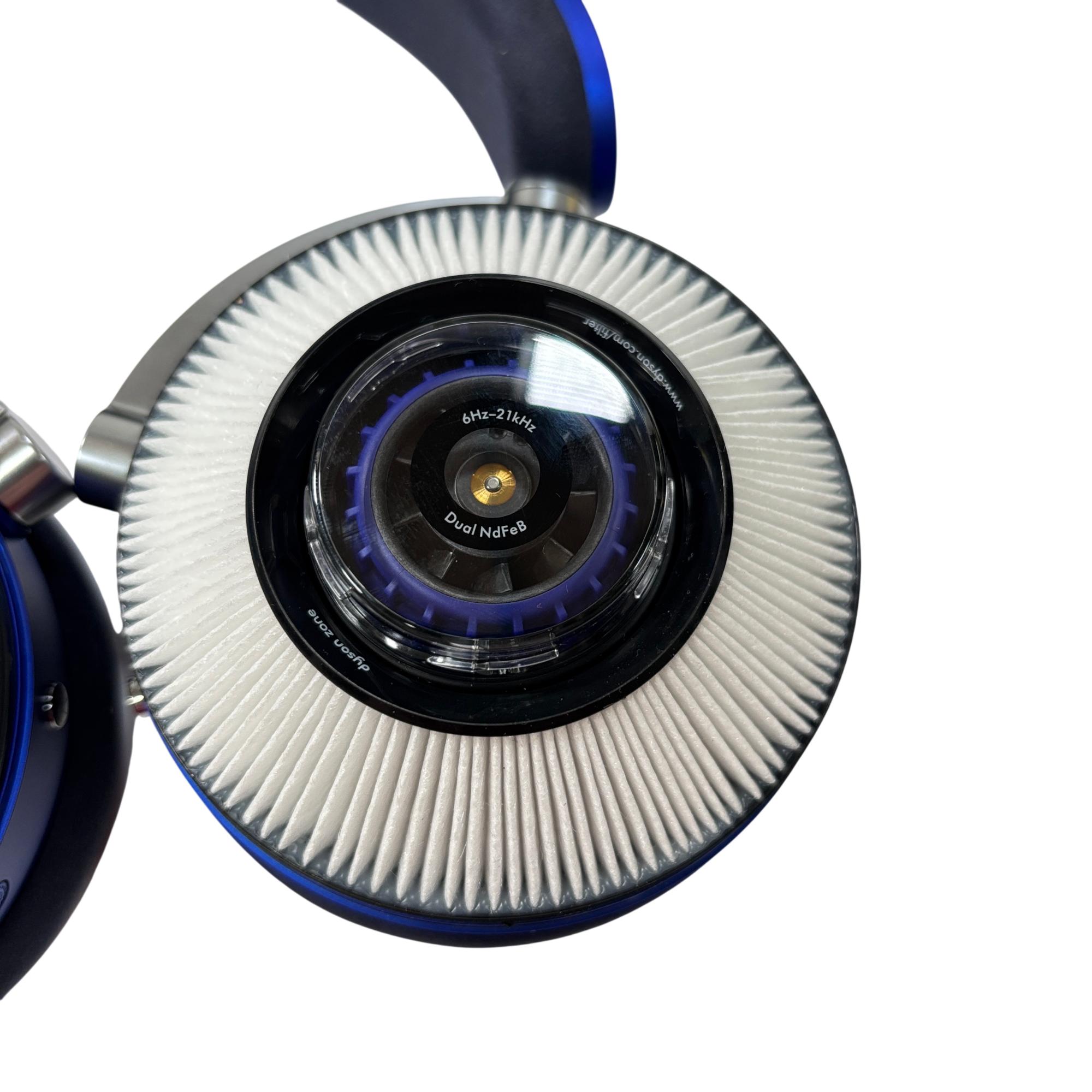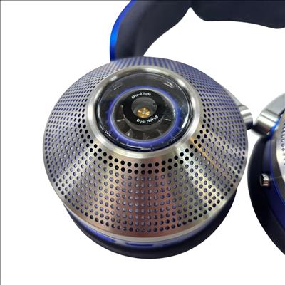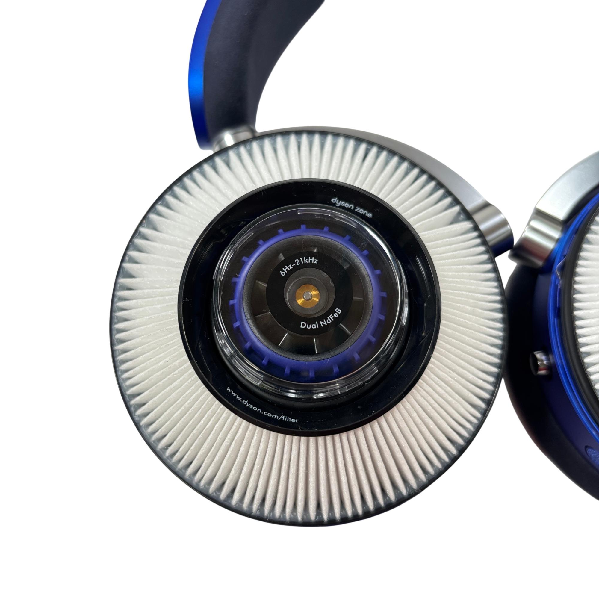 Dyson Zone WP01 Wireless Noise-Cancelling Air Purifying Headphones in blue and silver feature advanced dual NdFEB drivers delivering a frequency response from 6Hz to 21kHz for rich, immersive sound. These innovative headphones combine cutting-edge noise cancellation technology with integrated air purification, designed to enhance audio experience while filtering surrounding air.