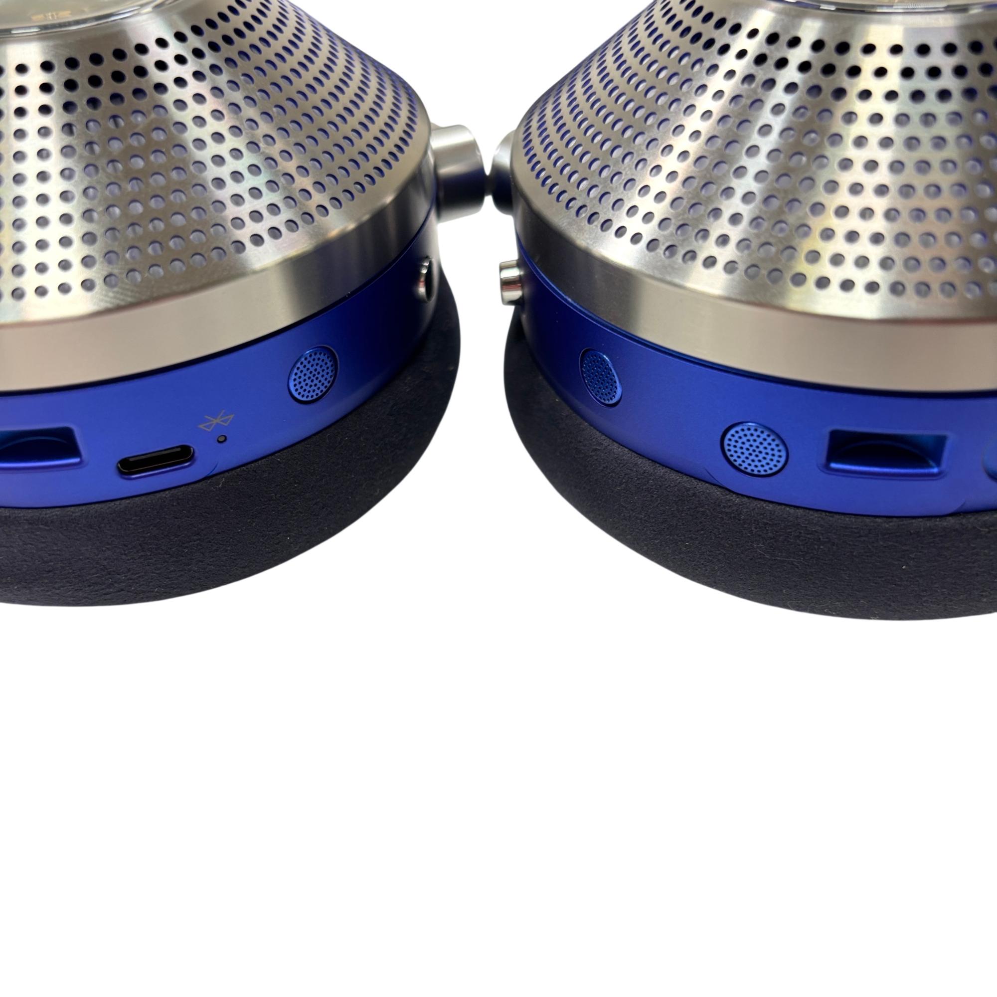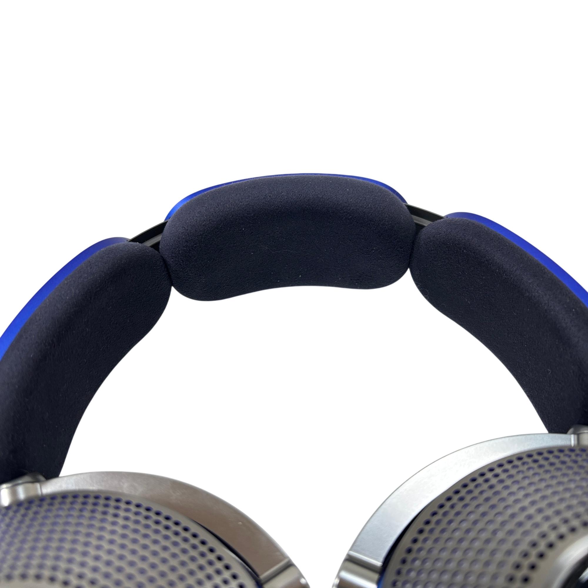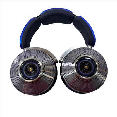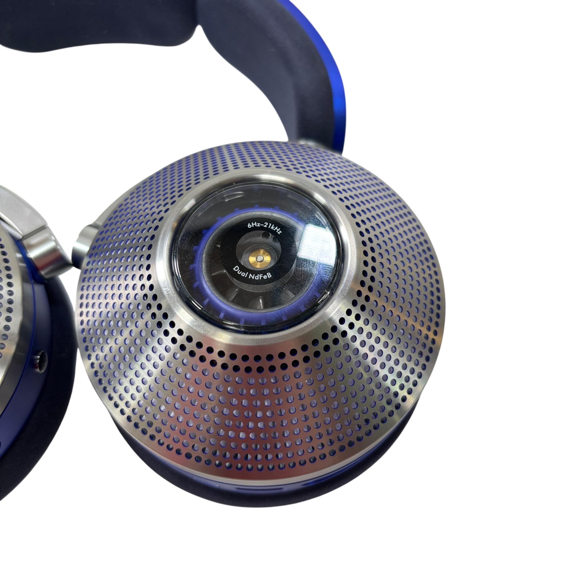 Dyson Zone WP01 Wireless Noise-Cancelling Air Purifying Headphones in blue and silver feature advanced dual NdFEB drivers delivering a frequency response from 6Hz to 21kHz for rich, immersive sound. These innovative headphones combine cutting-edge noise cancellation technology with integrated air purification, designed to enhance audio experience while filtering surrounding air.