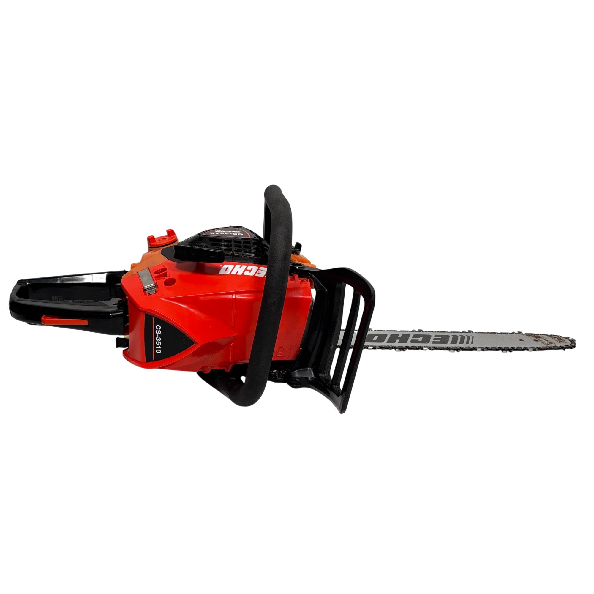 A lightweight gas-powered unit designed for both homeowners and professionals, featuring a 34.4cc 2-stroke engine with an i-30 starting system that reduces effort when pulling the cord. It is equipped with a 3-point spring vibration reduction system for increased comfort, an automatic clutch-driven chain oiler that only operates when the chain is moving, and a side-access chain tensioner for quick adjustments. The air injection cleaner system helps extend filter life by separating dirt and debris before it reaches the air filter. Additional features include bumper spikes, chain brake, chain catcher, electronic ignition, a translucent fuel tank for easy level checks, and an overall lightweight build that reduces fatigue during extended use.