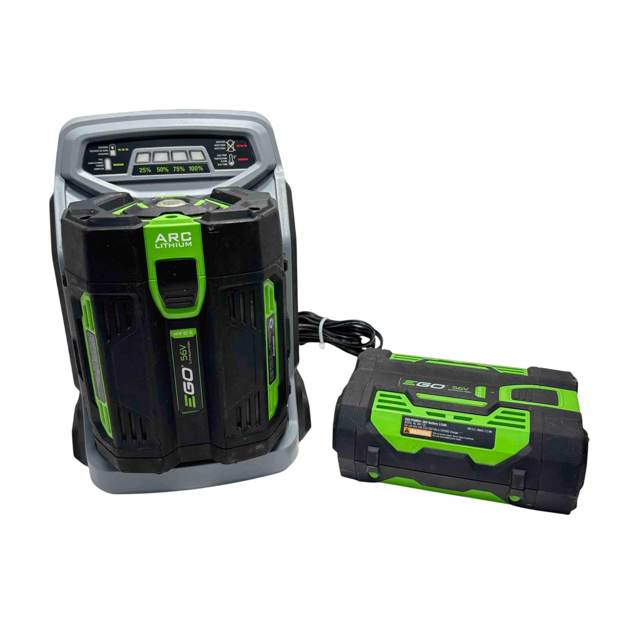 Charge faster and work longer with the EGO Power+ CH5500 Rapid Charger and 5.0Ah + 2.0Ah ARC Lithium 56V Battery Kit. Designed for professionals and homeowners alike, this set is perfect for powering all your EGO Power+ cordless outdoor tools with industry-leading efficiency and reliability. The advanced battery technology maximizes runtime, while the rapid charger minimizes downtime—making it a must-have for your yard and garden projects.