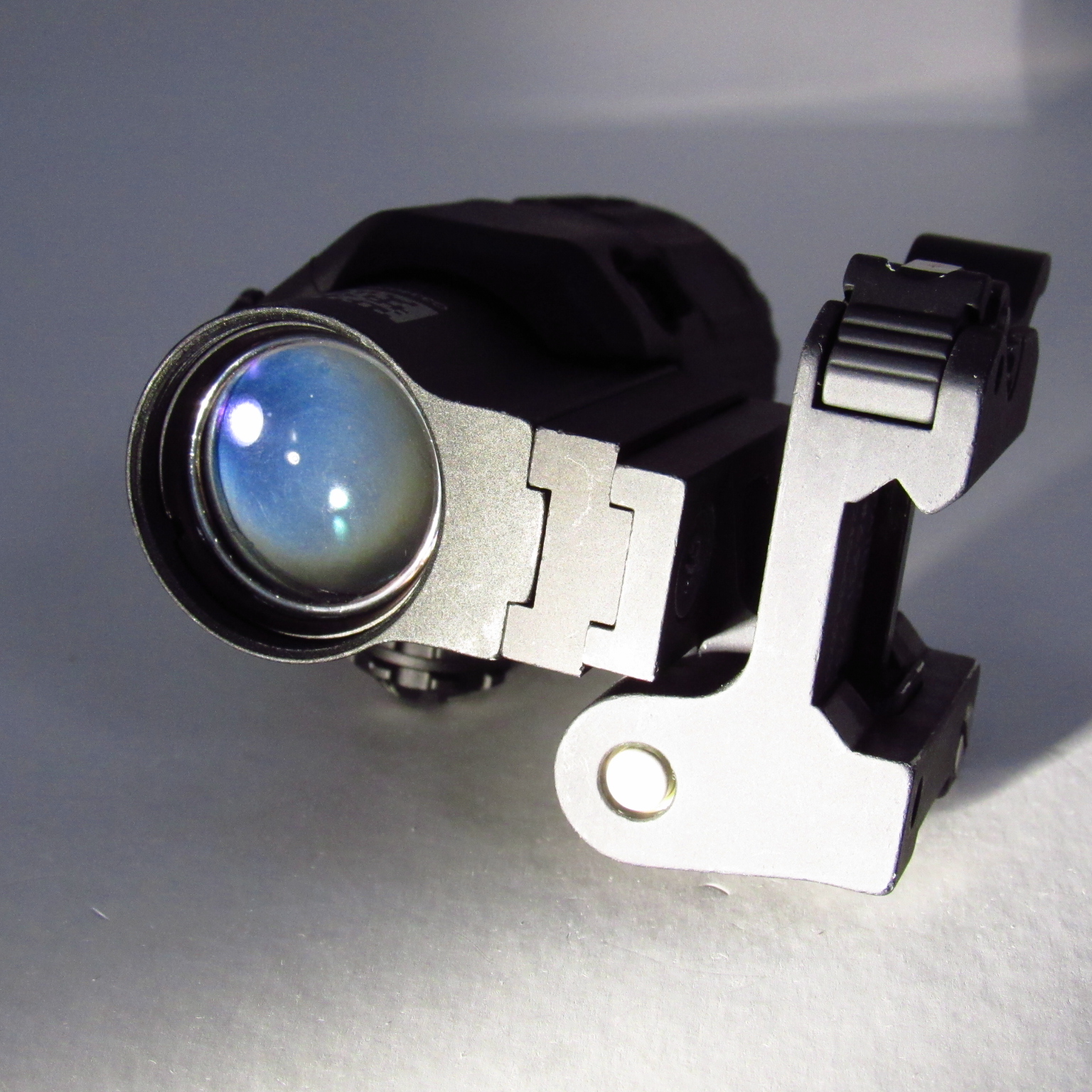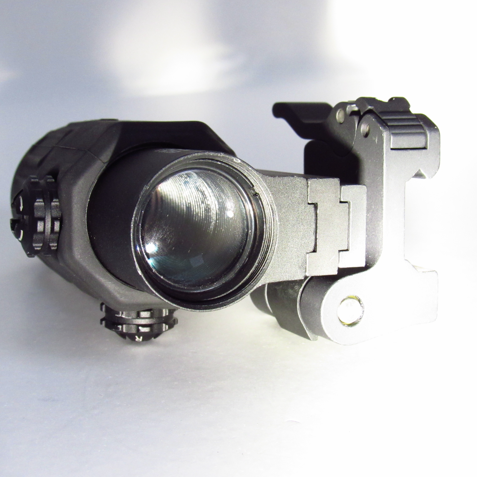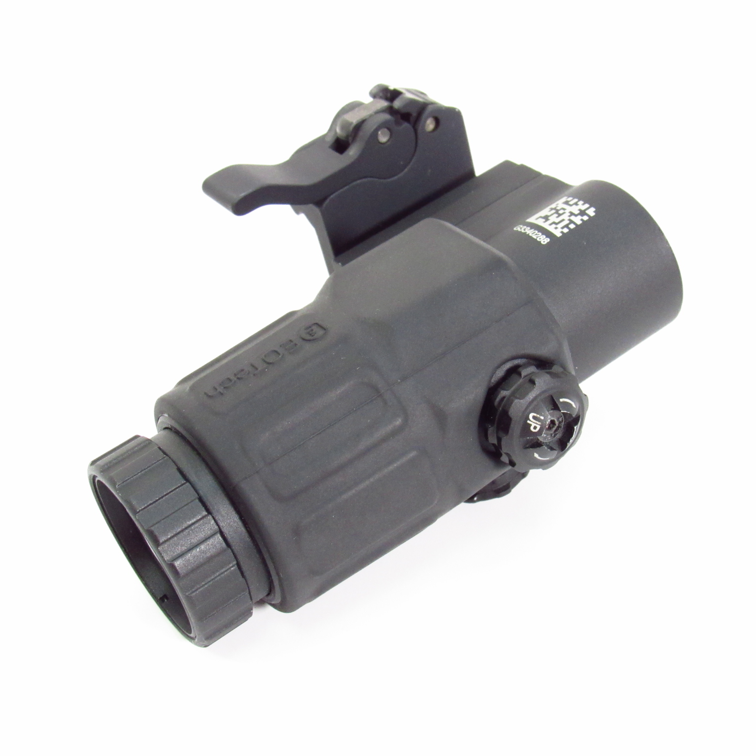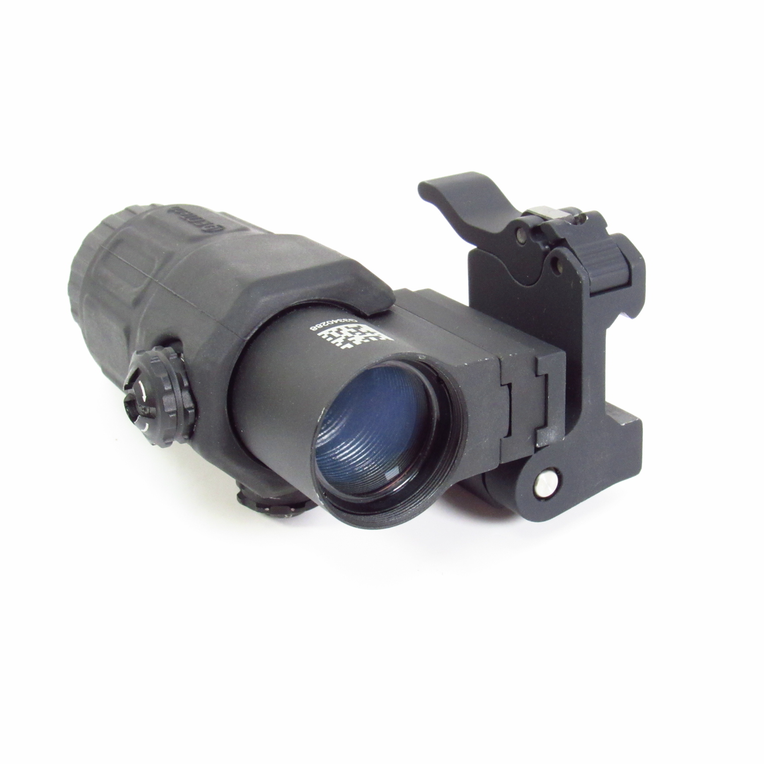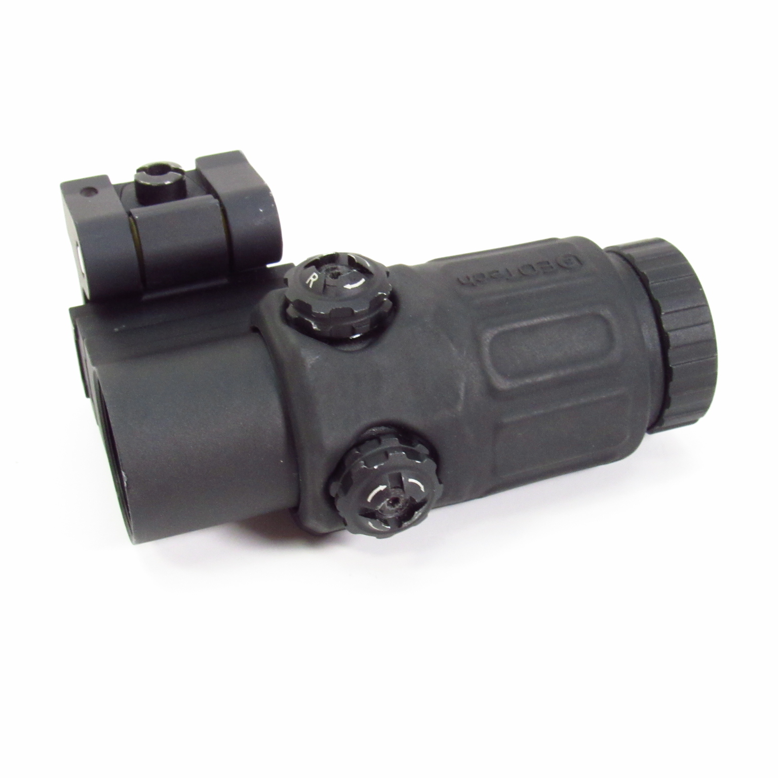 The G33 Magnifier is the selected magnifier of USSOCOM, and is compact and lightweight. The mount provides fast transitioning from 3X to 1X, and the optic offers tool-free vertical and horizontal adjustments, larger field-of-view and an adjustable diopter for improved, precise focusing. The G33 works with all EOTECH HWS models.