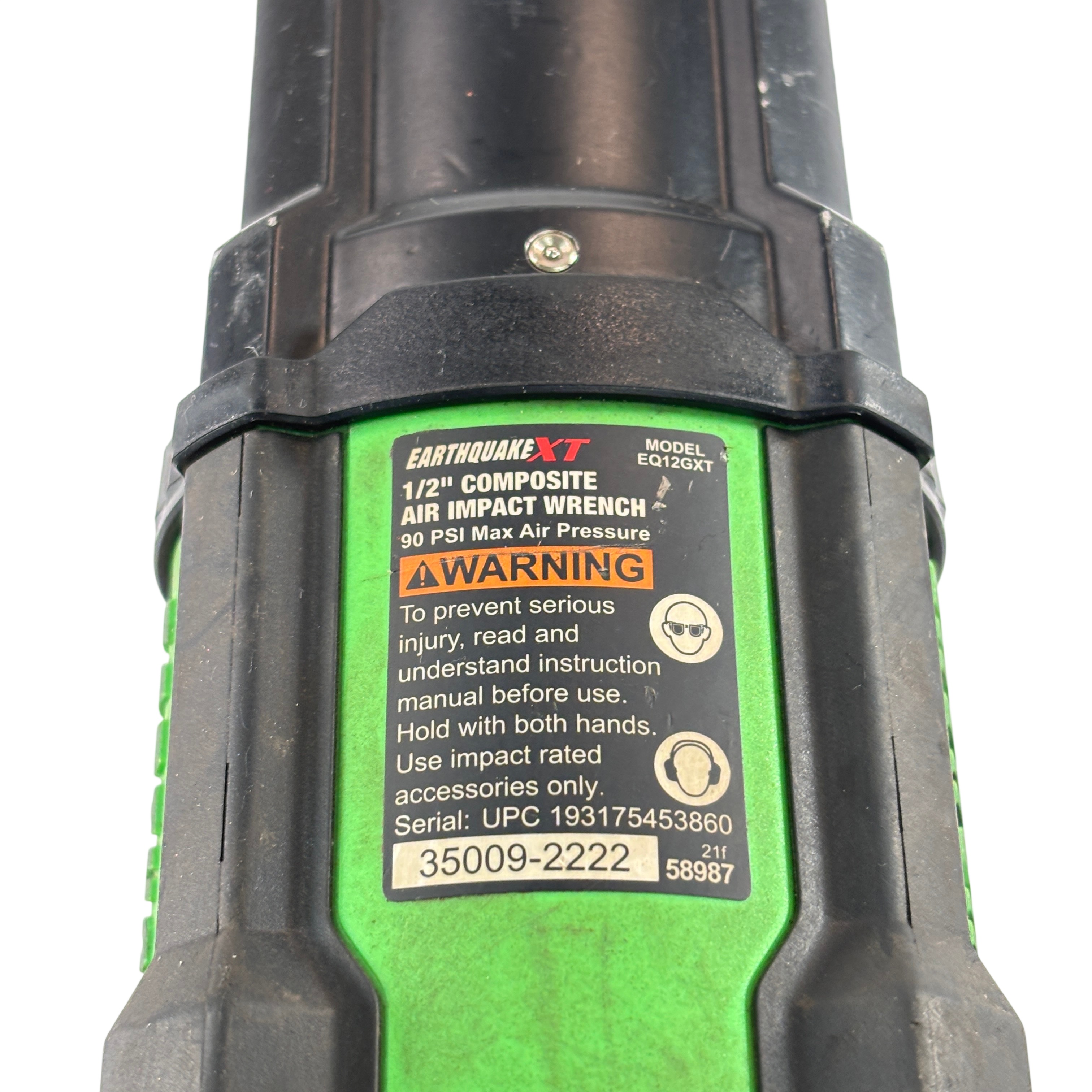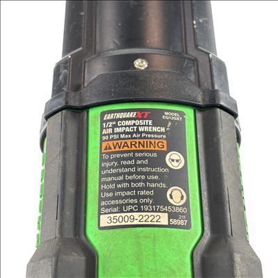 The Earthquake XT EQ12GXT 1/2" Air Impact Wrench is a professional-grade 1/2-inch air impact wrench delivering up to 1,200 ft-lbs of bolt breakaway torque. Its twin-hammer mechanism provides powerful, high-torque performance with reduced vibration, while the lightweight composite housing and rubber overmold minimize operator fatigue.