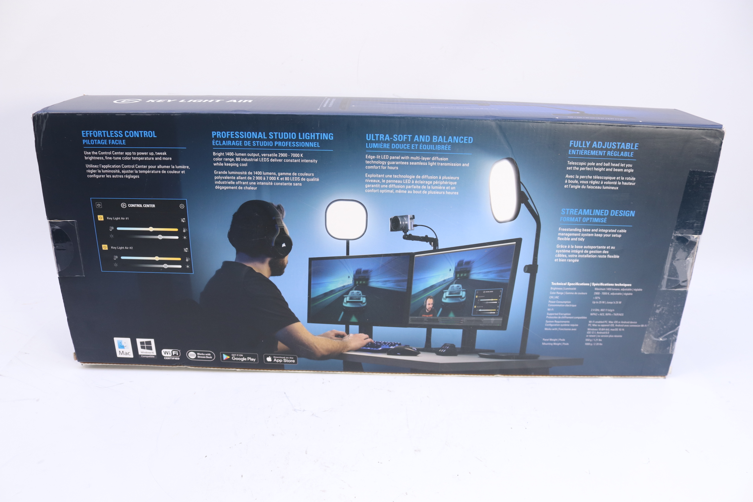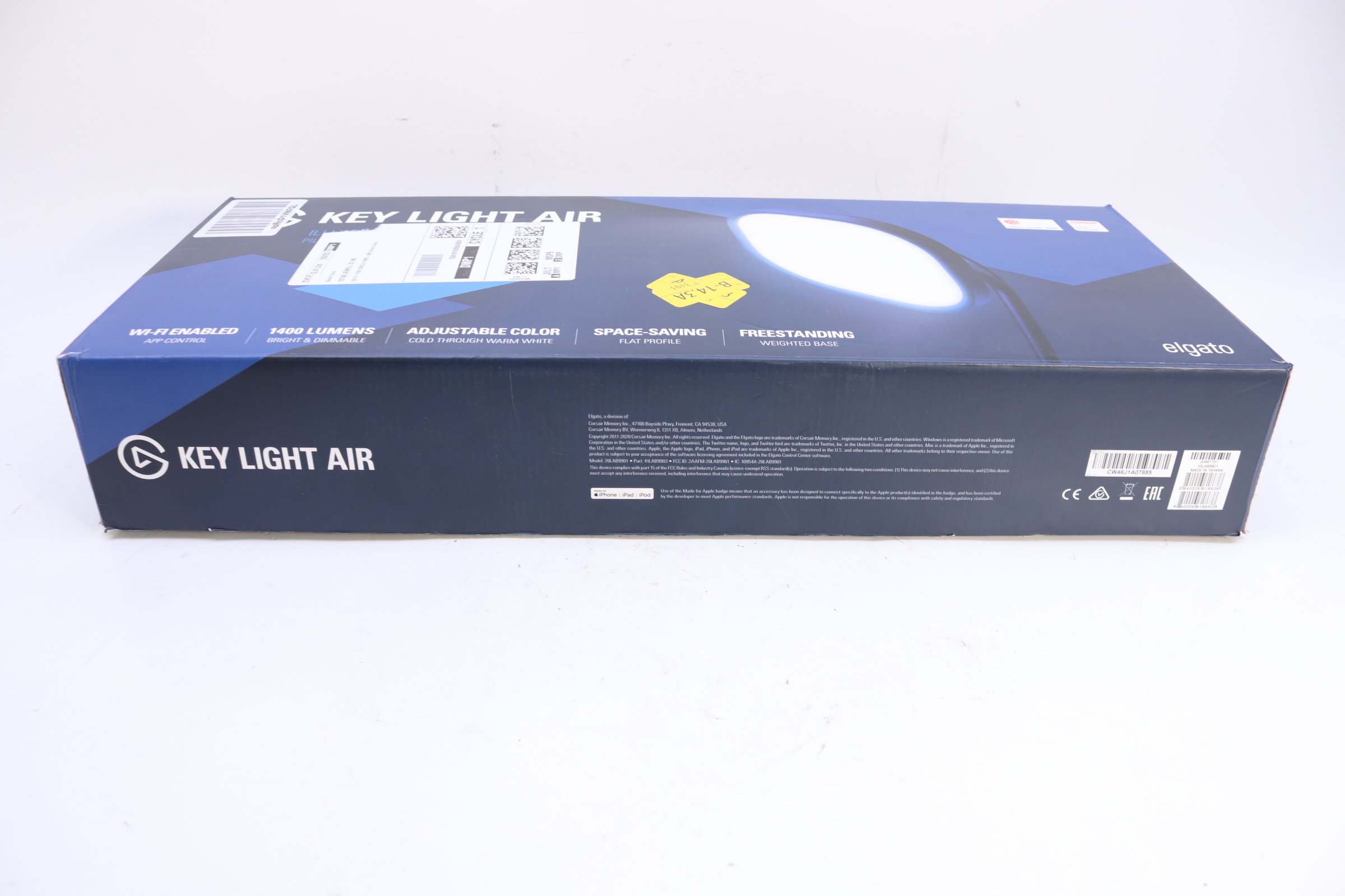 Provide quality lighting for recording sessions with this 1400-lumen Elgato Key Light Air LED panel. The Wi-Fi-enabled app lets you customize light settings from anywhere on set, while the multilayer diffuser delivers soft illumination. This adjustable Elgato Key Light Air LED panel has a freestanding base and an integrated cable rail for a sleek and tidy setup.