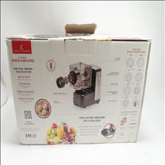 4-in-1 electric pasta and noodle maker is fully automatic - just one machine does the mixing, kneading, and extruding for you, making it easy, fun, and convenient to serve your family and friends delicious, made-from-scratch pasta faster than you can go to the store.Supply Power : 120V - 60Hz, Rated Power : 150W.