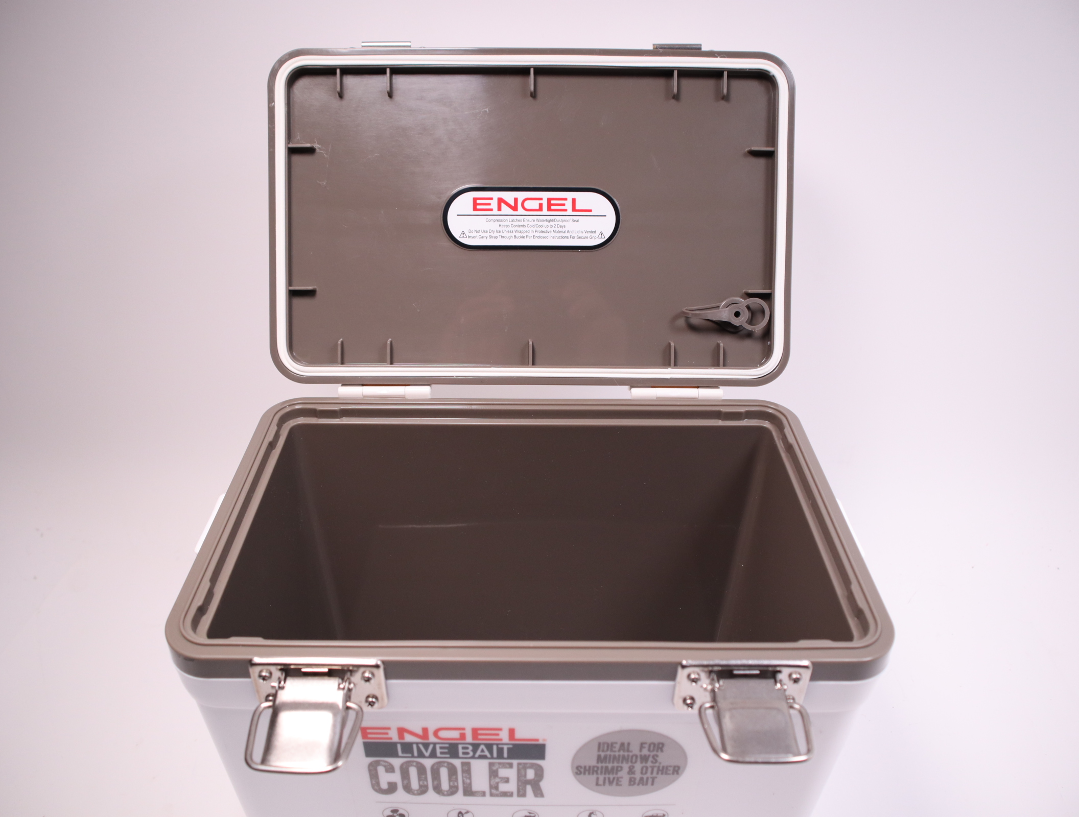 ENGEL HIGH-PERFORMANCE INSULATION: Features high-grade molded polystyrene foam insulation with hard plastic outer shell heat barrier; Perfect for keeping you bait cool and alive for longer