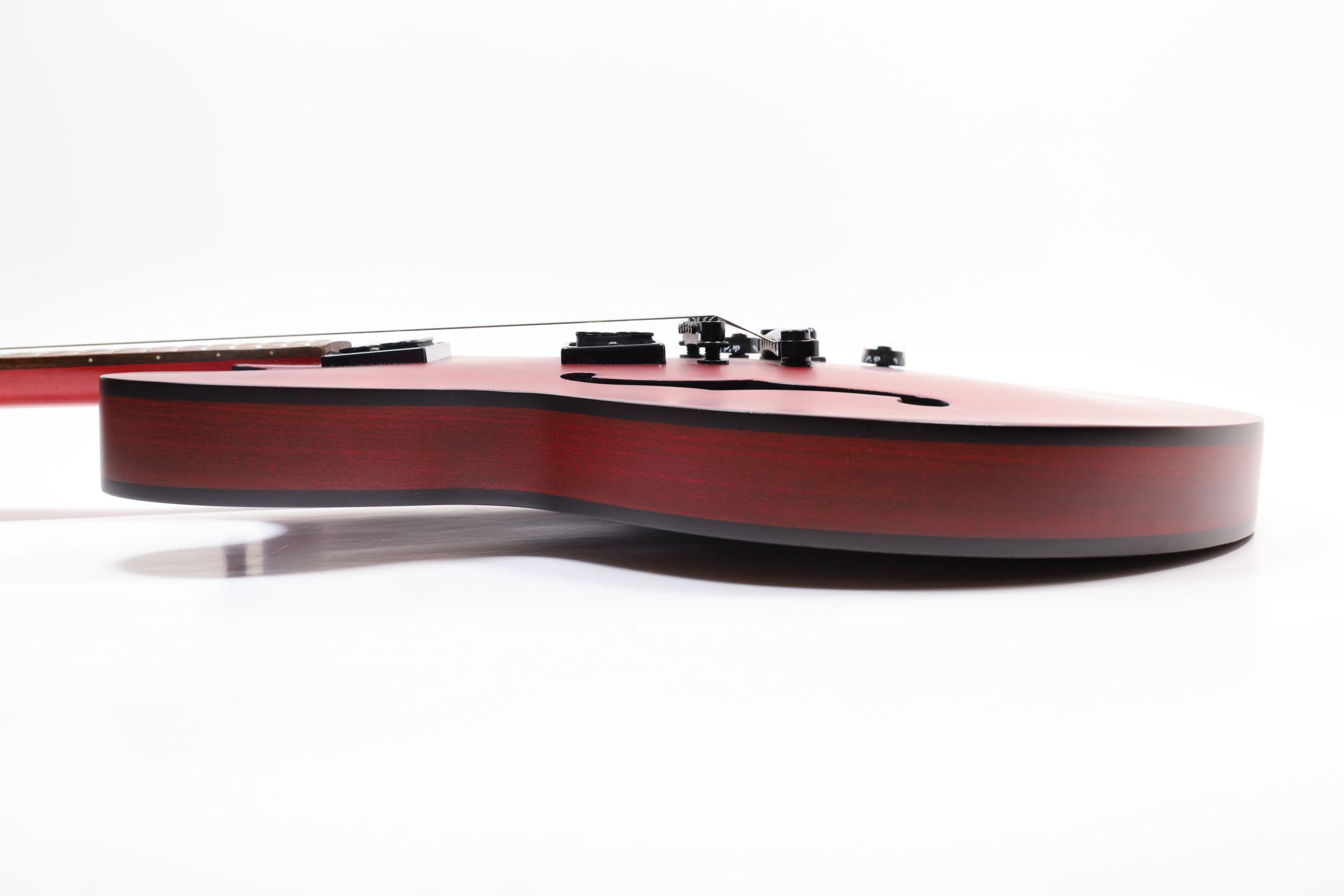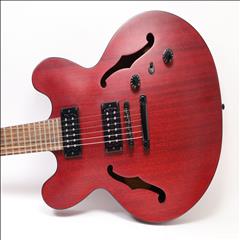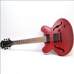A versatile instrument known for its classic style and great tone. It features a laminated maple body with a flamed maple top, a mahogany neck, and a rosewood fretboard. The guitar is equipped with two Alnico V pickups, a 3-way selector switch, and master volume and tone controls. Drawing on the classic 335 vibe, it has a mahogany top, back, sides, and set neck. When overdriven, it delivers hot blues and rock tones, and when clean, it provides thick jazz tones. The guitar has a scale length of 24-3/4", a nut width of 1-17/25", and features a LockTone Tune-O-Matic bridge and stopbar tailpiece for more sustain and easier string changing.