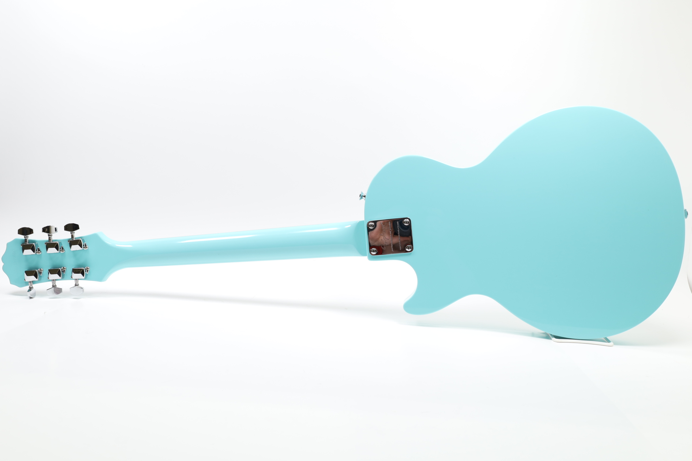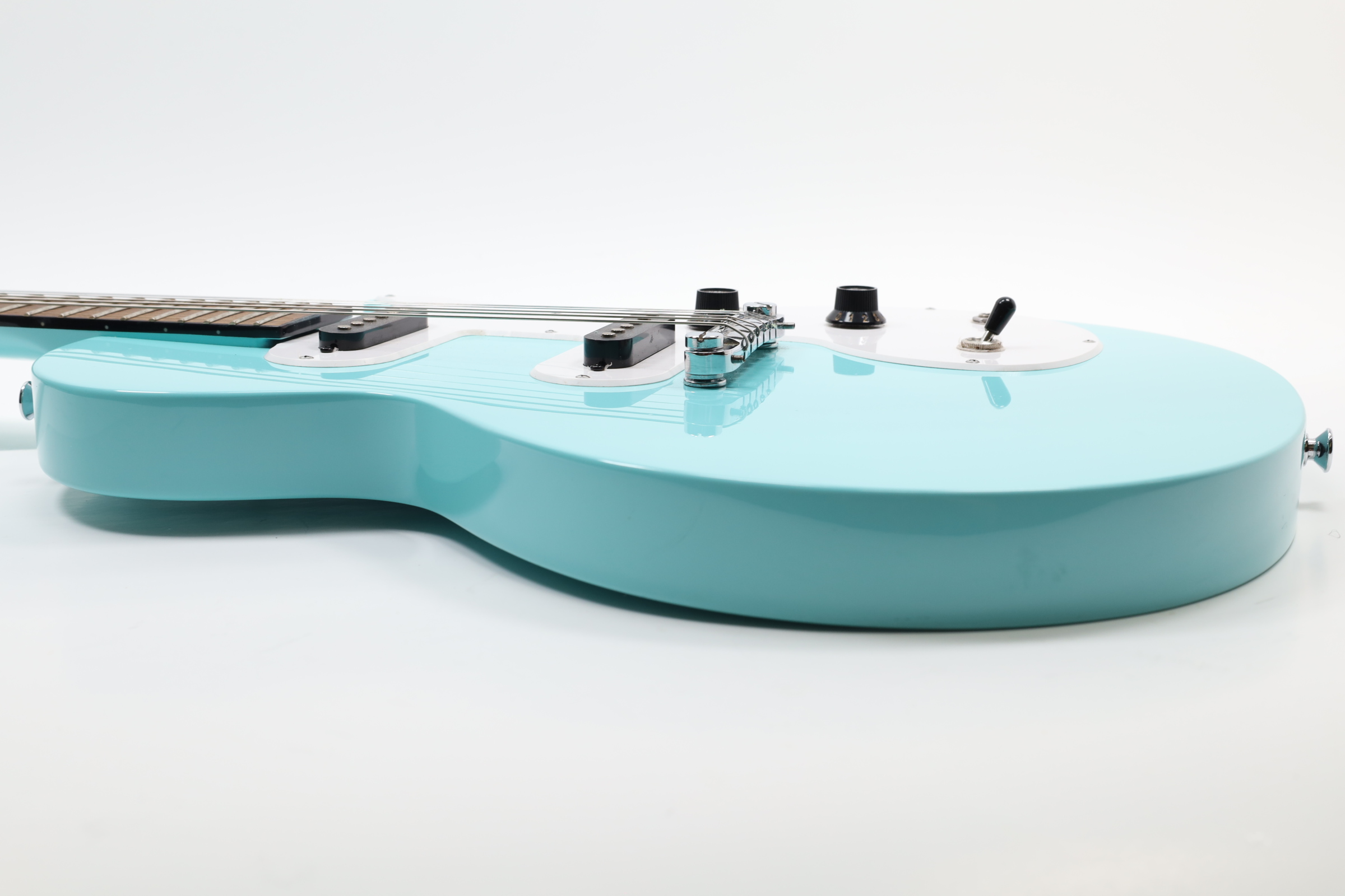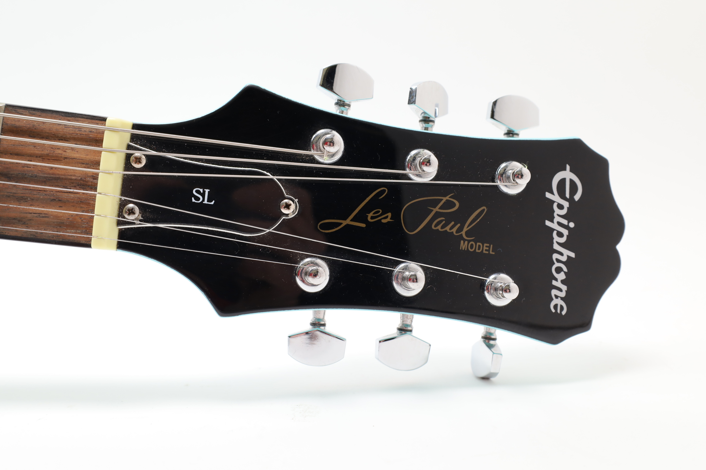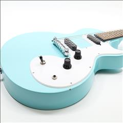 A 6-string right-handed electric guitar that offers an affordable entry into the Les Paul lineup with a slim, lightweight poplar body for easy playability. It features powerful Epiphone Ceramic pickups, with a 650SCR Ceramic Single-Coil in the neck position and a 700SCT Ceramic Single-Coil at the bridge, controlled by a master volume and master tone knob, along with a 3-way toggle switch for versatile sound shaping. The guitar sports a 1960s SlimTaper D-shaped neck profile with a laurel fingerboard, 22 medium jumbo frets, and dot inlays for a comfortable playing experience. The nickel-finished hardware includes an Epiphone Lighting Bar Compensated Wrap Around bridge and black ABS “Top Hat” control knobs, complemented by a white SL style pickguard. It is available in exclusive colors such as Ebony, Heritage Cherry Sunburst, Pacific Blue, Sunset Yellow, Turquoise, and Vintage Sunburst, making it a visually appealing instrument for players of all levels.