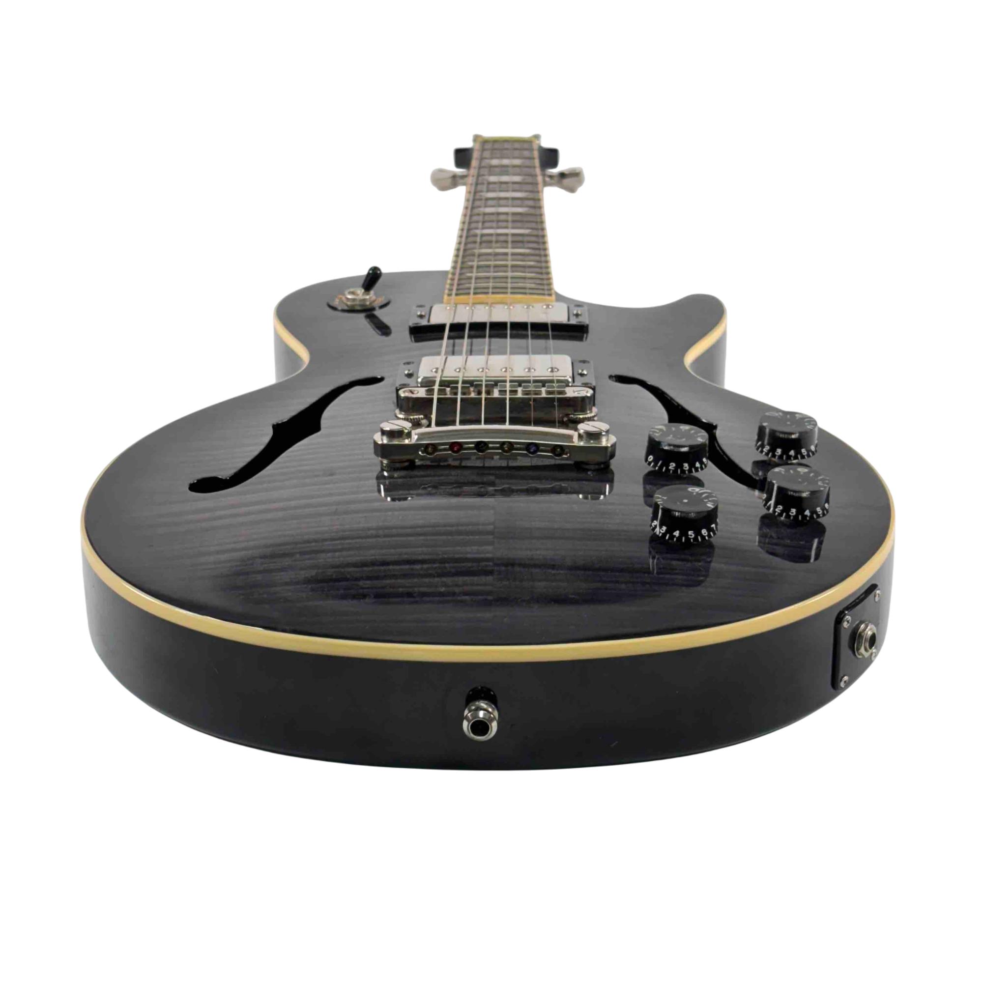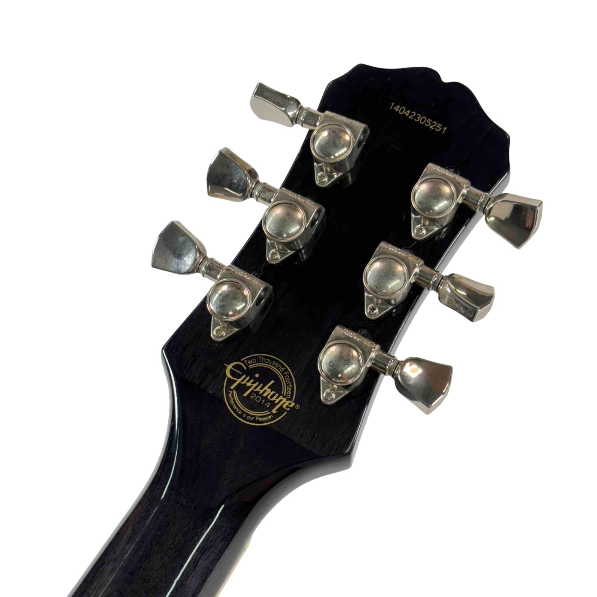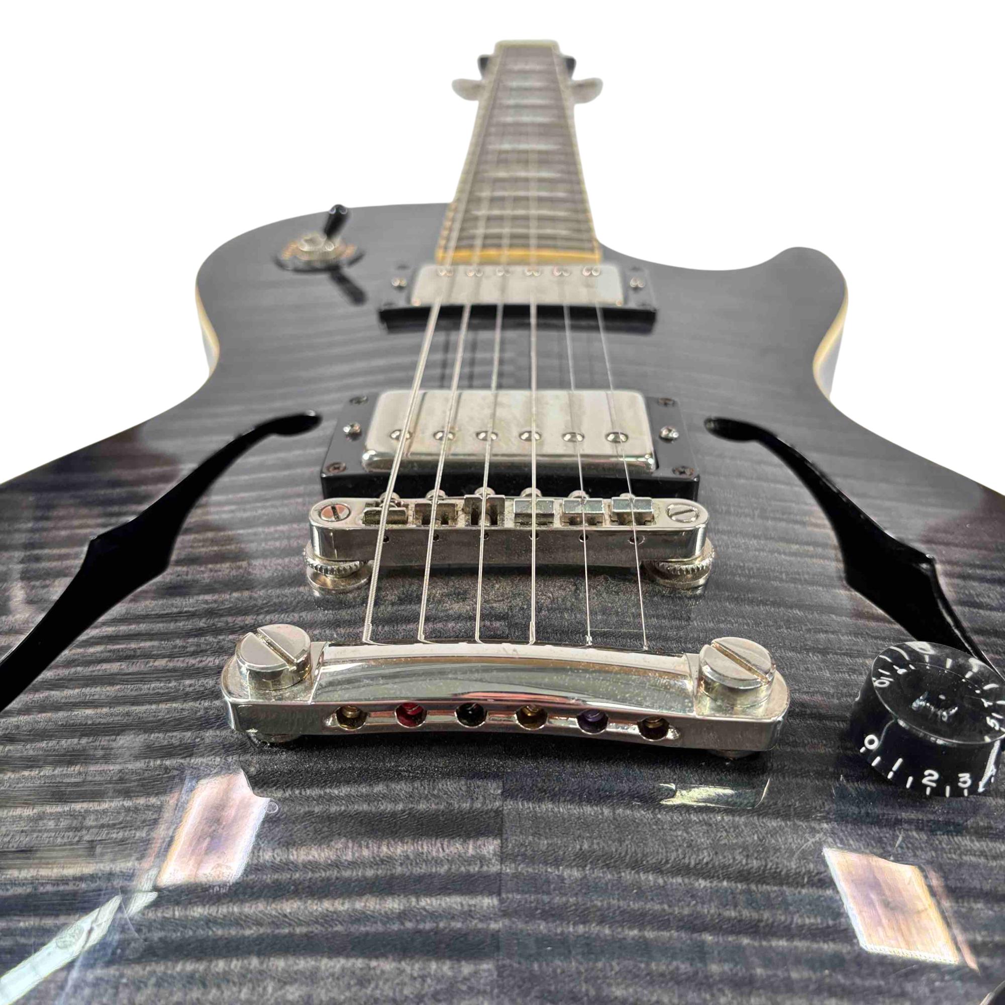 The Epiphone Les Paul Standard Florentine PRO is a right-handed 6-string semi-hollowbody electric guitar with 22 frets, blending the classic Les Paul style with the lighter weight and resonant tone of a semi-hollow design for versatile performance.