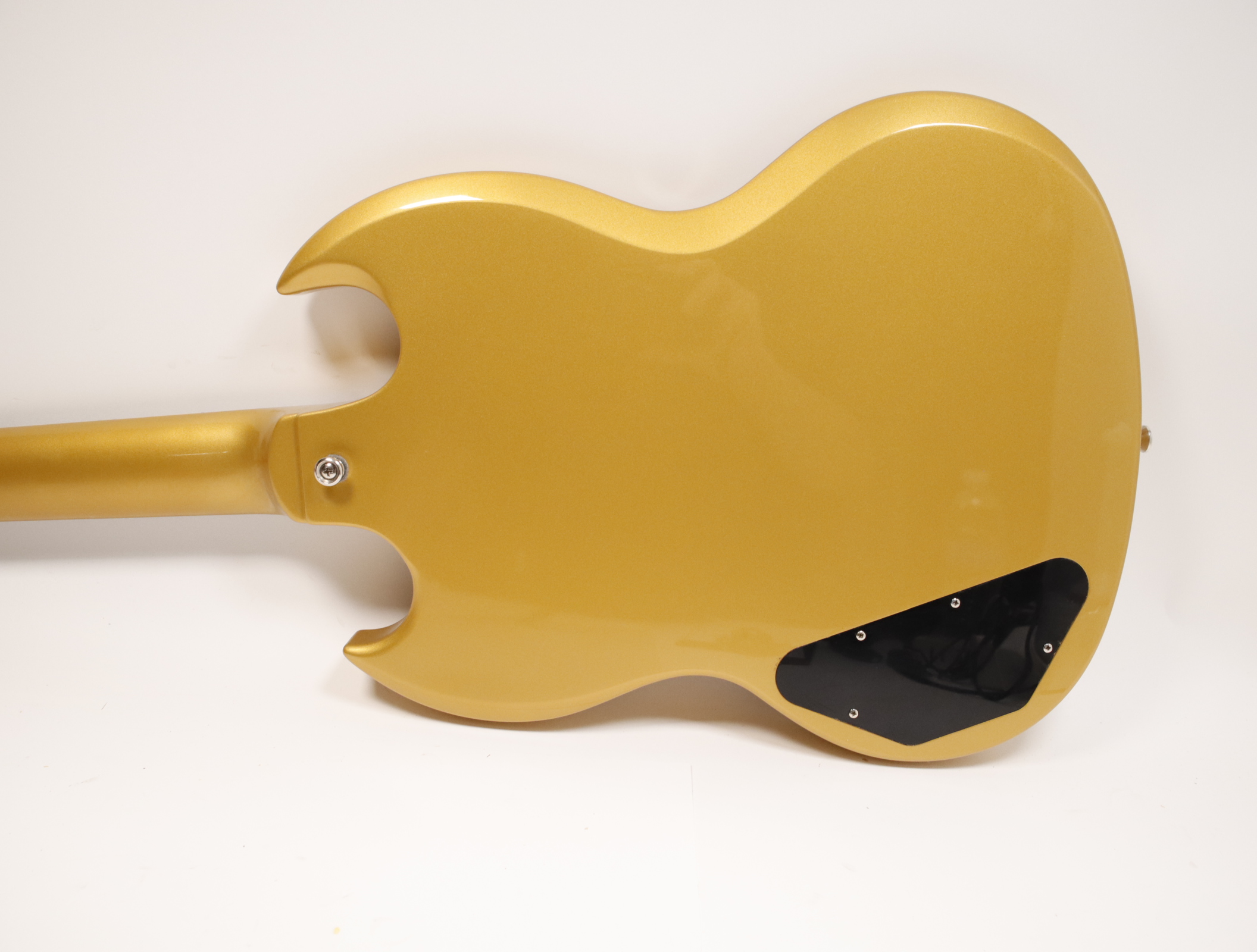 In addition to its sonic and ergonomic features, the Epiphone SG Trad Pro includes stylish touches like nickel hardware, a Kalamazoo-style headstock and black speed knobs. A vintage metallic gold finish gives a nod to the iconic guitars of the '60s era that shaped rock and roll. Overall, the Trad Pro SG delivers a compelling take on a historic classic.