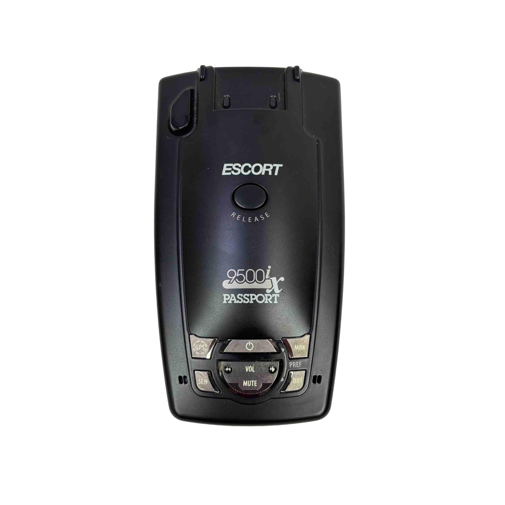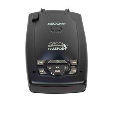 The Escort Passport 9500ix Radar Detector is a high-performance radar detector featuring GPS functionality, multiple control buttons including volume, mute, and sensitivity settings, and a sleek black design. This device helps drivers detect radar signals and avoid speed traps efficiently, making it an essential gadget for safe and informed driving.