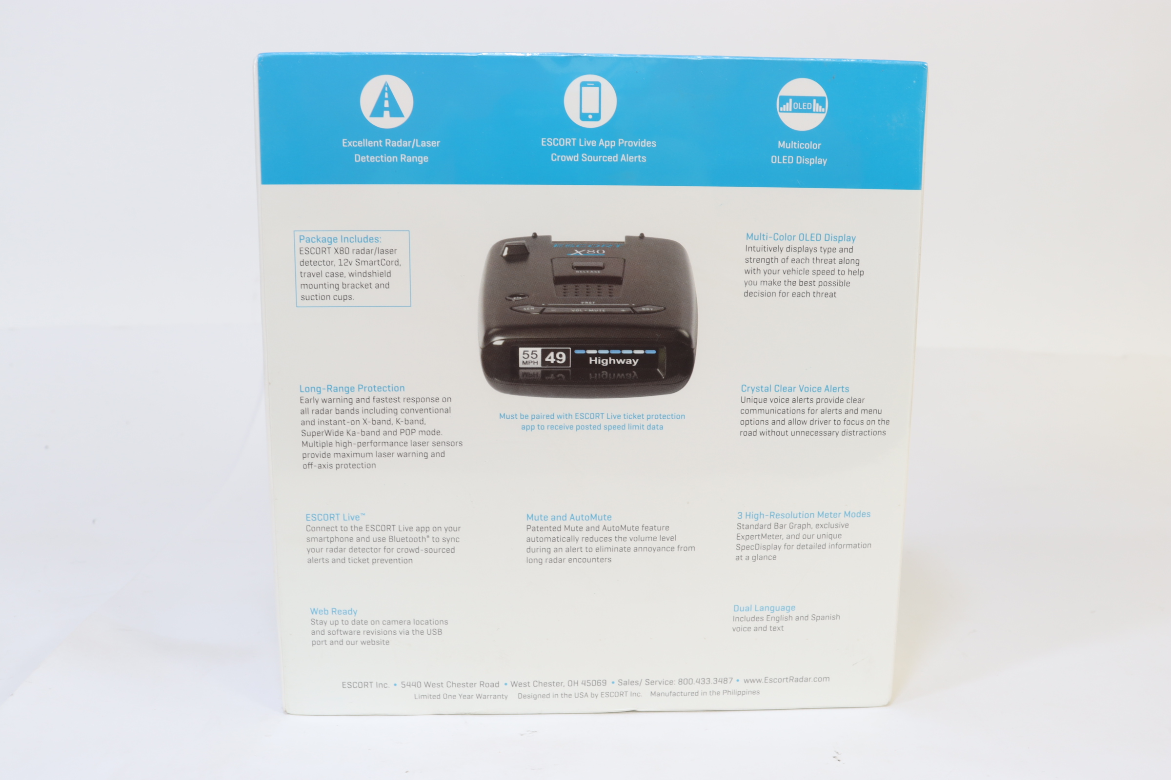 Get a reliable escort to work or on your road trips with this Escort X80 radar detector. The handy device uses clear voice alerts and the Escort Live smartphone app to keep you apprised of potential surprises up ahead. This Escort X80 radar detector features a multicolor OLED display for easy viewing and comes with a bracket for effortless mounting.