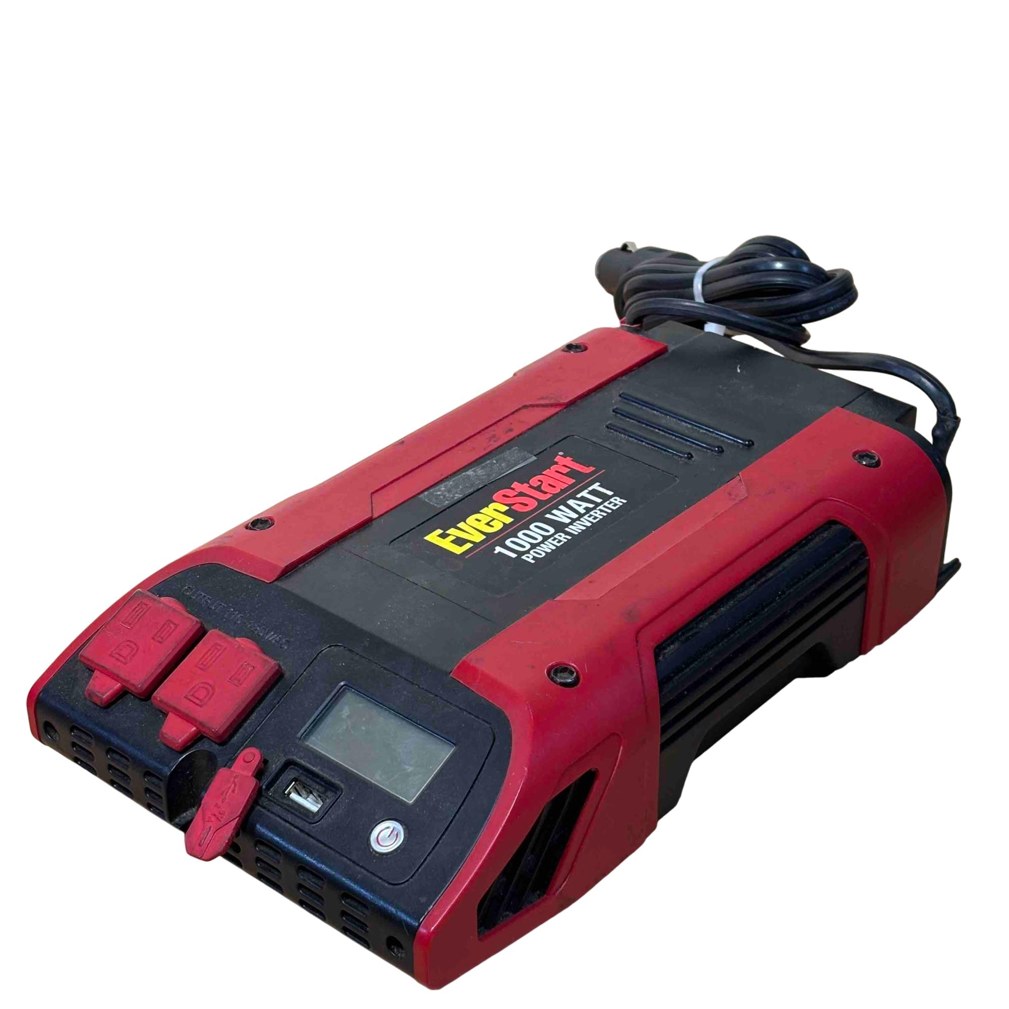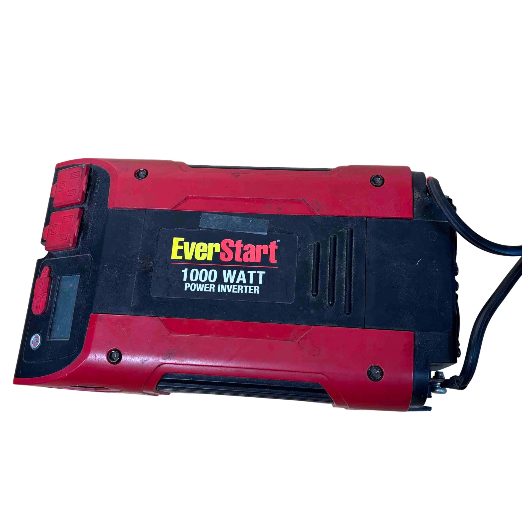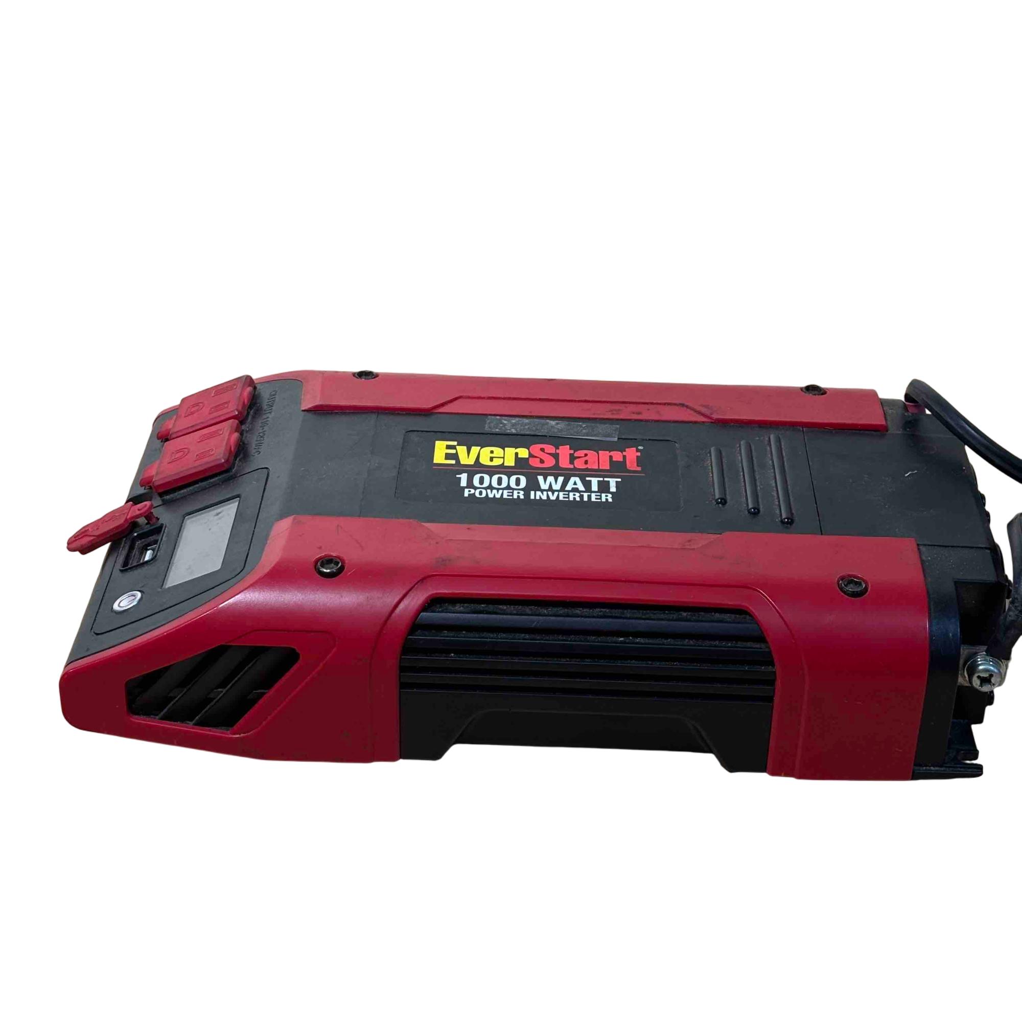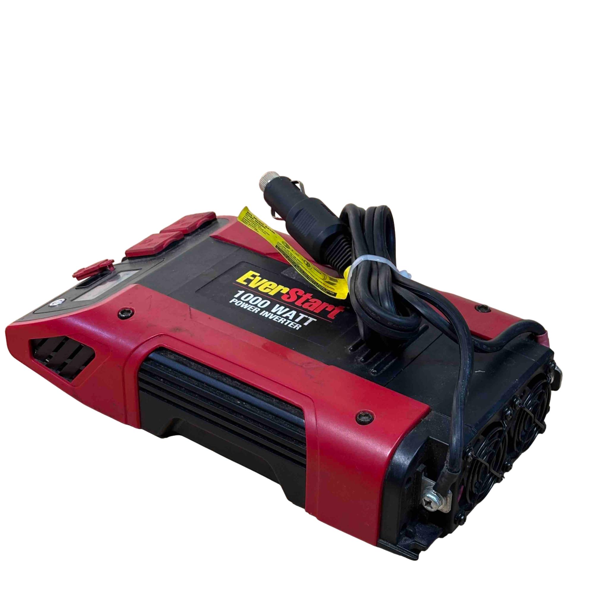 Power your devices on the go with the EverStart 1000 Watt Power Inverter. Featuring a robust 1000W capacity and a rugged red-and-black design, this portable inverter is perfect for providing reliable AC power in your vehicle, RV, or during emergencies. Includes attached cables for easy connection, making it a must-have for automotive and outdoor enthusiasts.