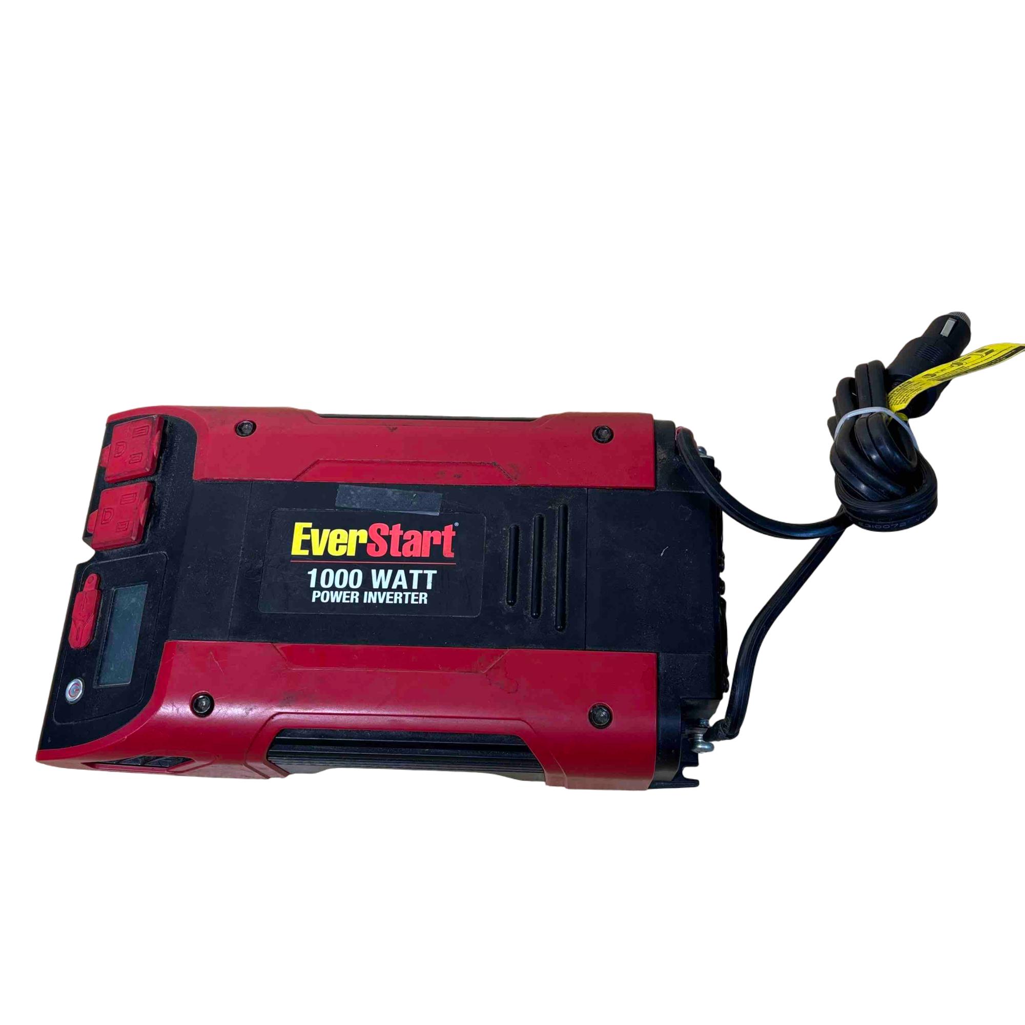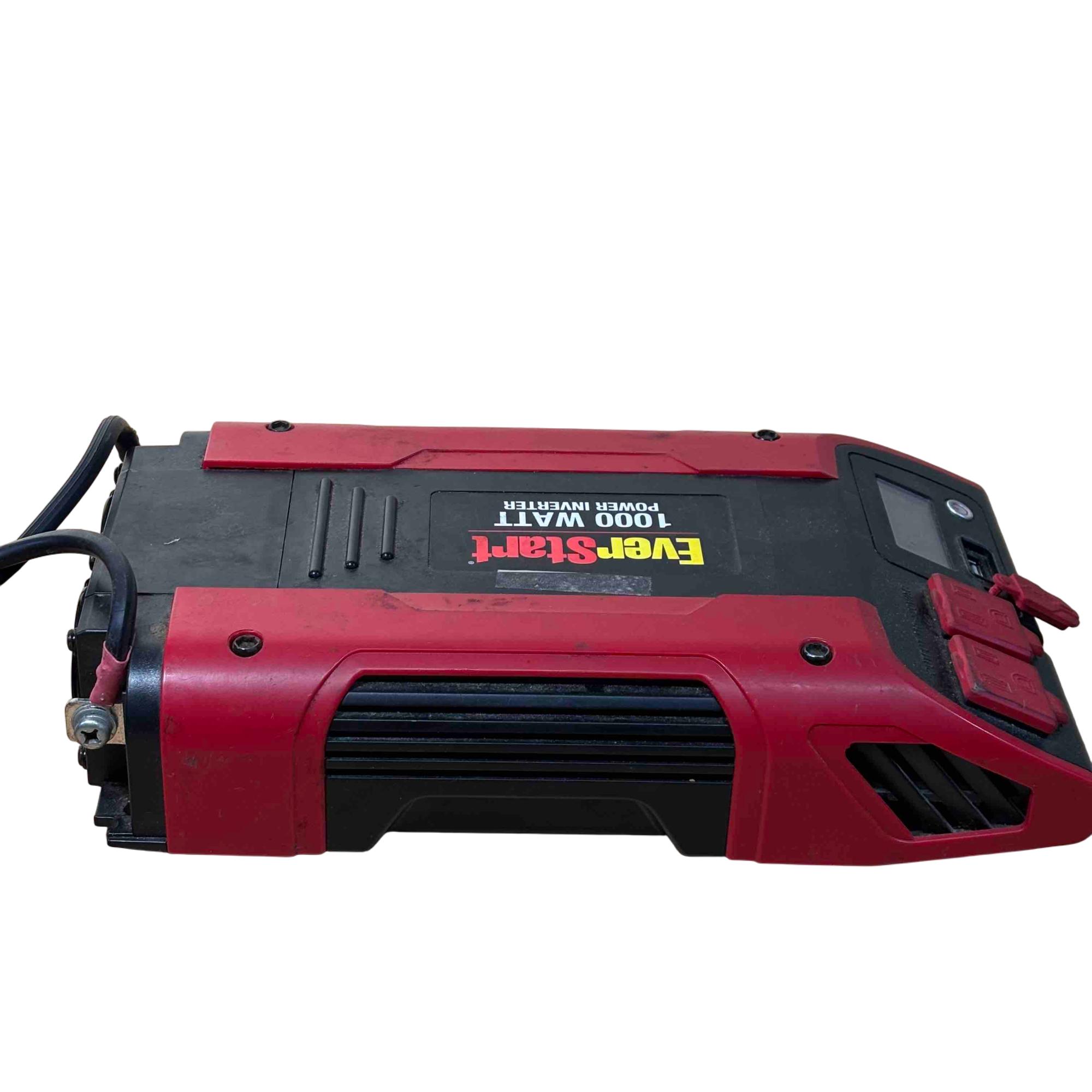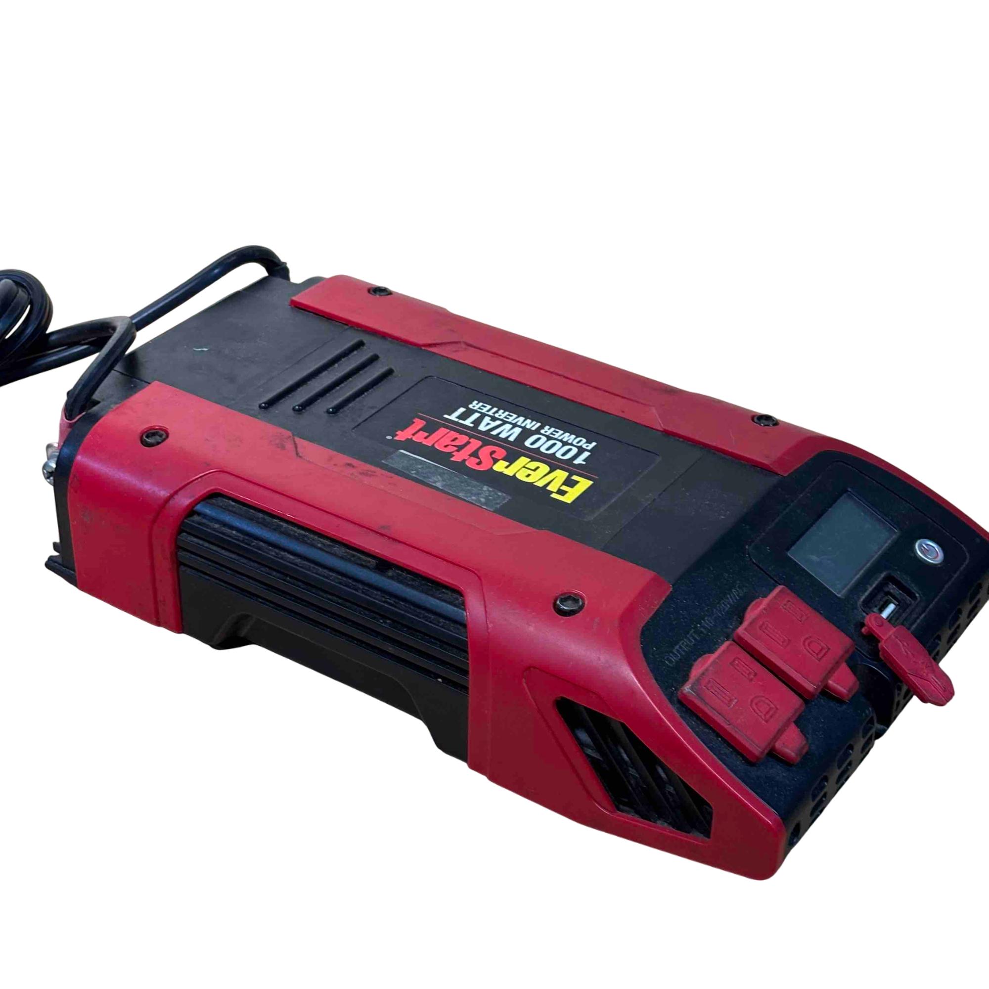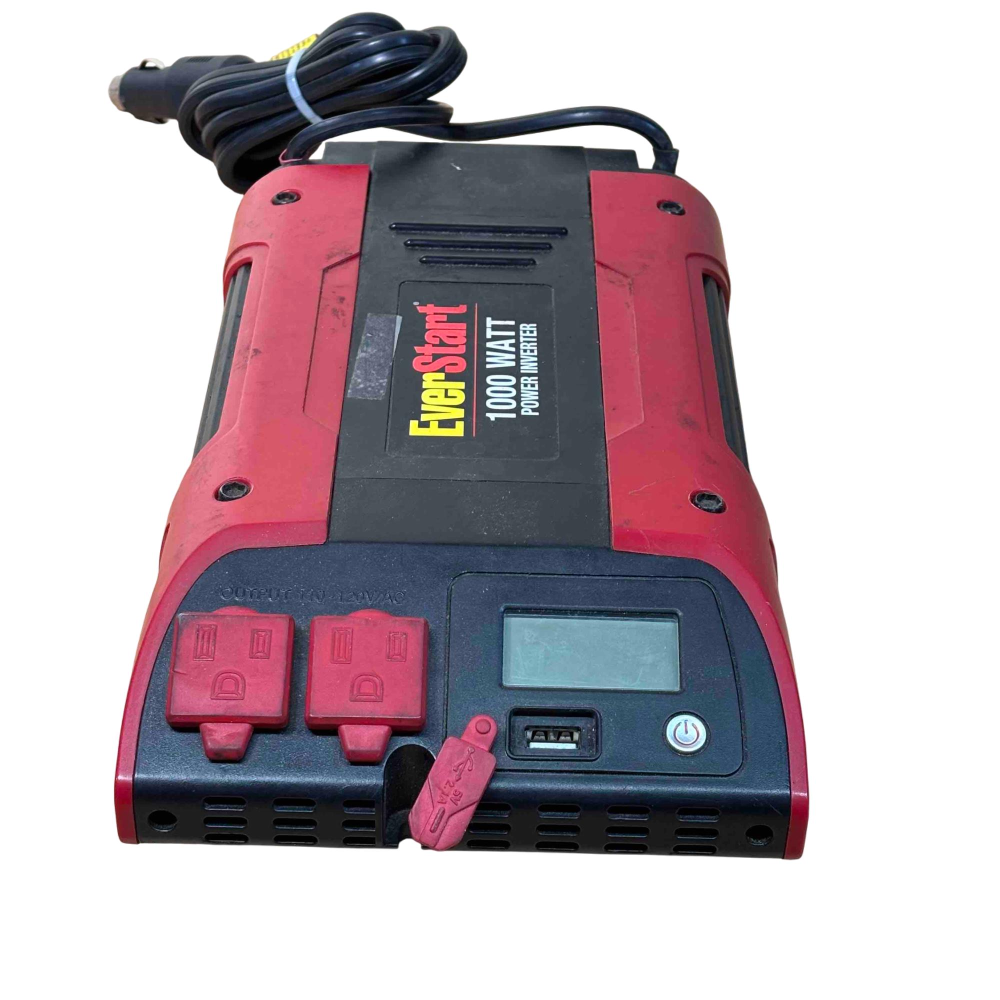 Power your devices on the go with the EverStart 1000 Watt Power Inverter. Featuring a robust 1000W capacity and a rugged red-and-black design, this portable inverter is perfect for providing reliable AC power in your vehicle, RV, or during emergencies. Includes attached cables for easy connection, making it a must-have for automotive and outdoor enthusiasts.