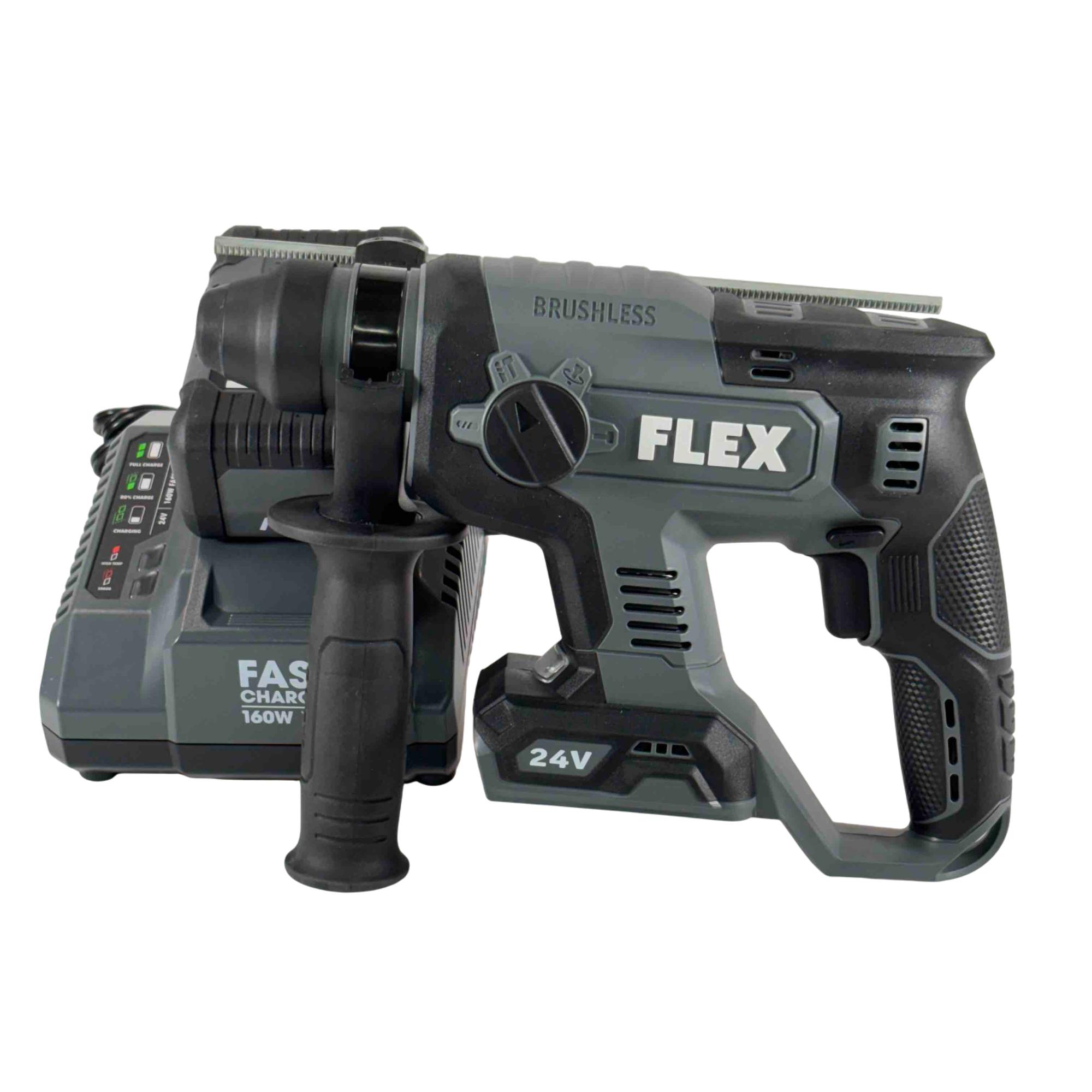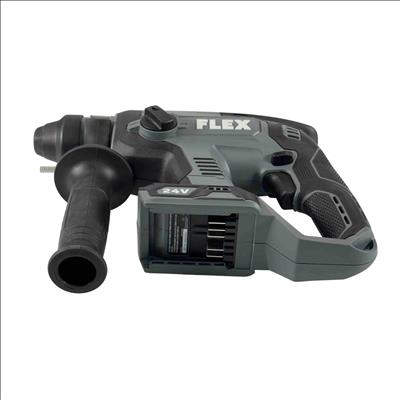 The FLEX FX1531 24-Volt 7/8" SDS-Plus Cordless Rotary Hammer Drill delivers maximum power and efficiency with its sensor-free brushless motor, providing 1.3 ft-lbs of torque and constant speed control for demanding applications. Its compact, lightweight design makes it ideal for overhead drilling, while the function switch offers four versatile modes: drilling, hammer drilling, chiseling, and chisel adjustment. Built with the FLEX Advantage, it delivers more power, longer runtime, and faster charging compared to standard 24V tools. An integrated LED light ensures visibility in dark work areas, and it’s fully cross-compatible with all FLEX 24V batteries, chargers, and tools.