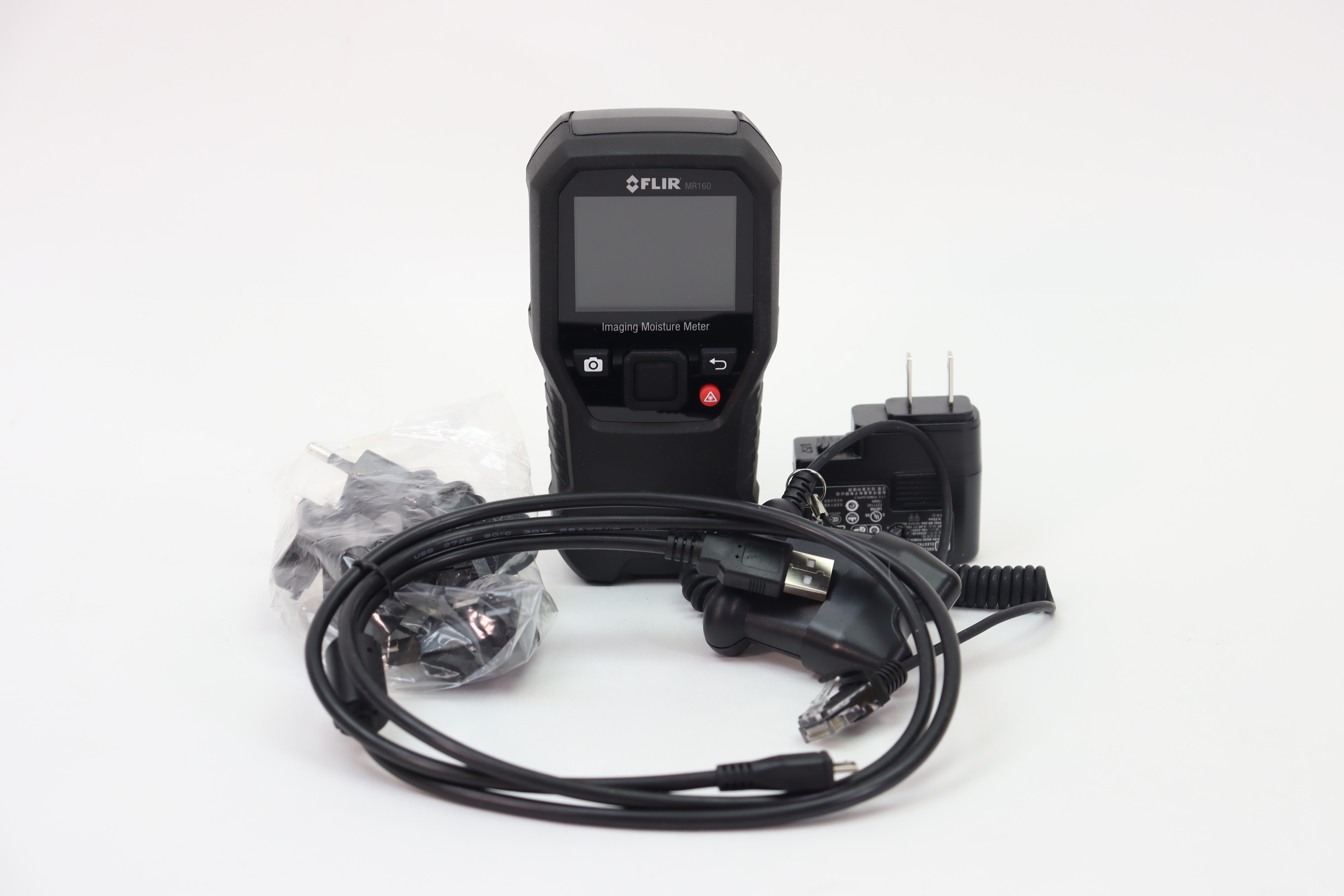 Troubleshoot your moisture problems easily and effectively with the new FLIR MR160 Imaging Moisture Meter. This meter has a built-in thermal camera which allows you to see exactly where your moisture problems are. It has pinless technology for non-contact measurements and an external pin probe for contact moisture measurements. Its the first of its kind - and one you need in your toolbox.