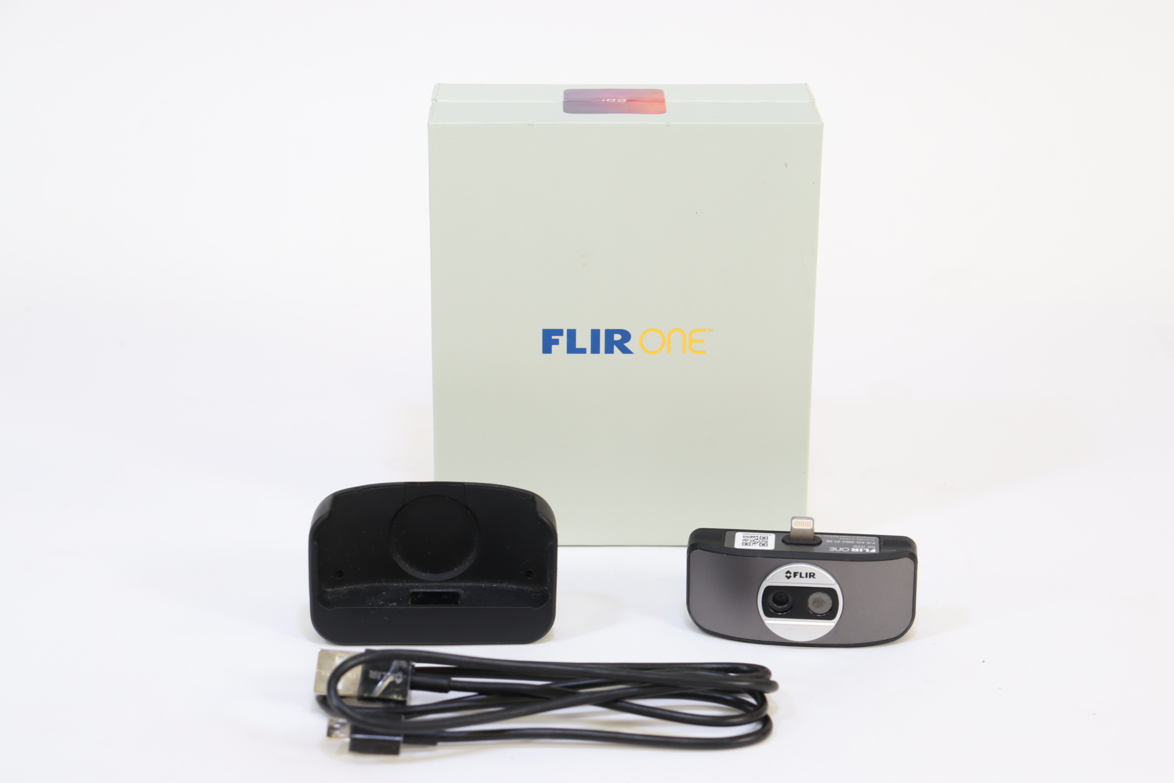 Look at the world through new eyes with the FLIR ONE Thermal Imaging Camera for iOS. This accessory plugs into your device's Apple Lightning port and uses a heat-sensing Lepton camera along with a traditional camera to create a composite image. When used in conjunction with the FLIR ONE mobile app, it can display and record live thermal infrared imagery. This lets you see intruders at night, identify energy leaks around the house, observe wildlife, and measure the temperature of invisible heat sources. It records in 640 x 480 VGA resolution and is sensitive to temperature differences as small as 0.18°F. The FLIR ONE's battery charges via an included micro-USB cable, and a protective case keeps it safe.