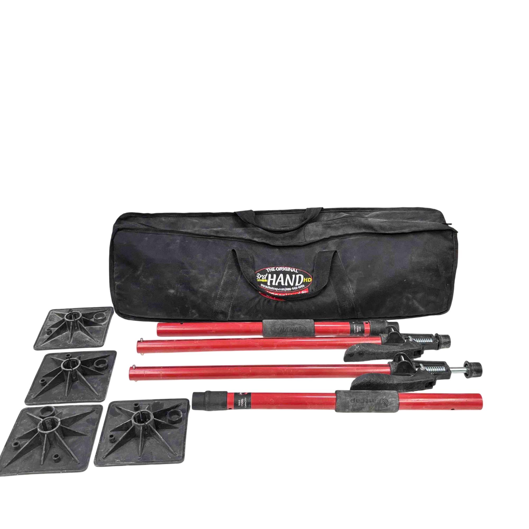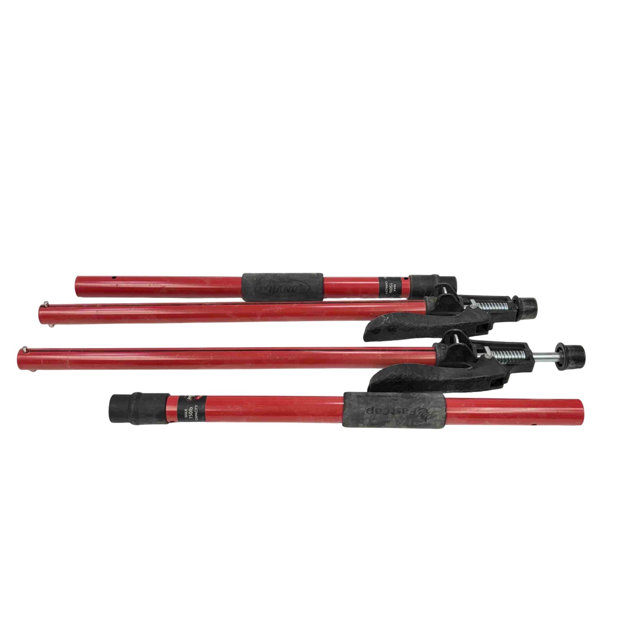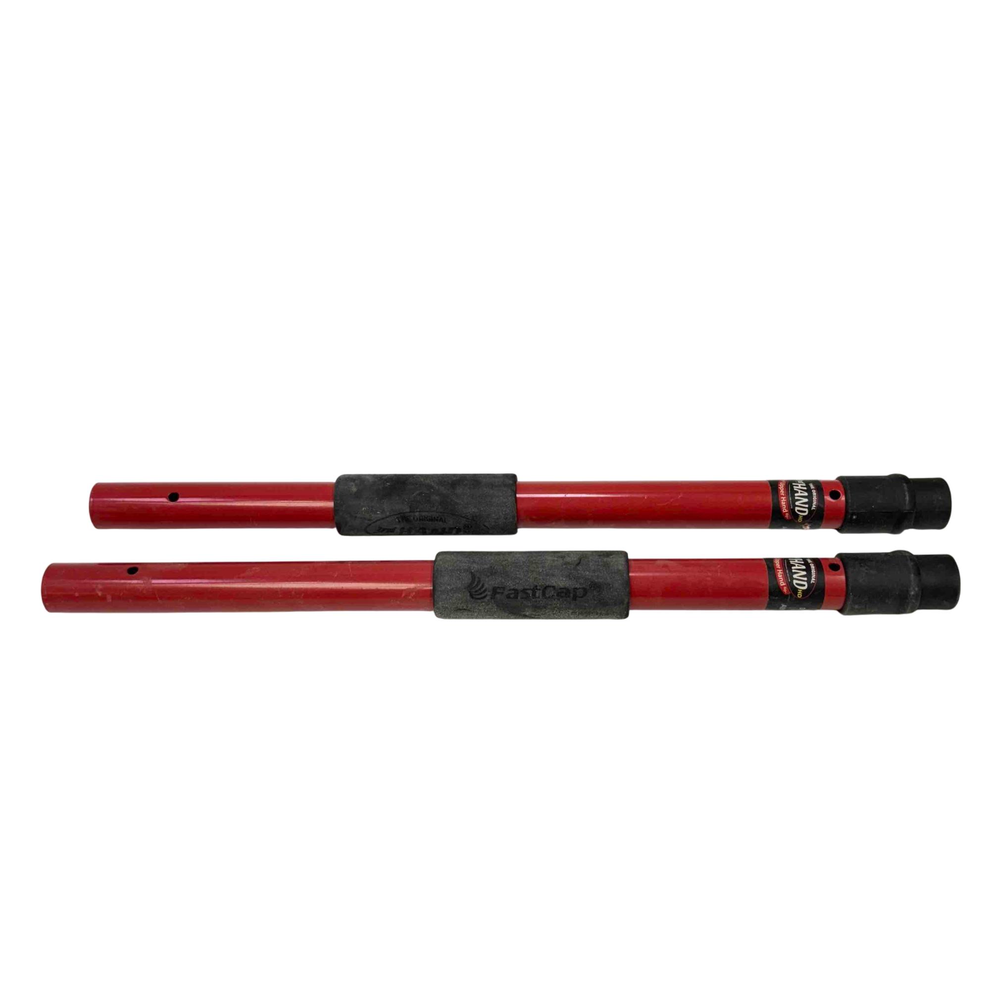 The FastCap 3rd Hand HD Support Poles are the original heavy-duty adjustable construction jacks equipped with ergonomic lever lock clamps. Ideal for holding drywall, cabinetry, plastic sheeting, or other materials securely in place, these red and black poles feature robust spring-loaded mechanisms for fast and secure adjustment. Each set comes with base plates and a convenient carrying bag, making it perfect for contractors and serious DIYers seeking reliable temporary support.