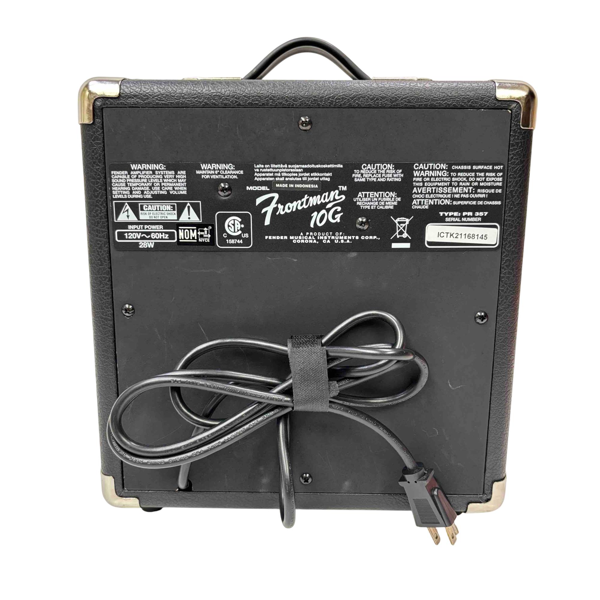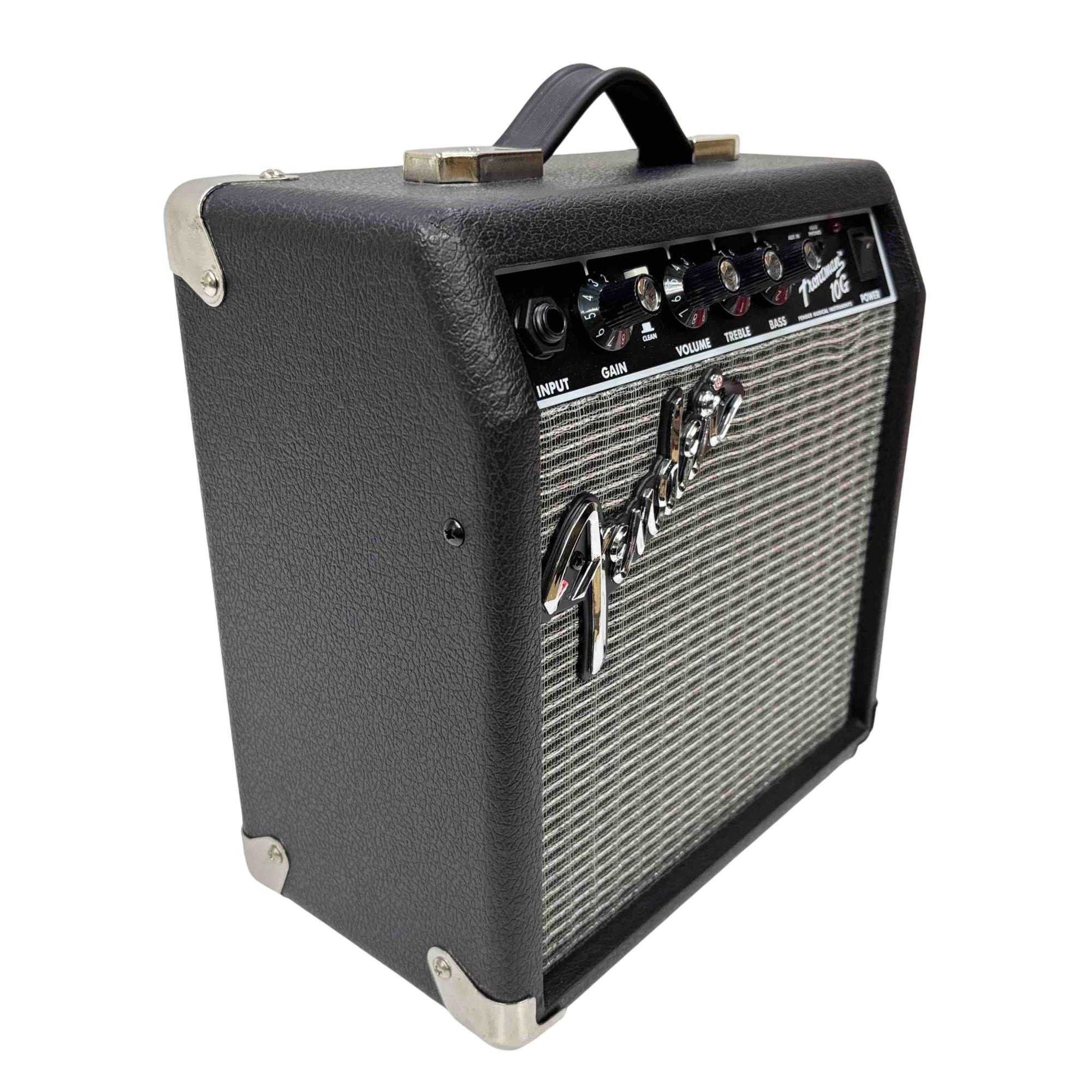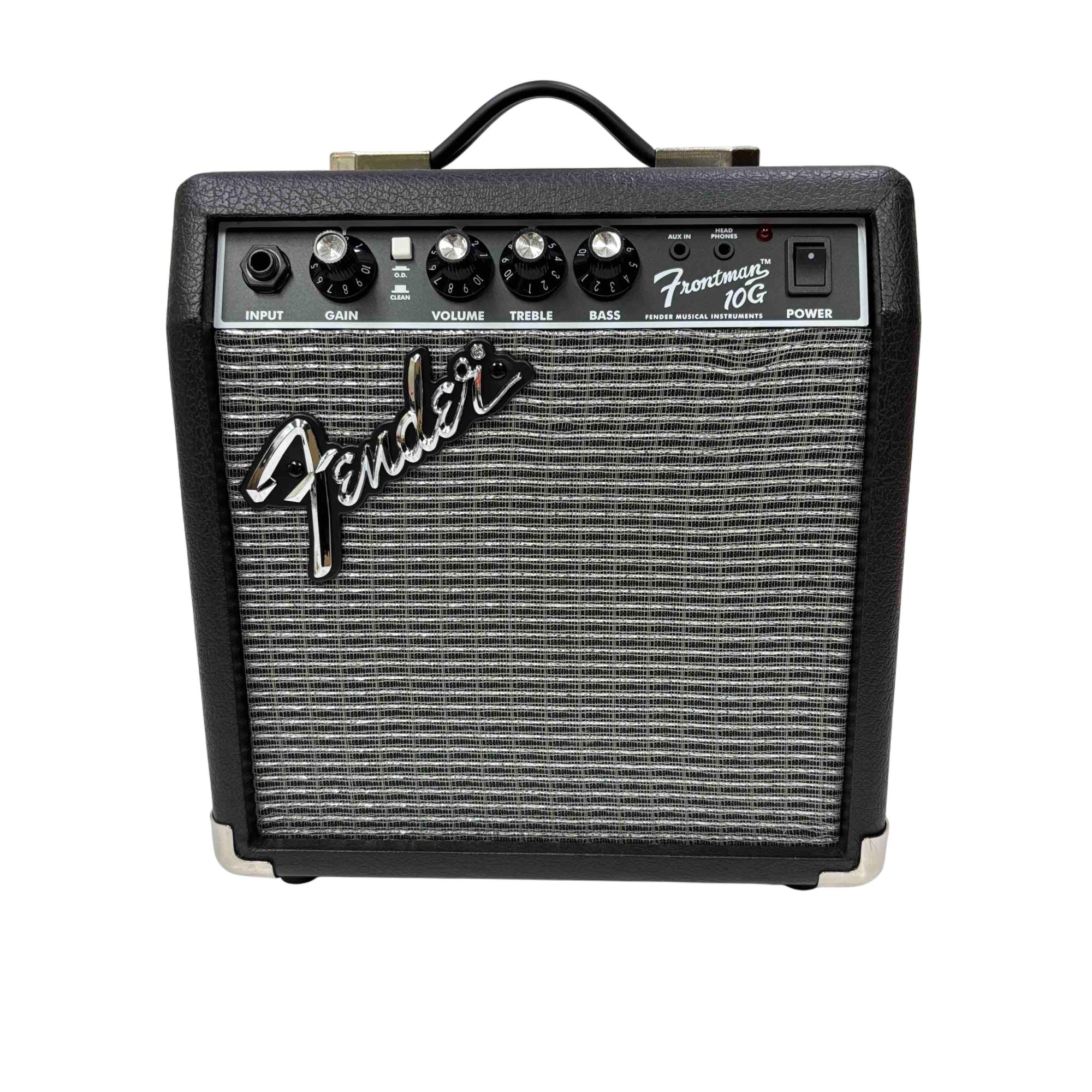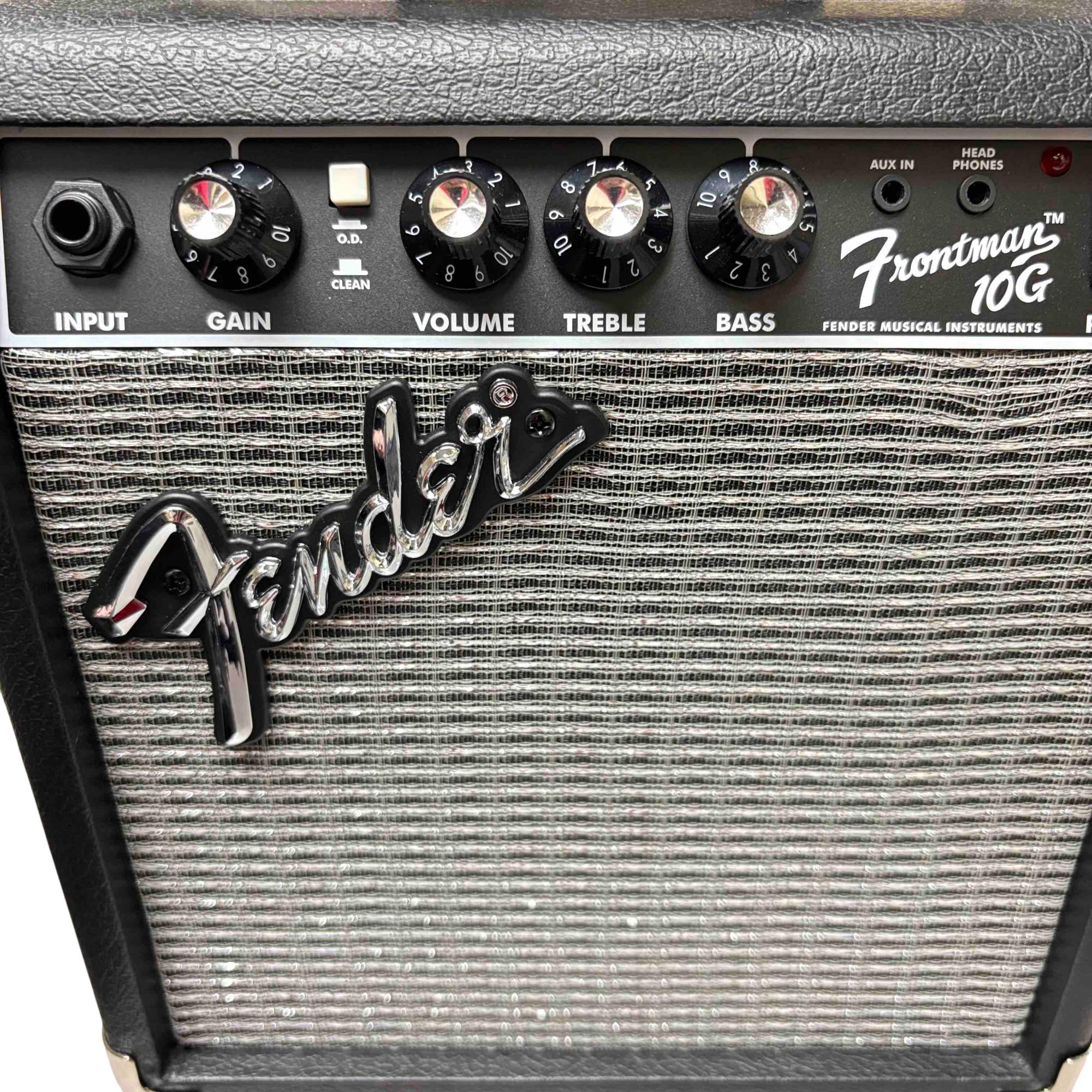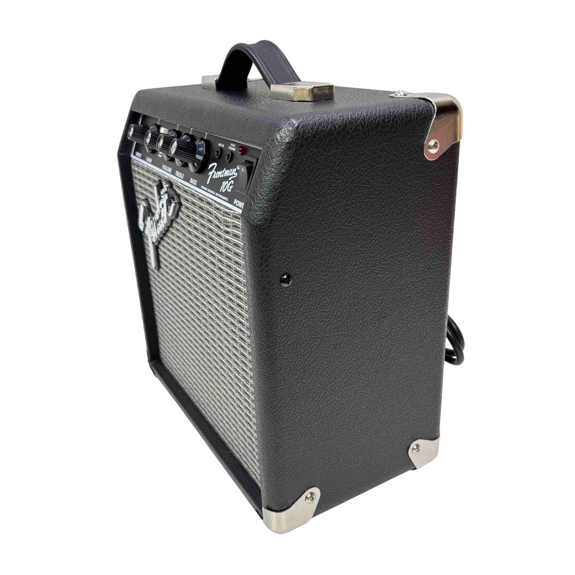 Experience legendary Fender tone in a compact package with the Fender Frontman 10G Guitar Amplifier. Featuring a custom 6-inch speaker, classic silver grille cloth, and intuitive controls for Gain, Volume, Treble, and Bass, this amp is perfect for practice or small gigs. Its durable black Tolex covering and portable size make it an ideal companion for both novice and seasoned guitarists.