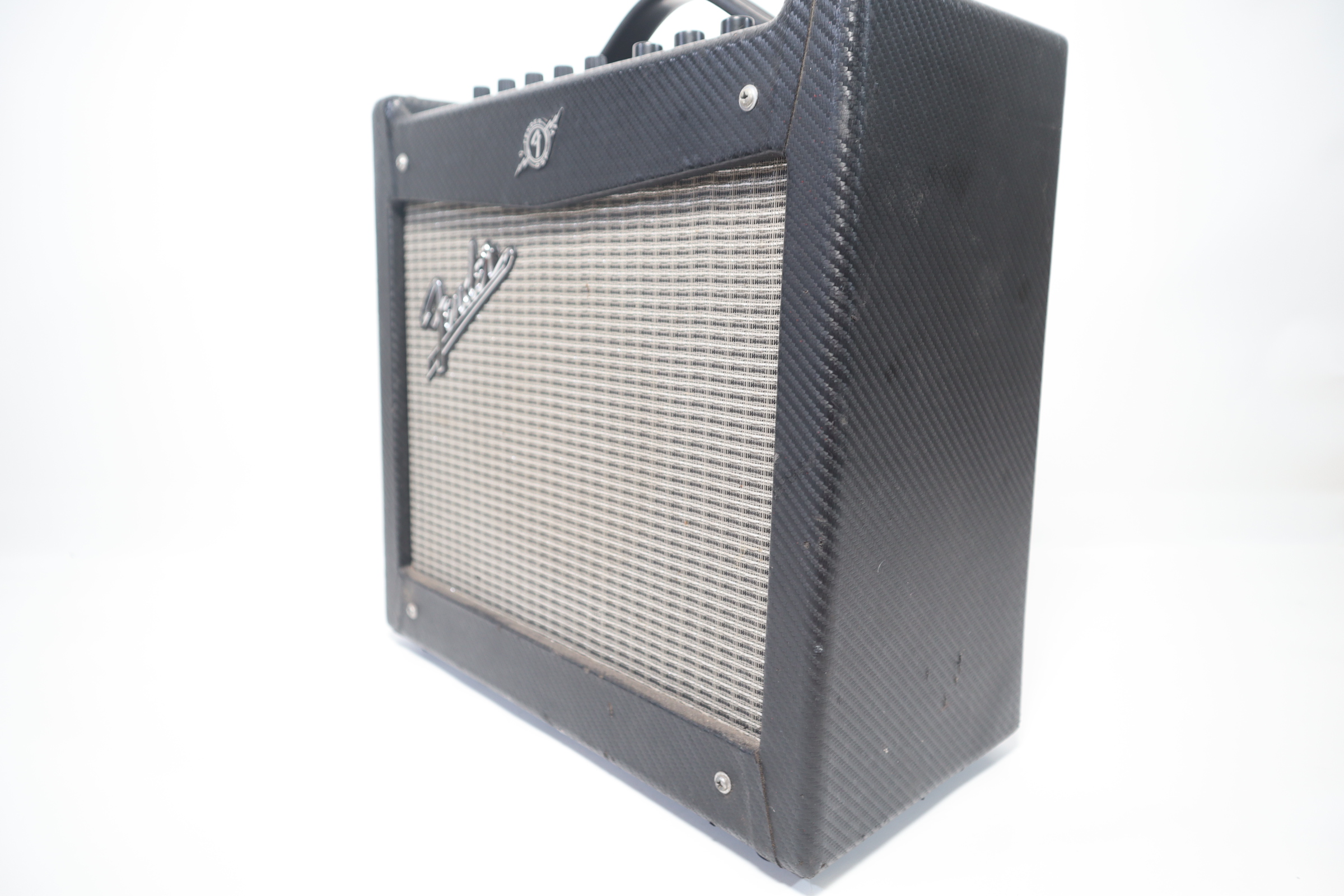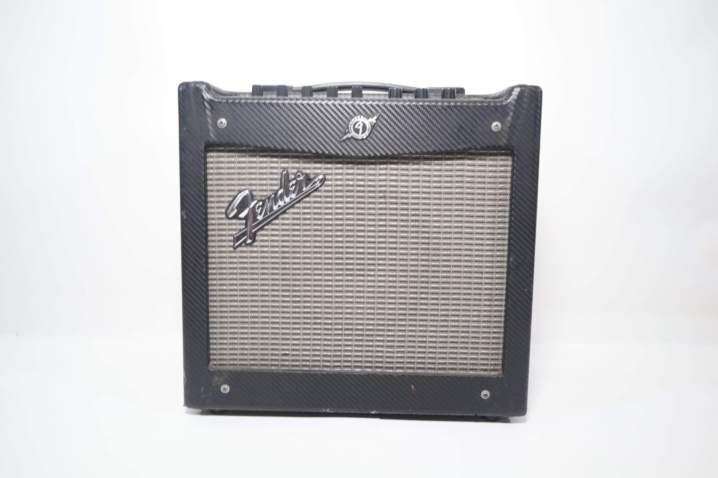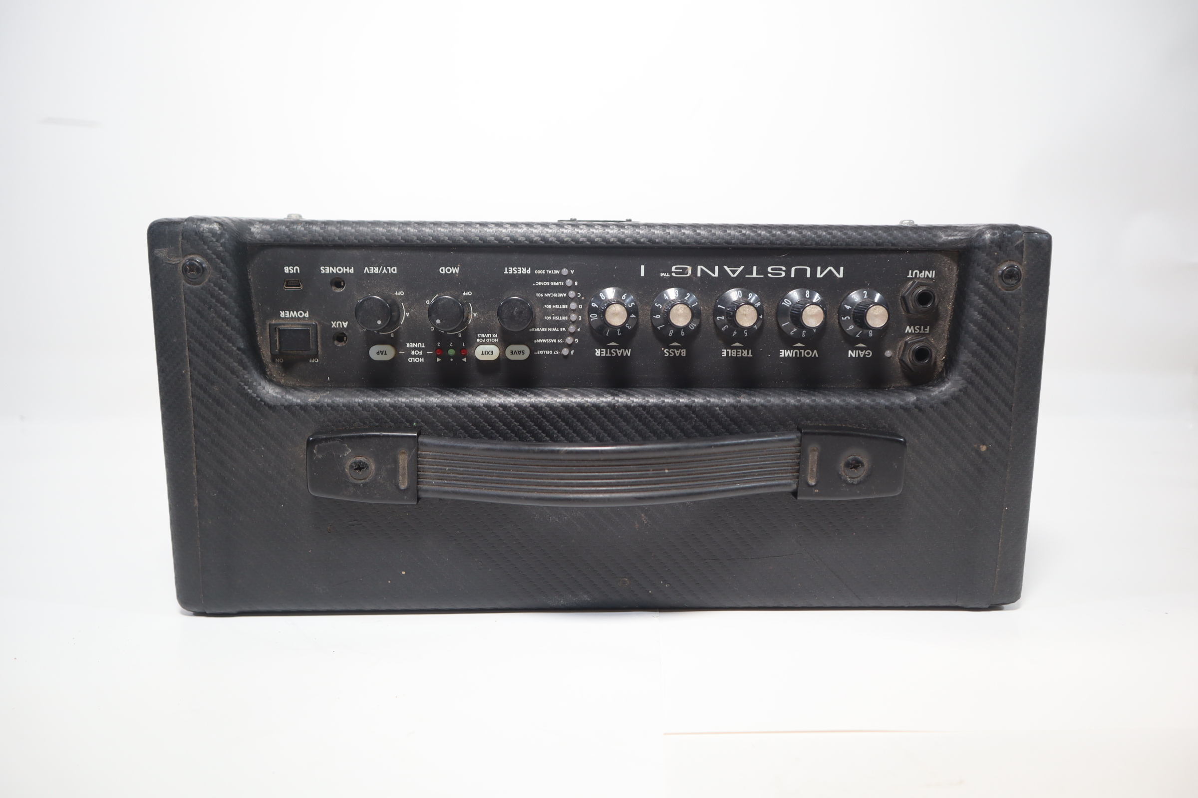 Whether you're looking for a great amp for personal practice (particularly if you're concerned about volume) or for laying down tracks on your computer, you're going to love the Fender Mustang I combo guitar amplifier. The 20-watt Fender Mustang I comes equipped with an 8" Fender Special Design speaker and loaded with 24 amazing preset sounds. You can make your own tones too, by selecting from its 8 amp models and 24 effects. Even better, you can customize your Mustang I guitar amplifier from your computer, uploading new effects and tone combinations. And when it's time to record, just take your Mustang I into the studio, hook it up via USB, and you're all set to lay down tracks.