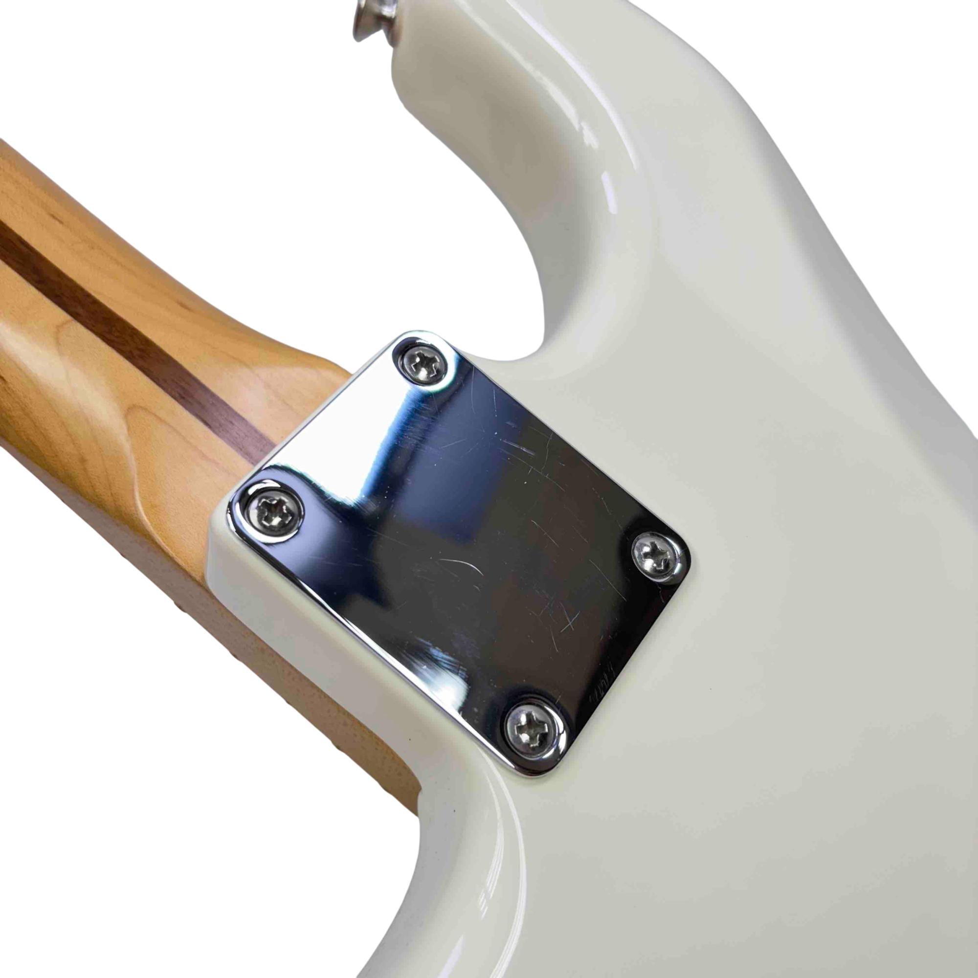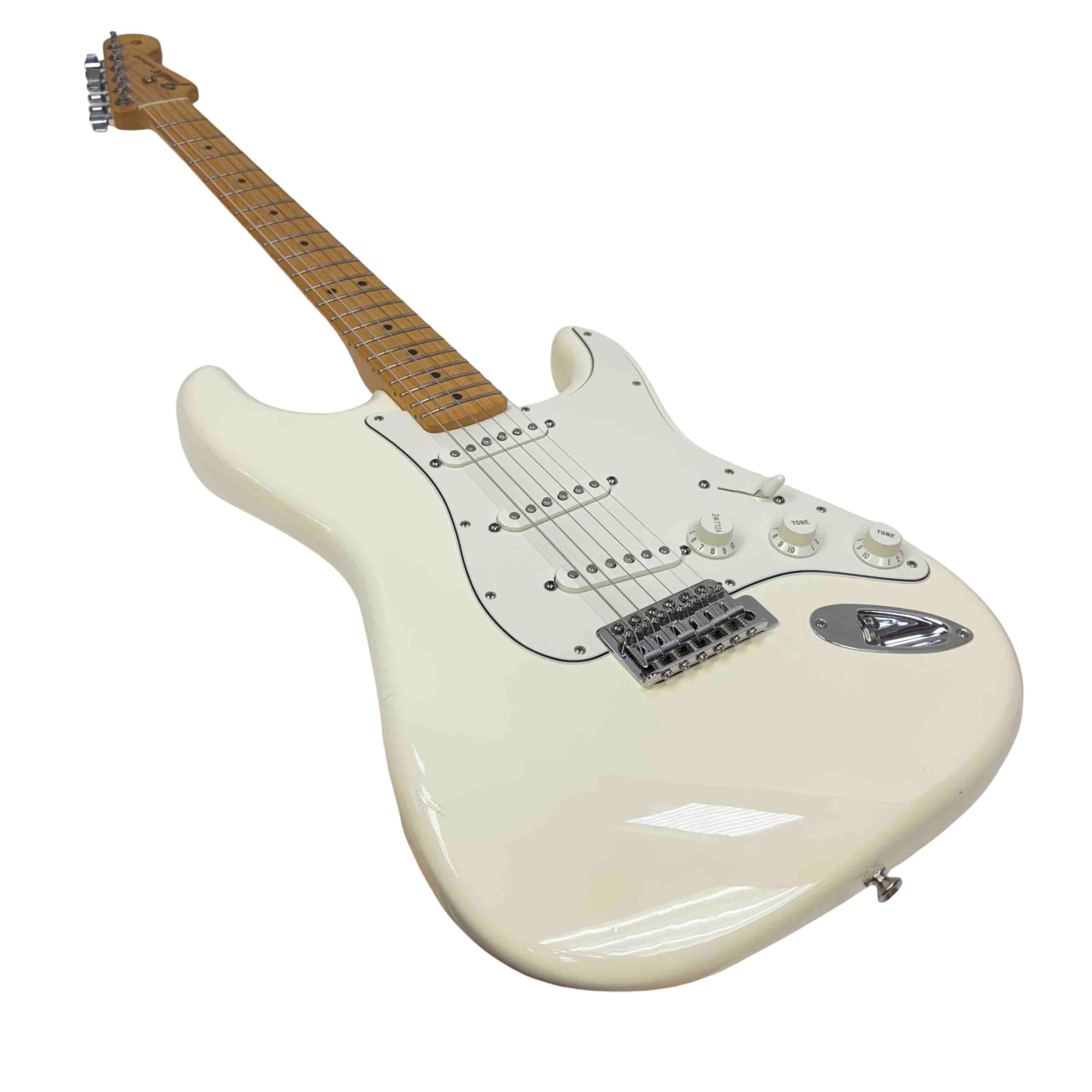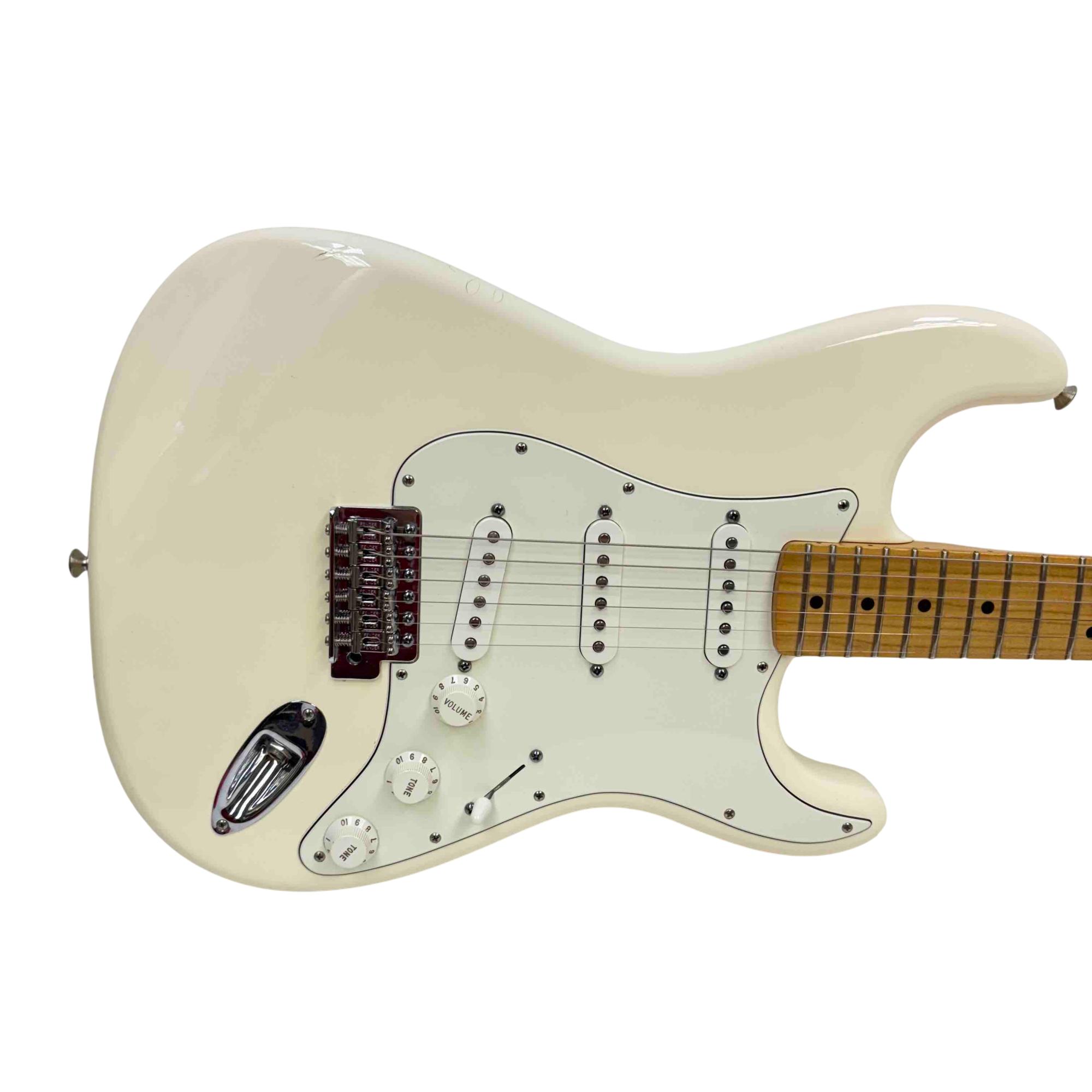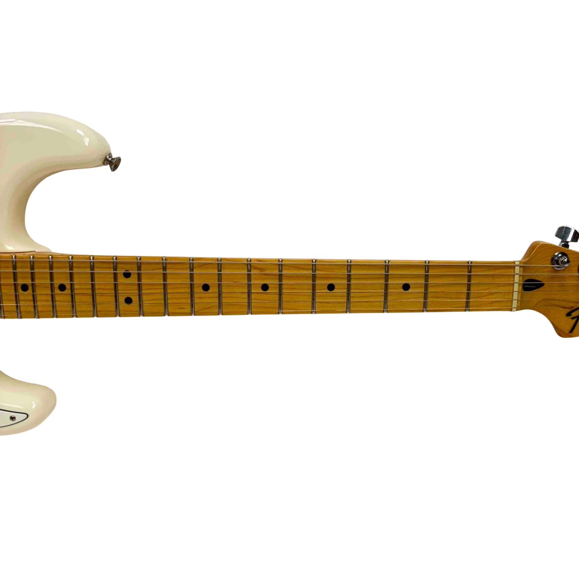 Experience the timeless sound and iconic style of the Fender Stratocaster, made in Mexico, with this beautiful white electric guitar. Its maple fingerboard and classic design are perfect for players looking for a reliable and versatile instrument. Whether you're gigging or jamming at home, this Strat offers exceptional tone and playability that Fender is renowned for.