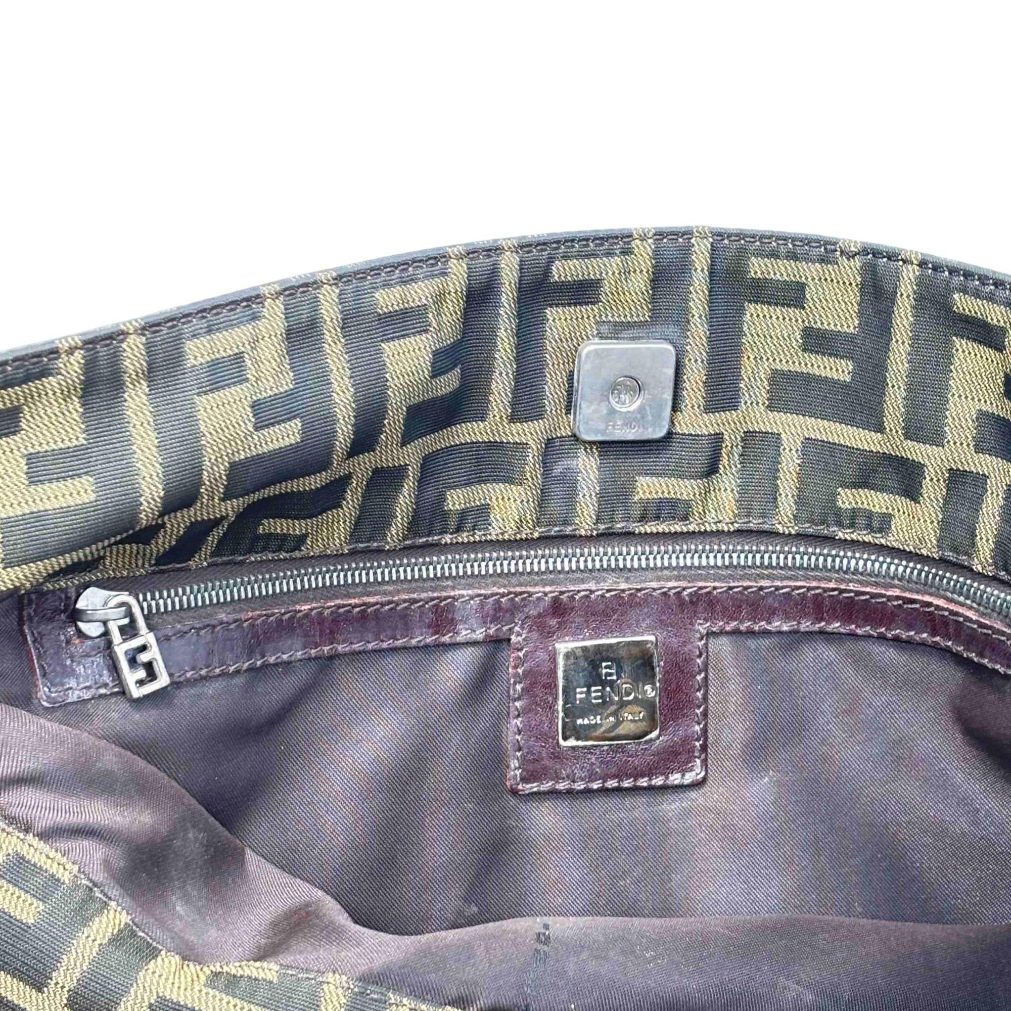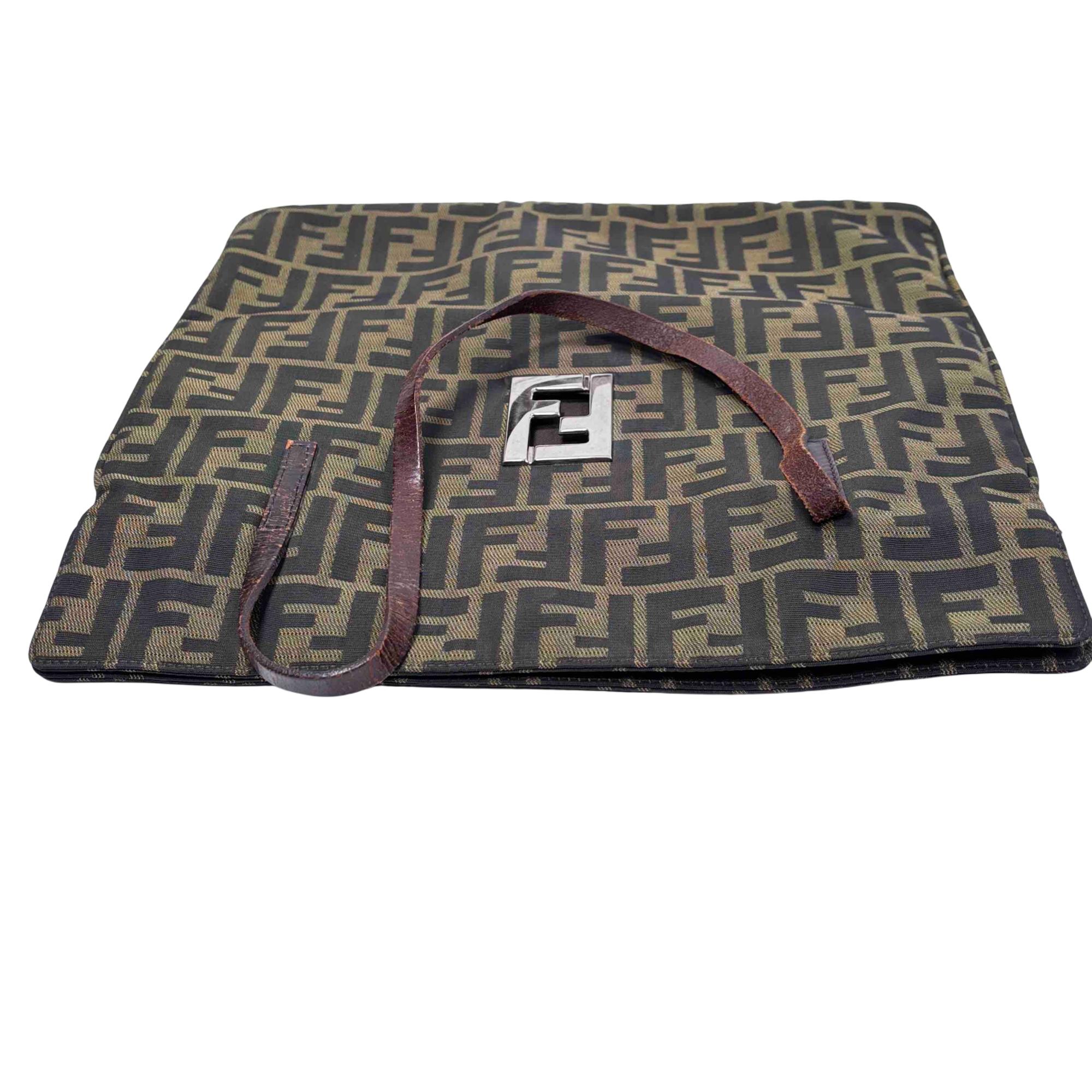 Indulge in luxury with this exquisite Fendi Zucca Pattern Canvas Tote Bag, skillfully crafted in Italy. Featuring iconic leather straps and the distinguished Fendi logo hardware, this tote combines timeless elegance with practical style. Ideal for both casual and sophisticated settings, its a must-have statement piece for your closet.