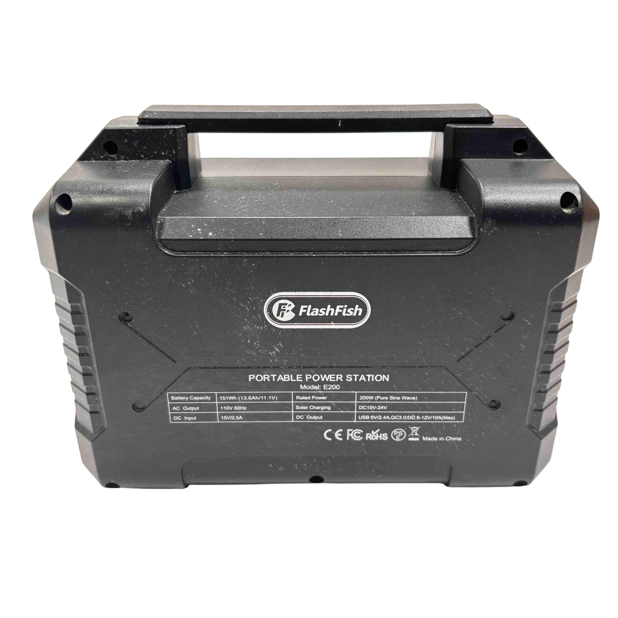 Introducing the FlashFish E200 Portable Power Station, your ideal solution for on-the-go power needs. With a robust 151Wh battery capacity and a 200W pure sine wave inverter, this compact device is perfect for outdoor adventures or emergency backup power. Featuring solar charging capability and multiple output ports, the E200 ensures you stay connected wherever you are.