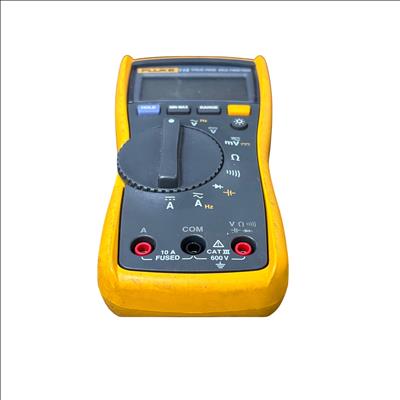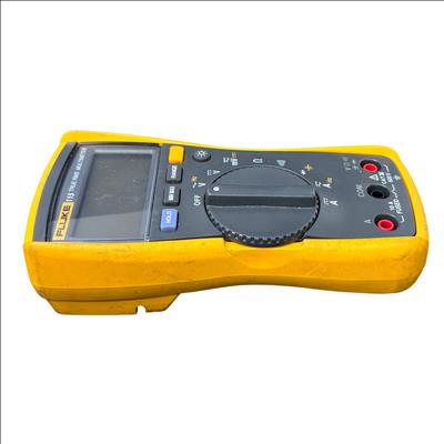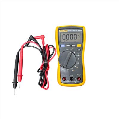 The Fluke 115 True RMS Multimeter is a reliable and accurate digital multimeter designed for electricians and technicians. It features True RMS measurement for precise AC voltage and current readings up to 600 V CAT III and 10 A fused input for safety. This model includes multiple functions such as voltage, current, resistance, frequency, capacitance, and diode testing, all displayed on a clear backlit LCD. The kit comes complete with test leads and is compact and lightweight, making it ideal for fieldwork and troubleshooting electrical systems.