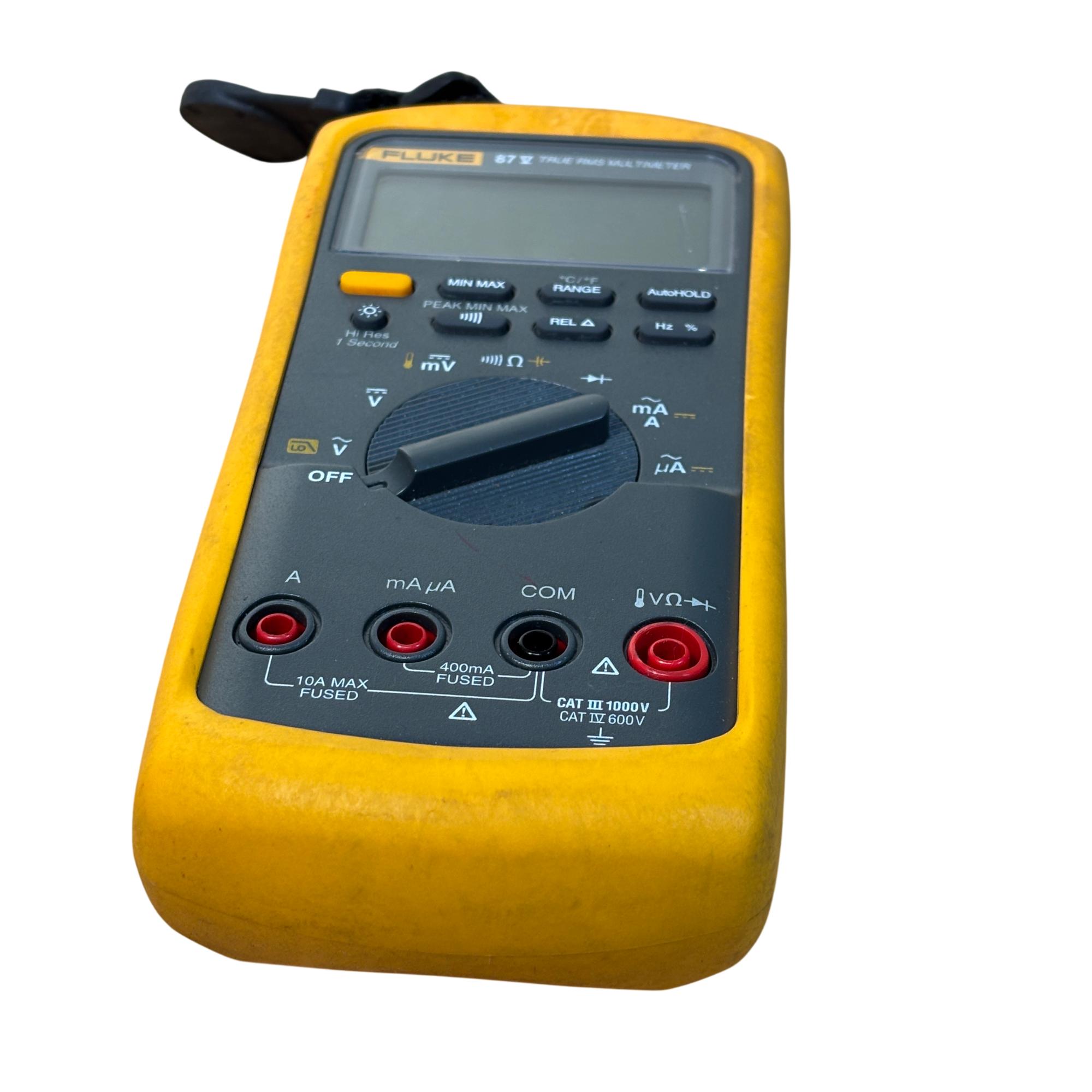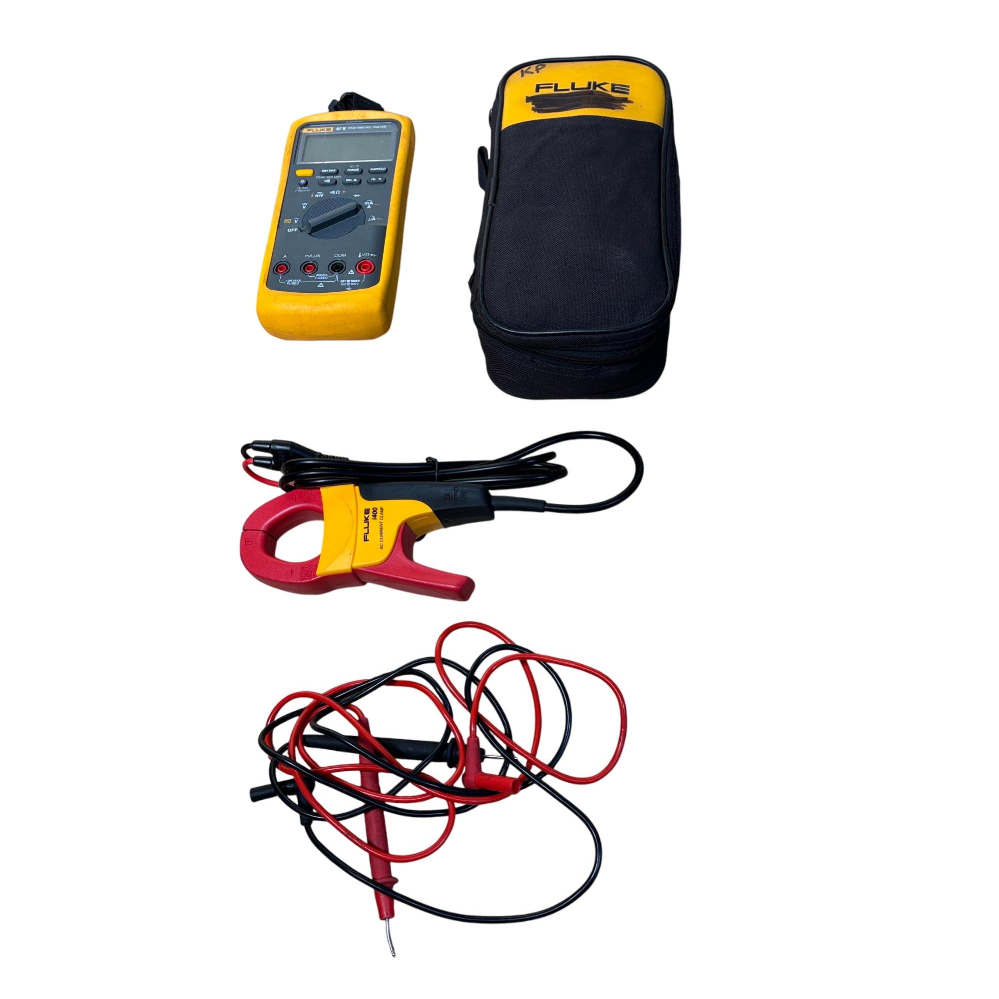 Fluke 87V True RMS Digital Multimeter with Fluke i400 AC Current Clamp offers precise measurements for a wide range of electrical testing applications. This digital multimeter features True RMS capability for accurate readings of complex signals and includes a versatile AC current clamp designed to measure high currents up to 400 amps. Its robust design and comprehensive functionality make it an essential tool for electricians and technicians working with industrial and commercial electrical systems.