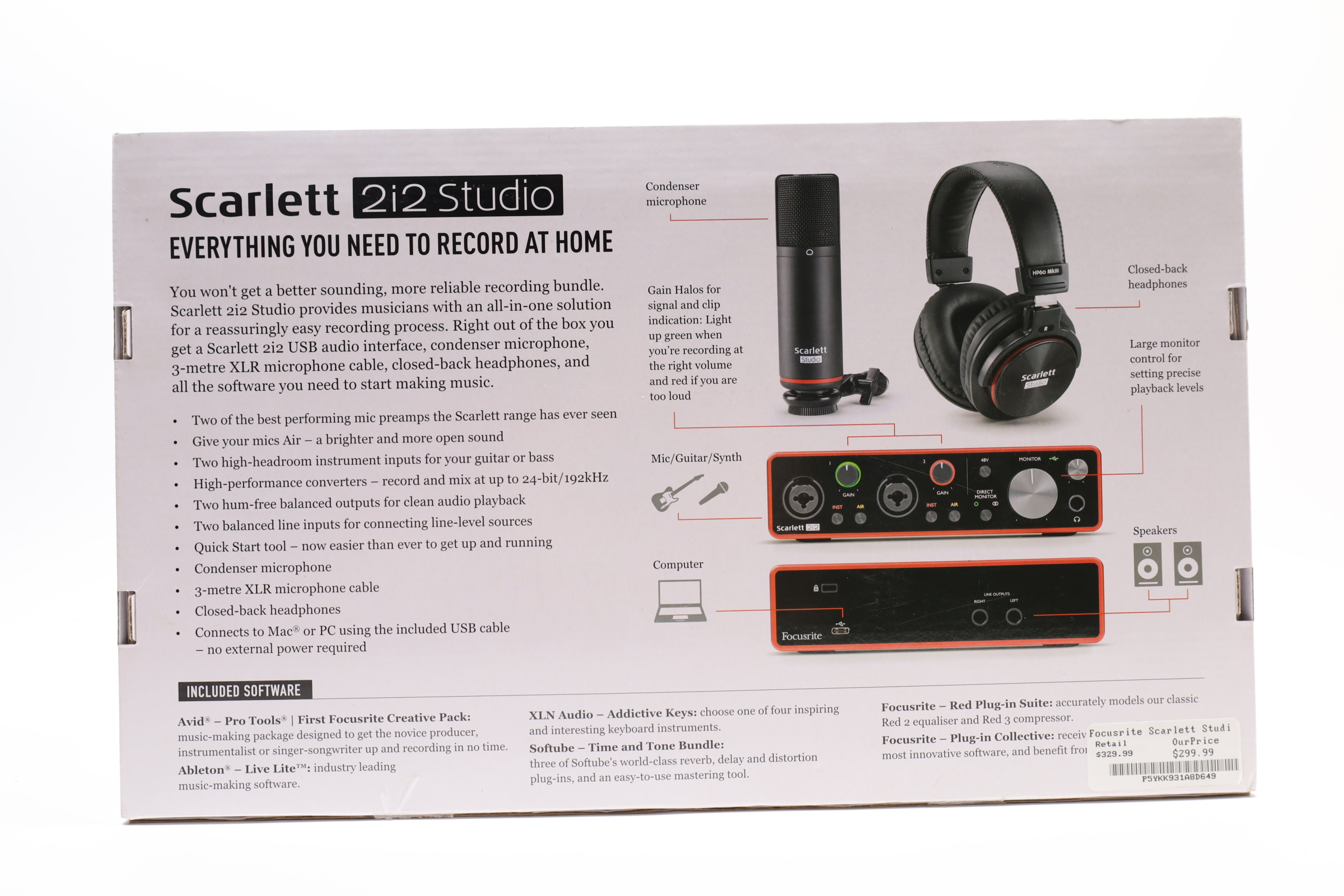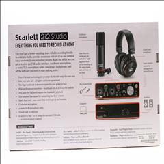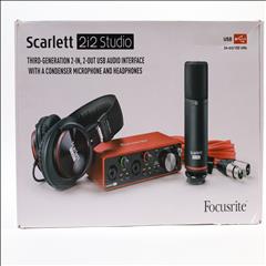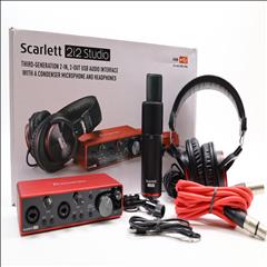 An all-in-one solution designed for singer-songwriters to facilitate an easy recording process. The package includes a Scarlett 2i2 USB audio interface, a condenser microphone, a 3-meter XLR microphone cable, closed-back headphones, and complimentary software. It allows users to create studio-quality vocals, powerful guitars, dramatic synths, and huge drums, and then mix and master with iconic Focusrite studio hardware.