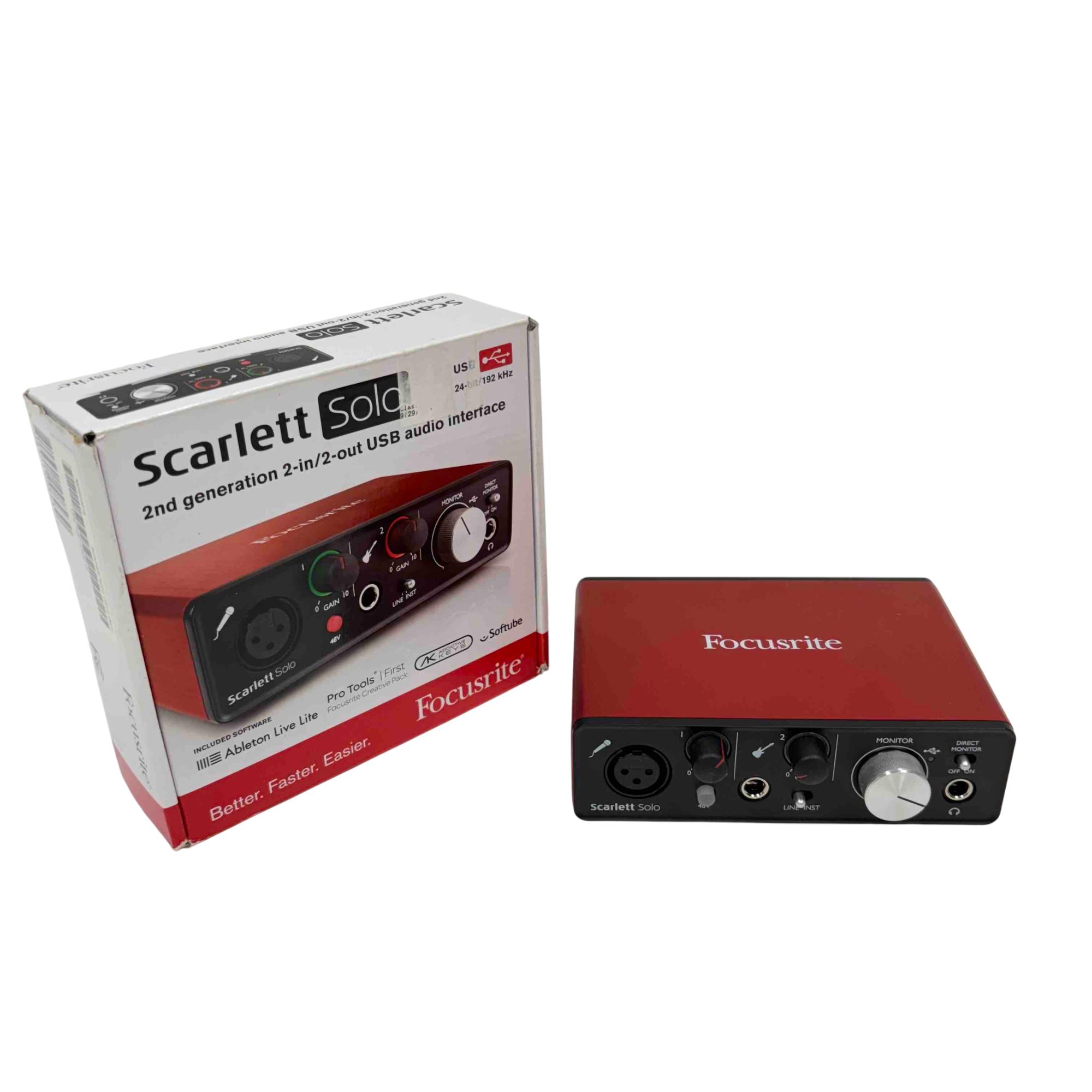 Unleash your music production potential with the Focusrite Scarlett Solo 2nd Generation USB Audio Interface. This compact yet powerful interface offers pristine 24-bit/192 KHz audio quality with 2-in/2-out channels, perfect for solo musicians and small studios. Its intuitive design and included software, like Ableton Live Lite, make it easier than ever to produce professional-grade recordings from the comfort of your home.
