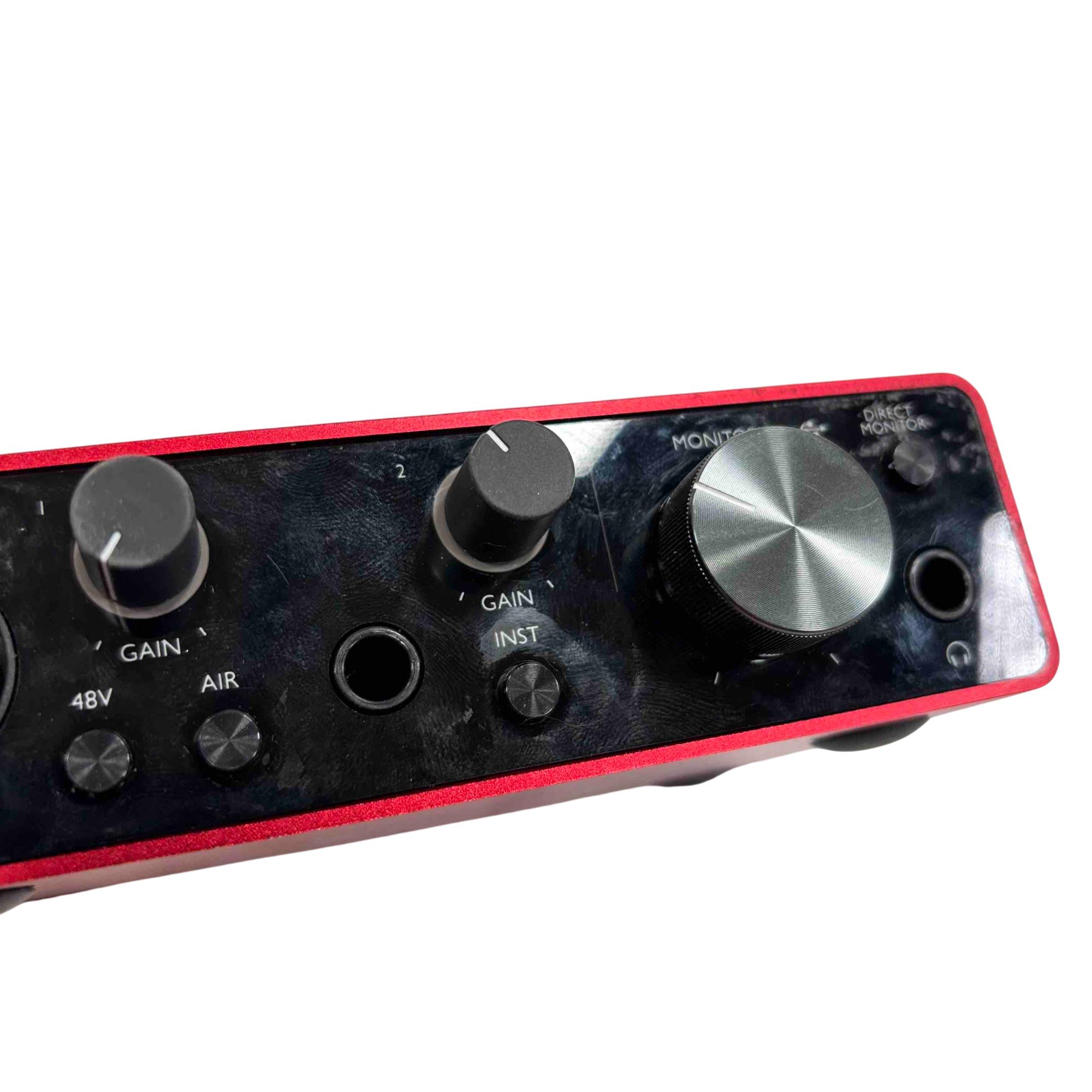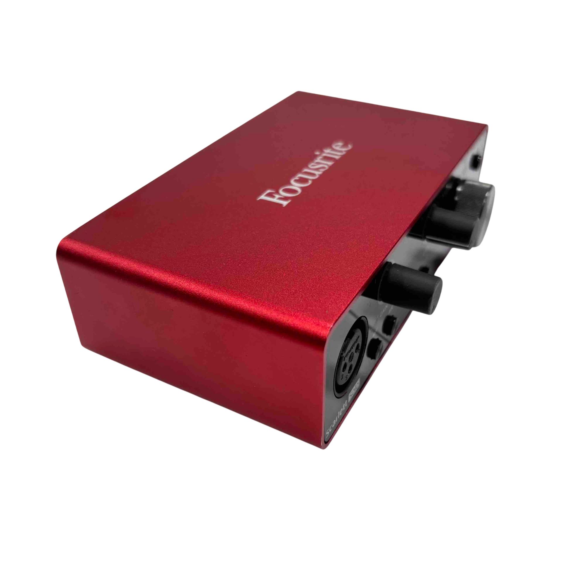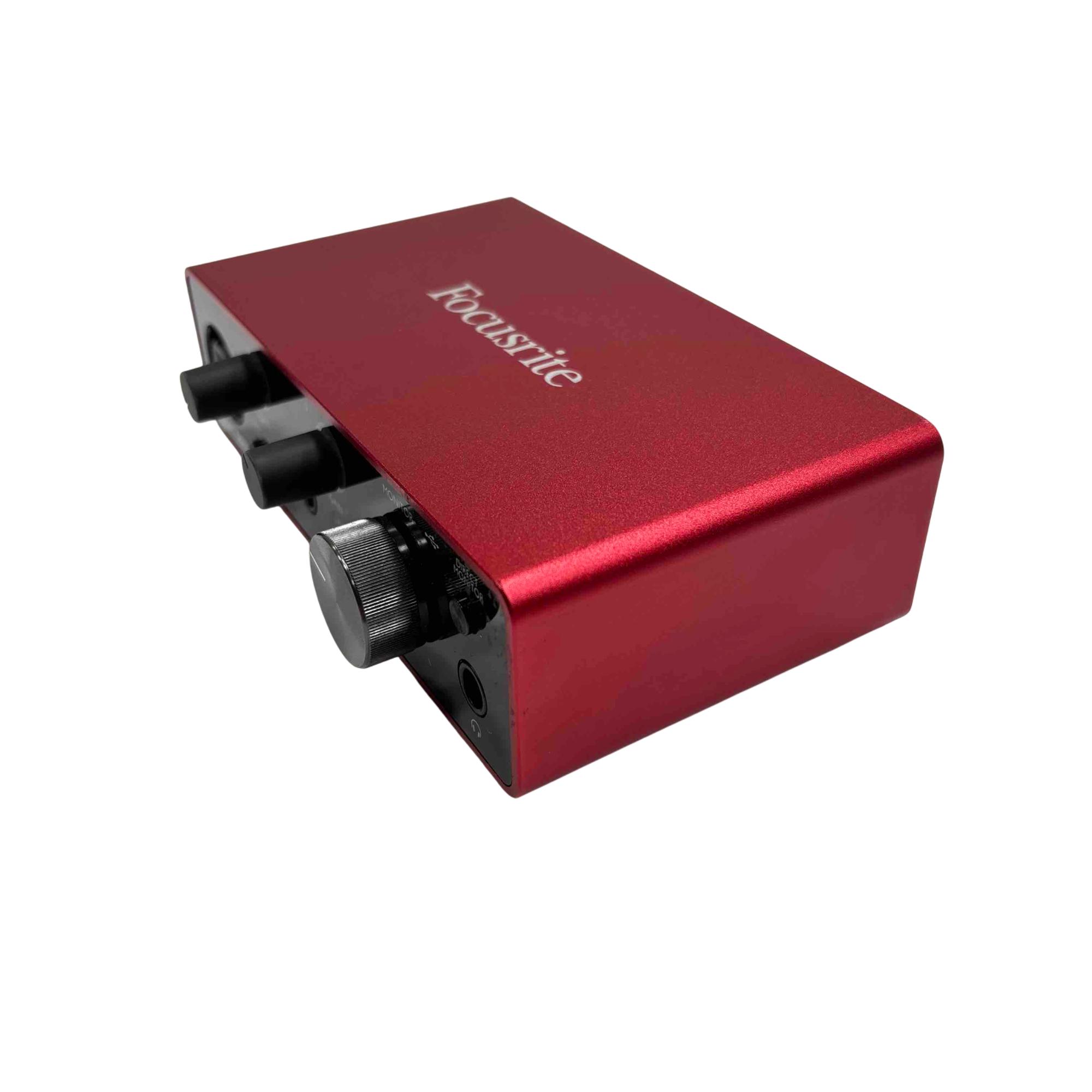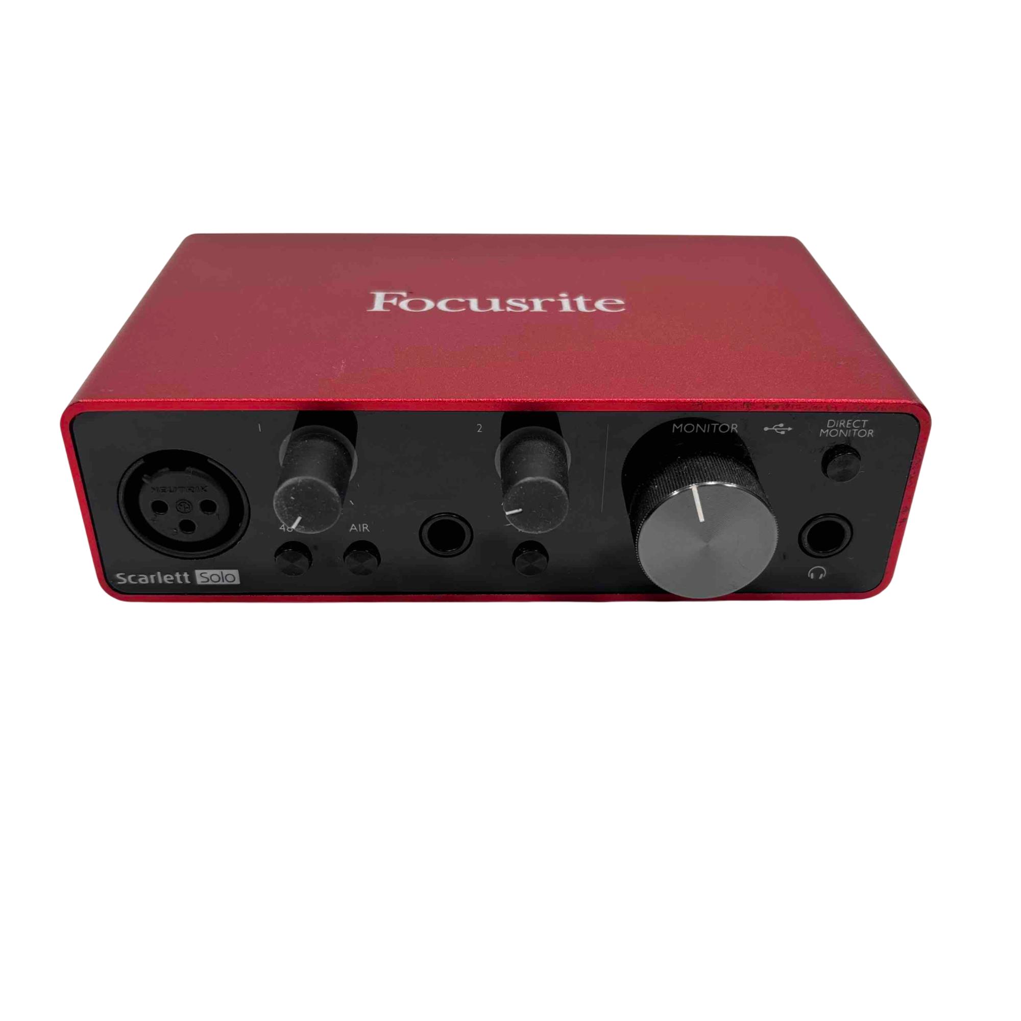 Unlock your music potential with the Focusrite Scarlett Solo USB Audio Interface. This compact, yet powerful device features direct monitor and air functionality, providing pristine sound clarity for both beginners and seasoned musicians. With its sleek red design and intuitive controls, create professional-quality recordings right from your home studio.