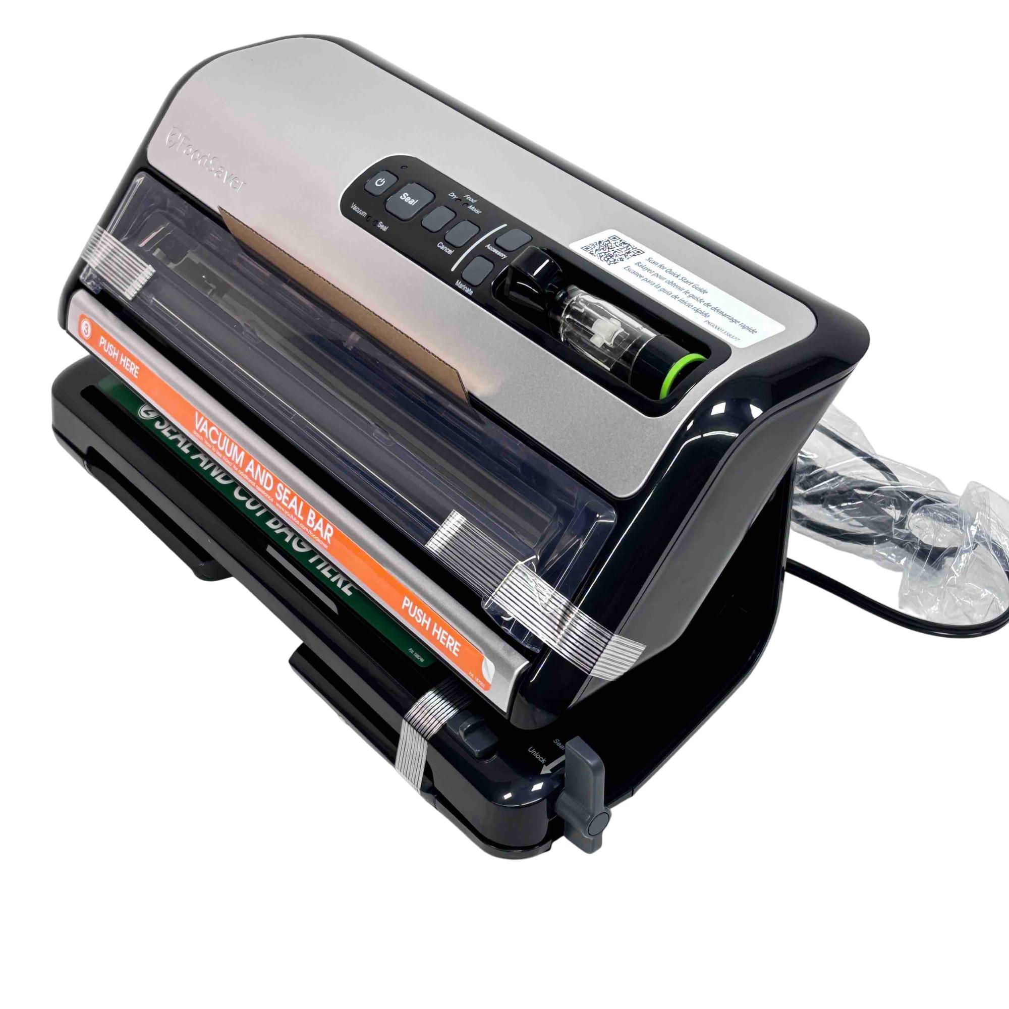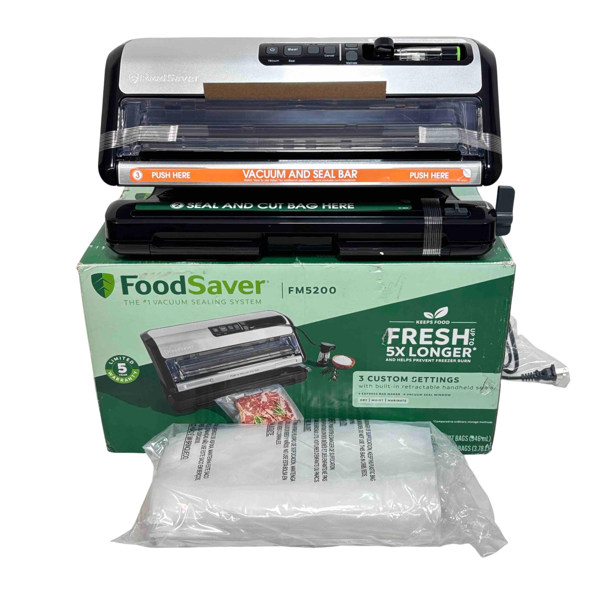 Keep your food fresh up to 5 times longer with the FoodSaver FM5200, the industry-leading vacuum sealing system designed to prevent freezer burn and minimize food waste. This model features handy custom settings, an express bag maker, and a built-in retractable handheld sealer, making it perfect for bulk food storage or sous vide cooking. Get professional-level food preservation with easy-to-use, durable construction and a sleek black and silver design.