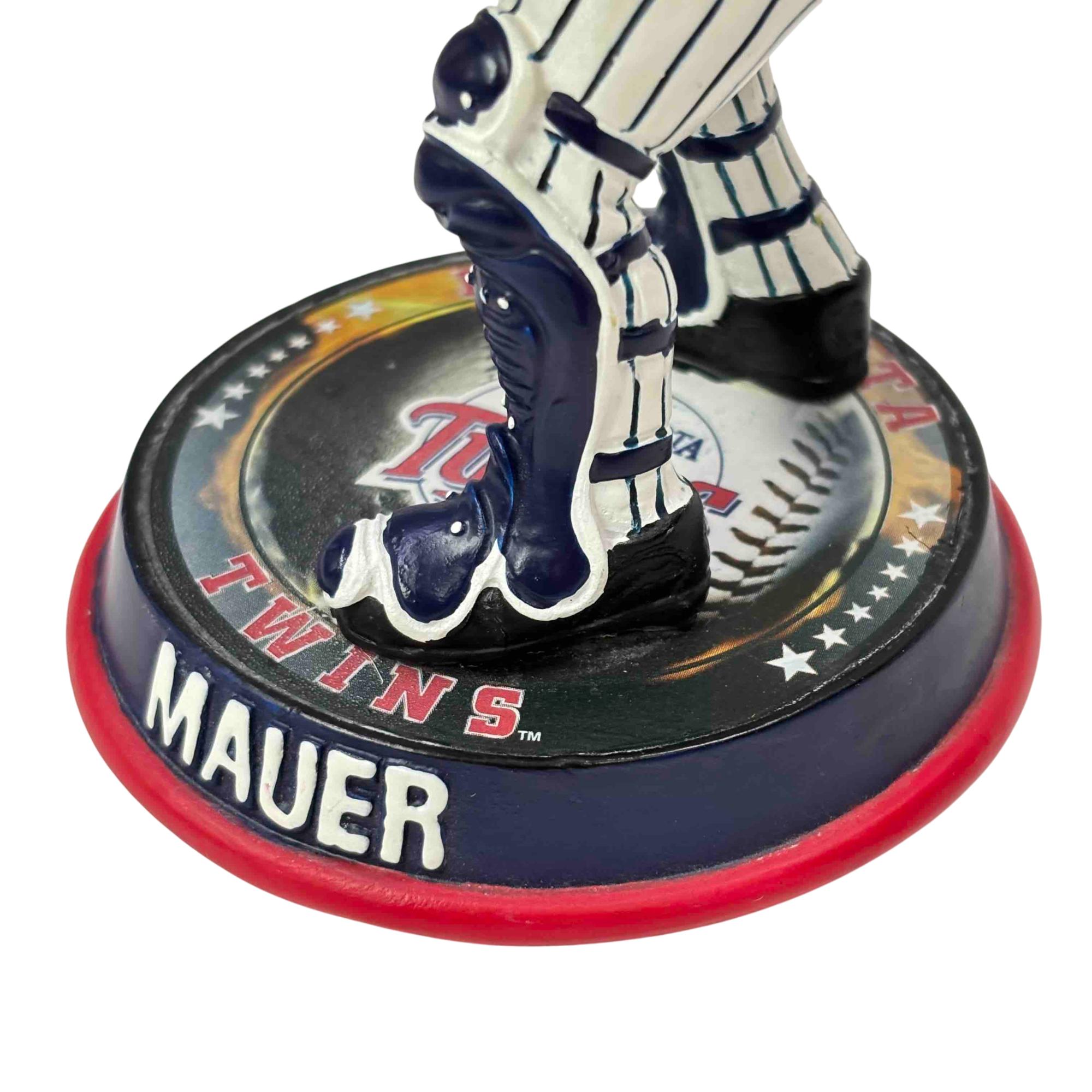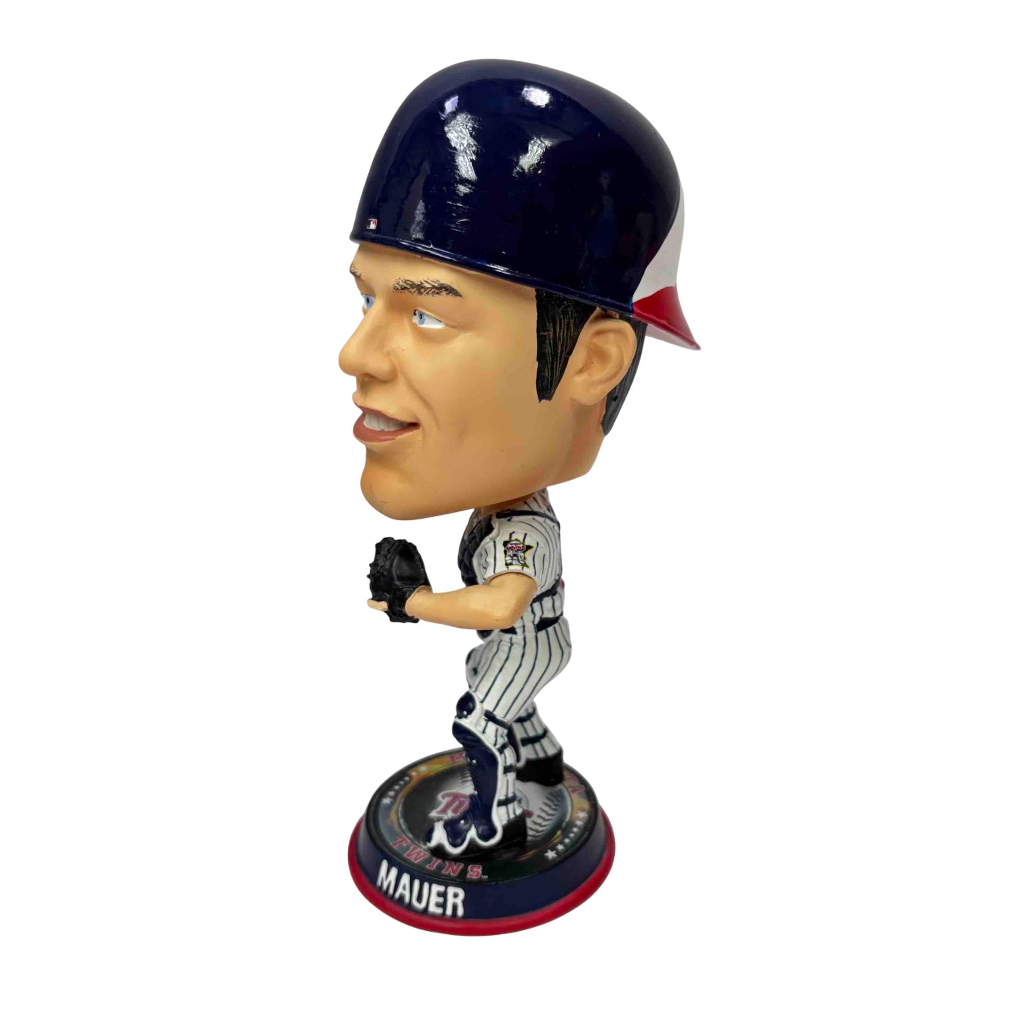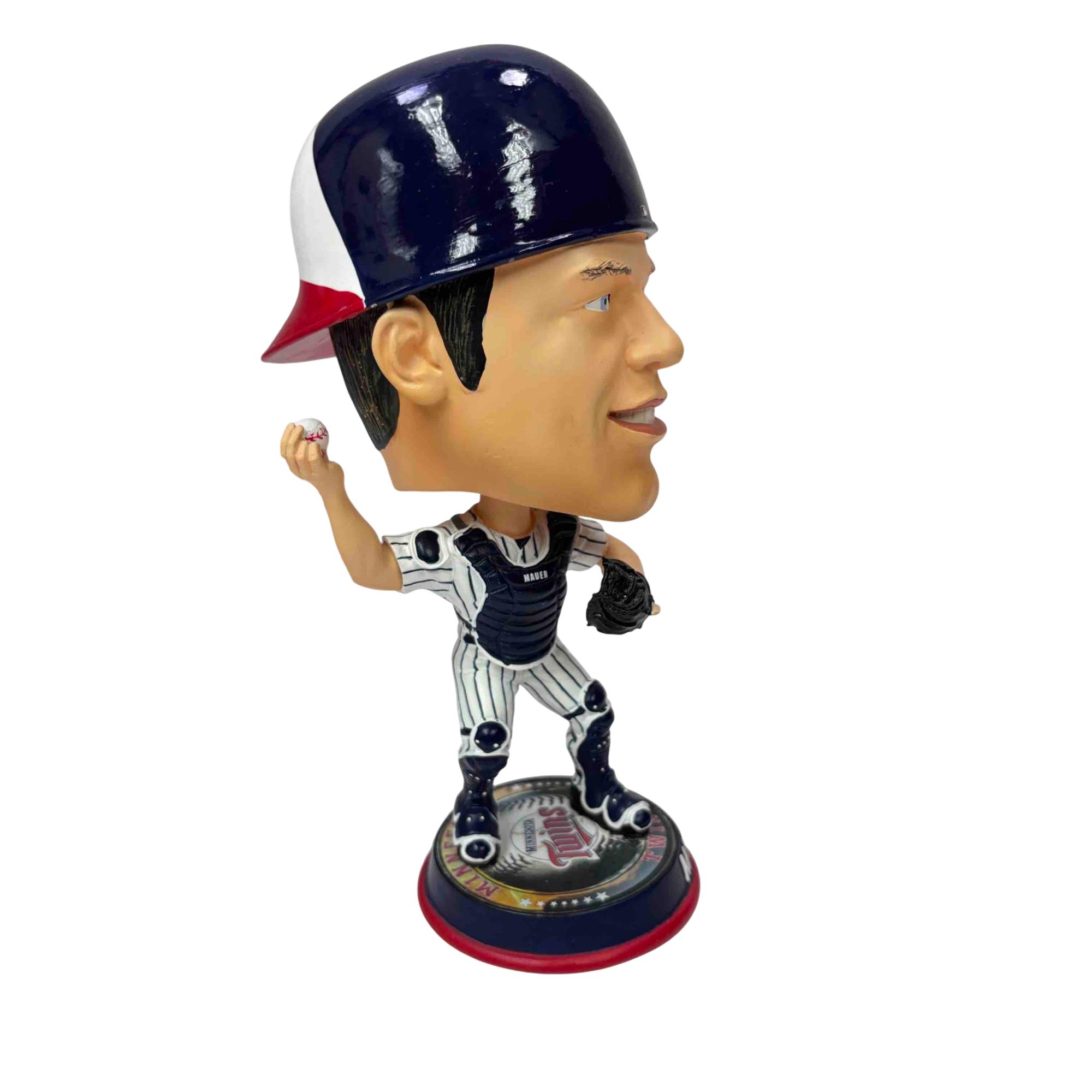 Celebrate one of Minnesota's baseball legends with this collectible Joe Mauer bobblehead by Forever Collectibles. Featuring Mauer in his Twins catcher gear and standing on a Minnesota Twins-themed base, this figurine is perfect for any fan or memorabilia collection. Add this unique piece of baseball history to your shelf and honor a true Minnesota icon!