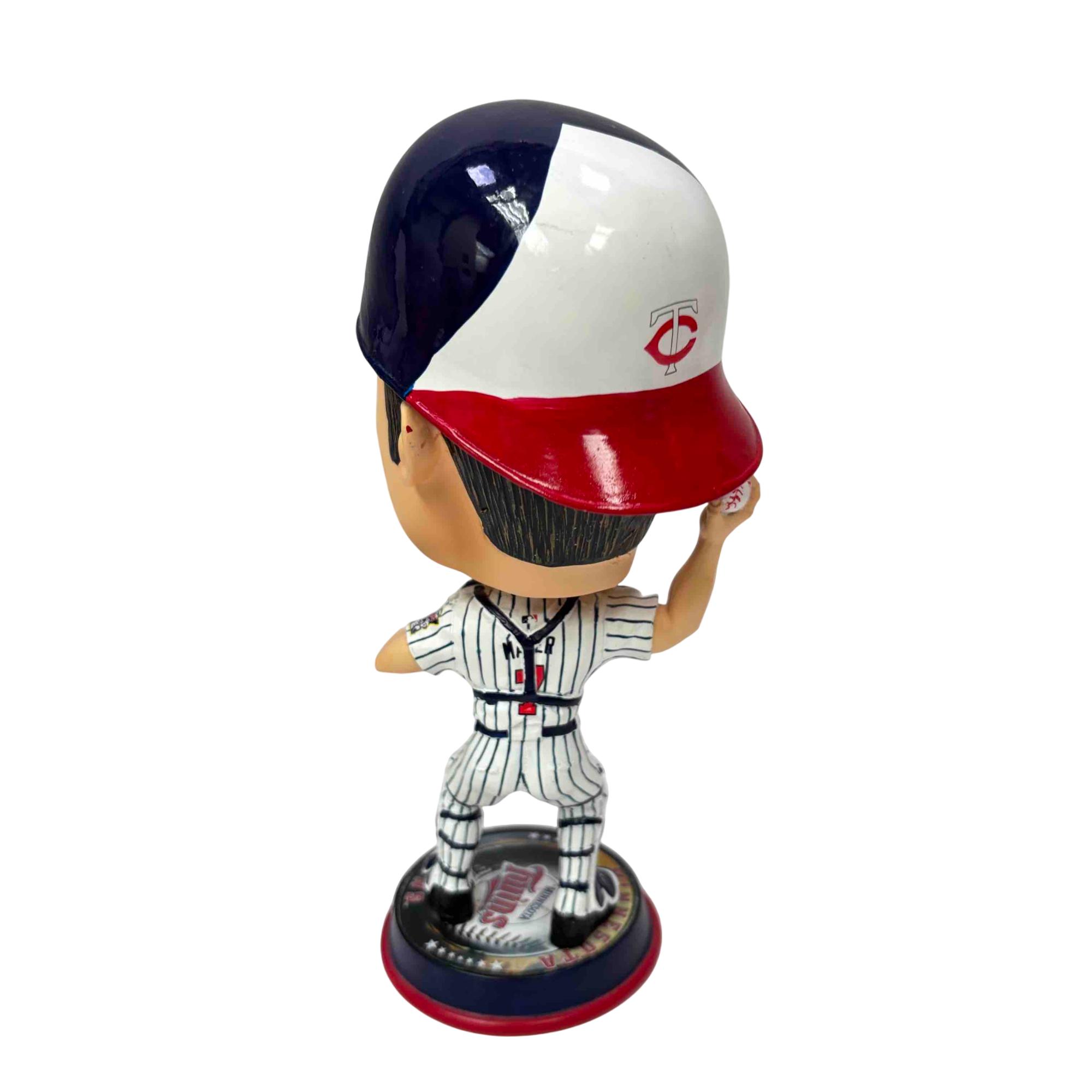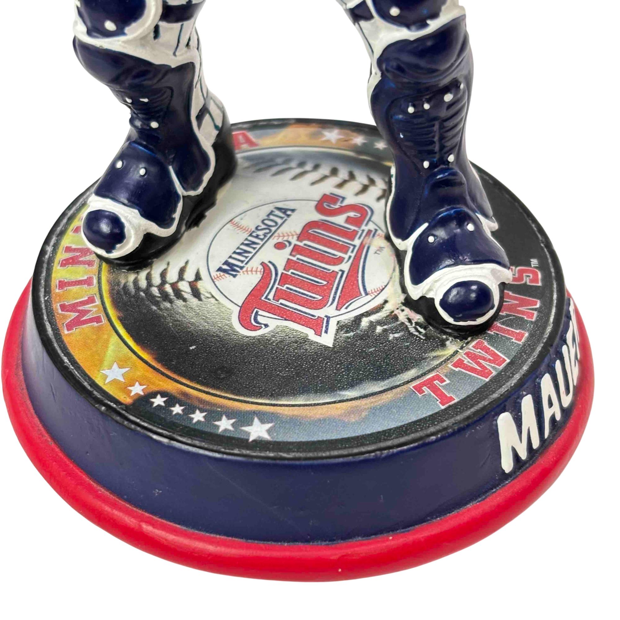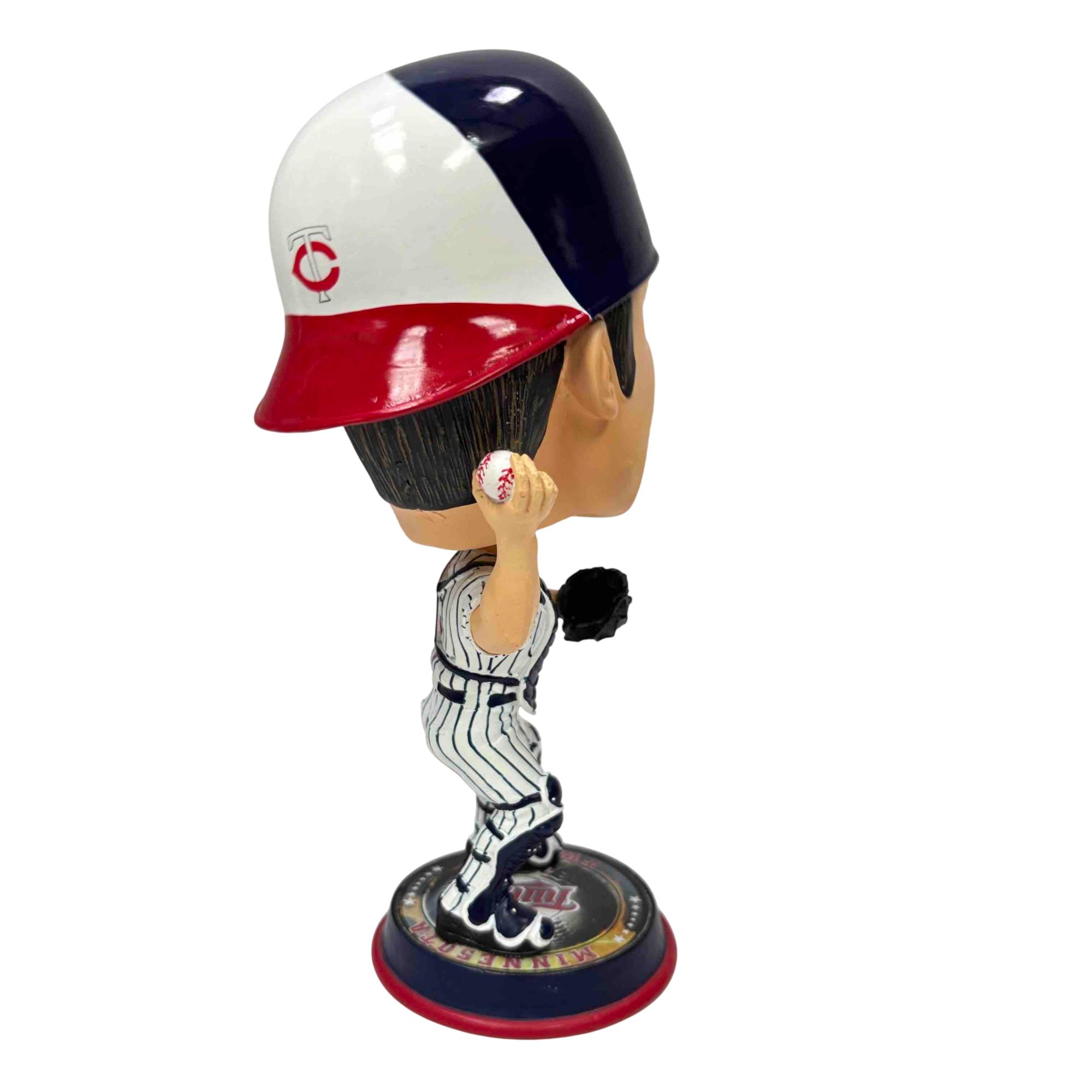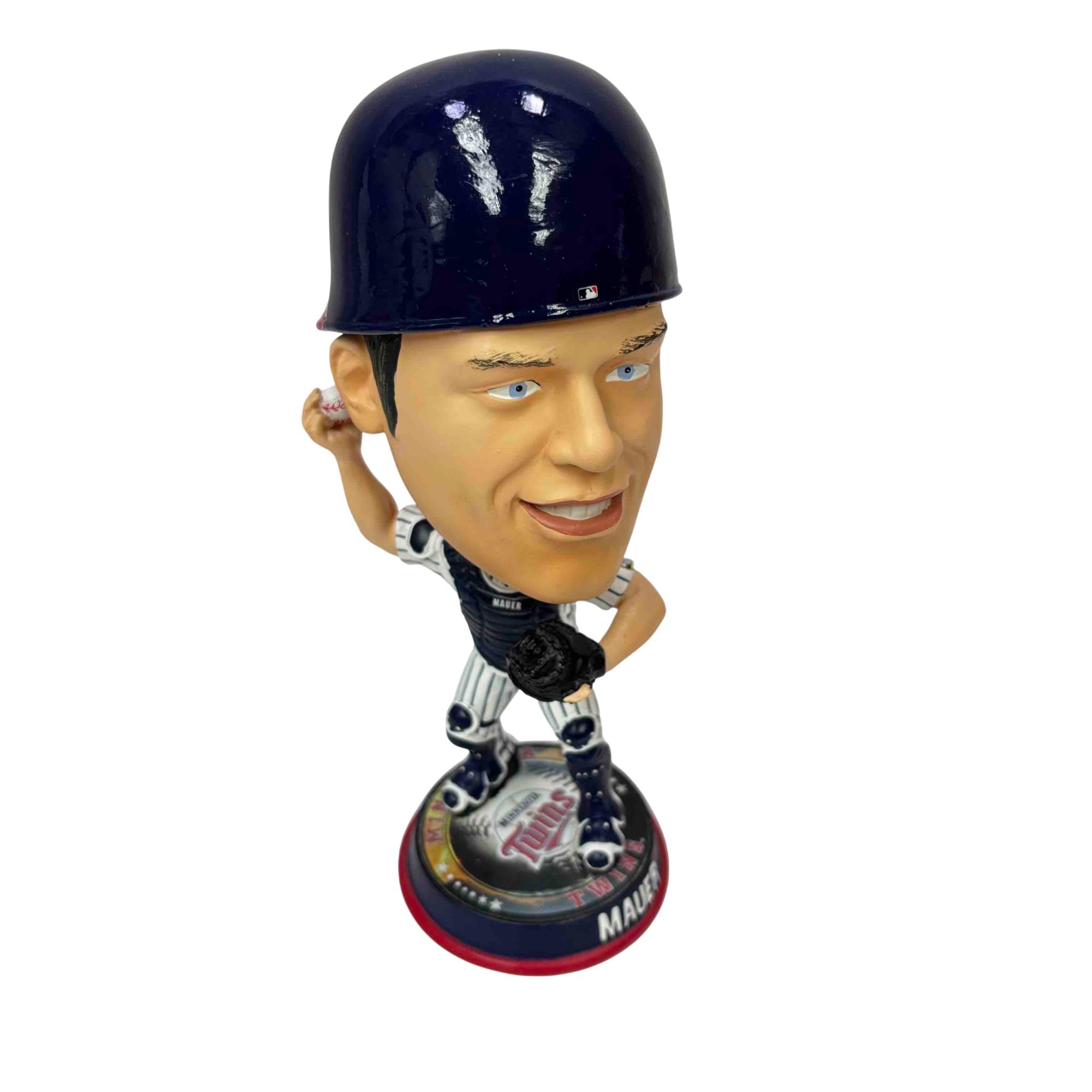 Celebrate one of Minnesota's baseball legends with this collectible Joe Mauer bobblehead by Forever Collectibles. Featuring Mauer in his Twins catcher gear and standing on a Minnesota Twins-themed base, this figurine is perfect for any fan or memorabilia collection. Add this unique piece of baseball history to your shelf and honor a true Minnesota icon!