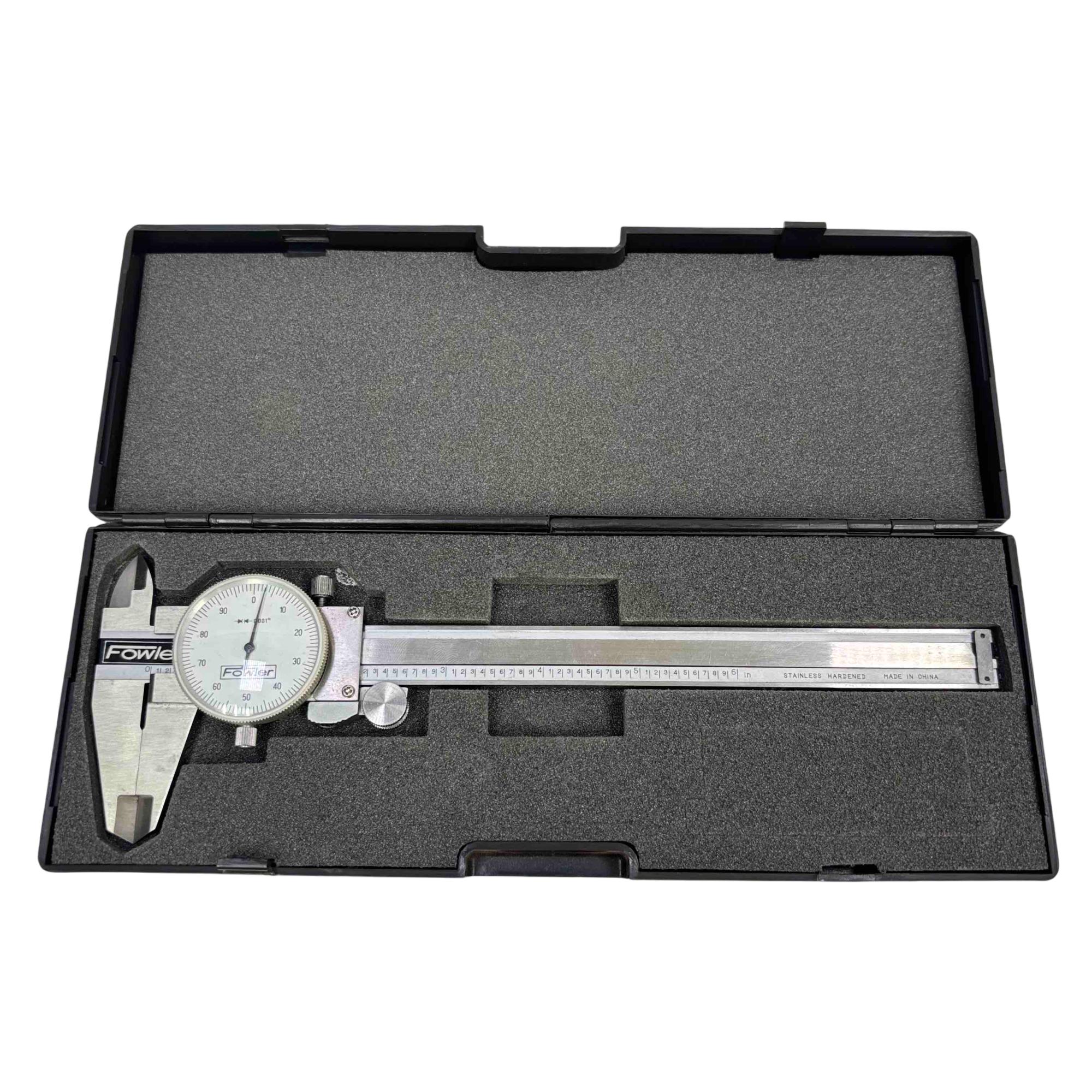 Upgrade your precision measuring tools with the Fowler Dial Caliper, the ideal choice for professionals and DIY enthusiasts alike. Featuring a 0-6 inch measurement range with 0.001" accuracy, this stainless steel caliper is perfect for detailed work requiring high precision. Its durable, hardened construction ensures long-lasting performance in any workshop environment.