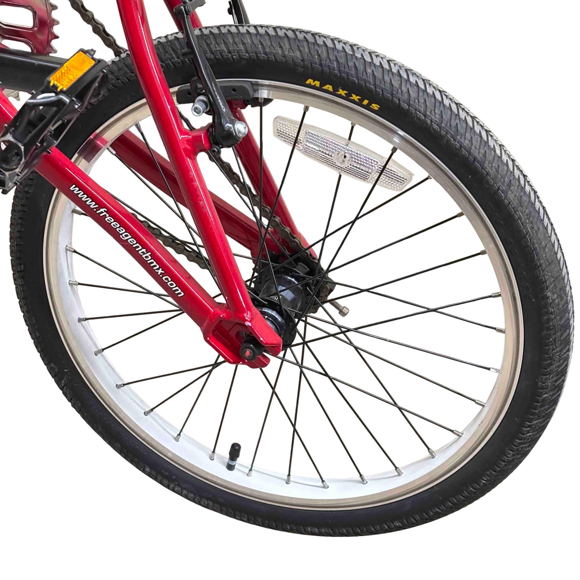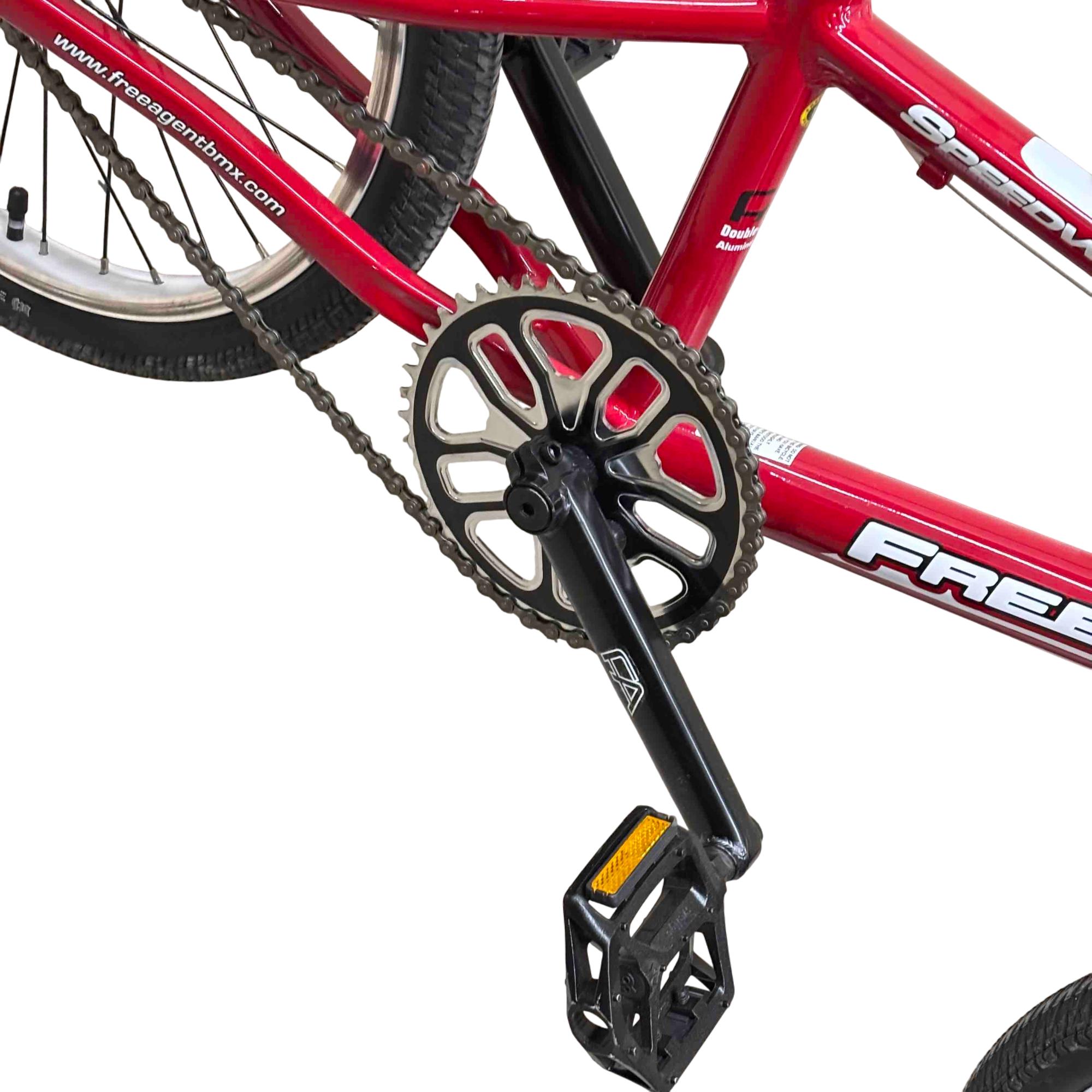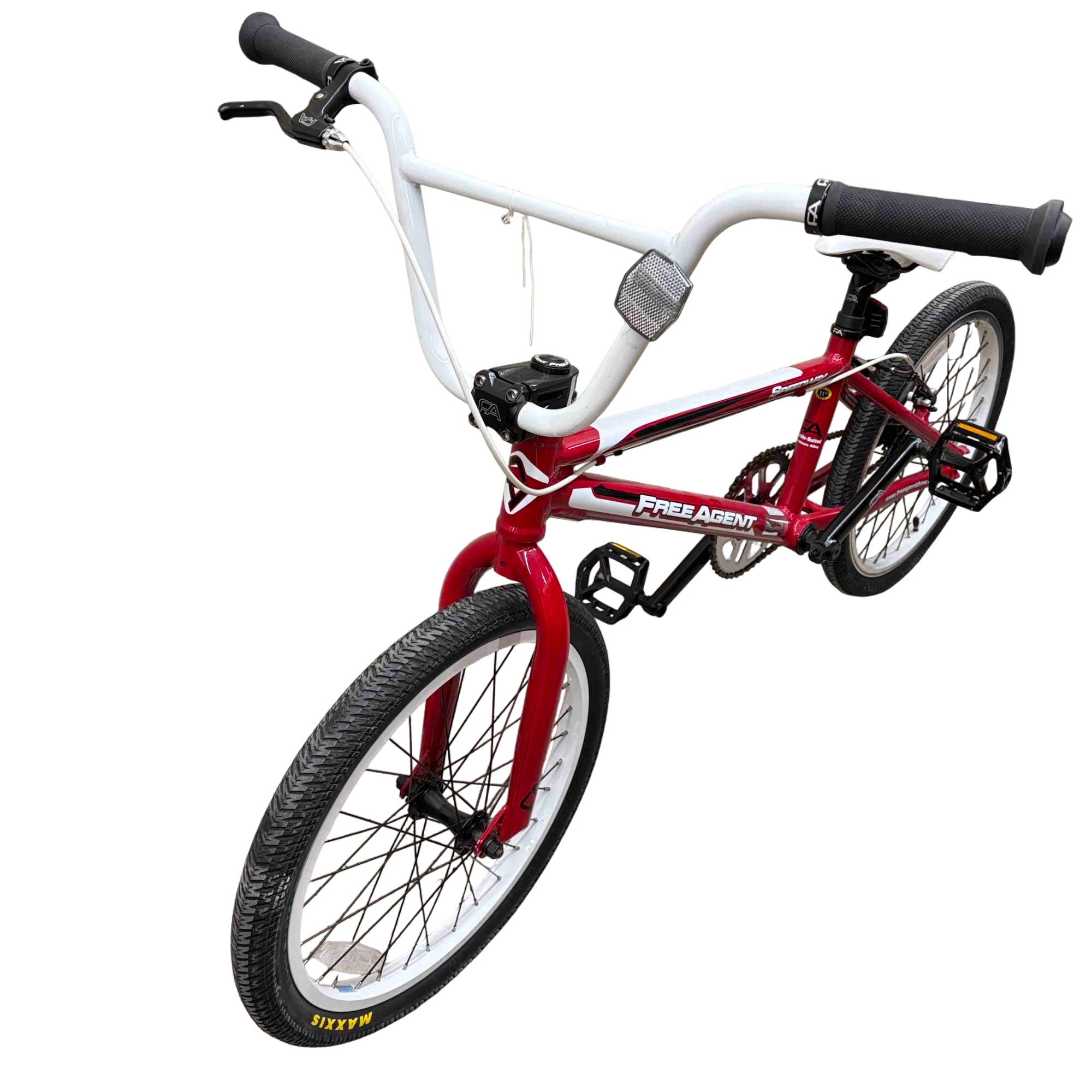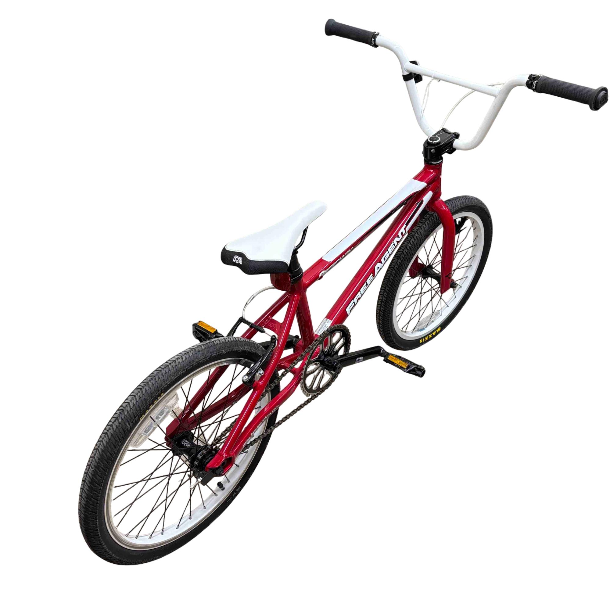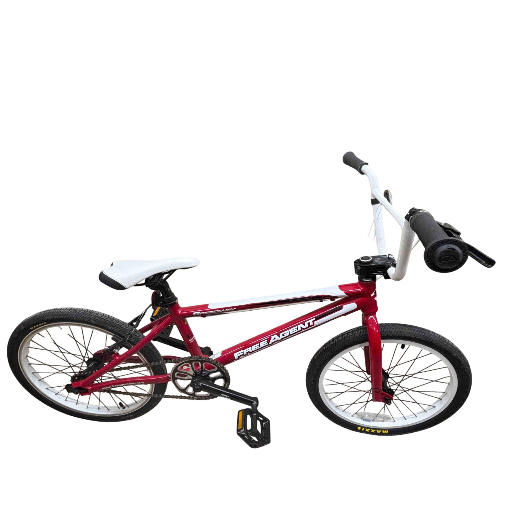 Unleash your inner champion with the Free Agent Speedway BMX Bike. Built for speed and agility, this bike features a striking red and white frame, durable MAXXIS tires, and top-of-the-line TEKTRO components. Ideal for both beginners and seasoned racers, it promises to deliver thrilling rides and unbeatable performance.