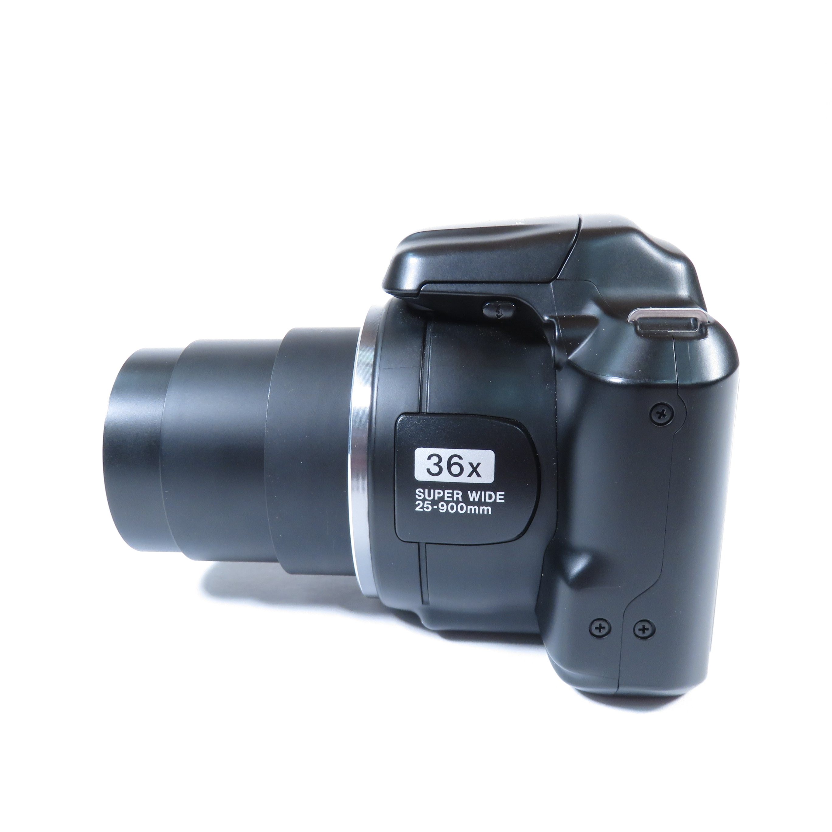 Equivalent to a 25-900mm lens on an analog camera with TTL Contrast, Single AF, Continuous AF, Glass Lens