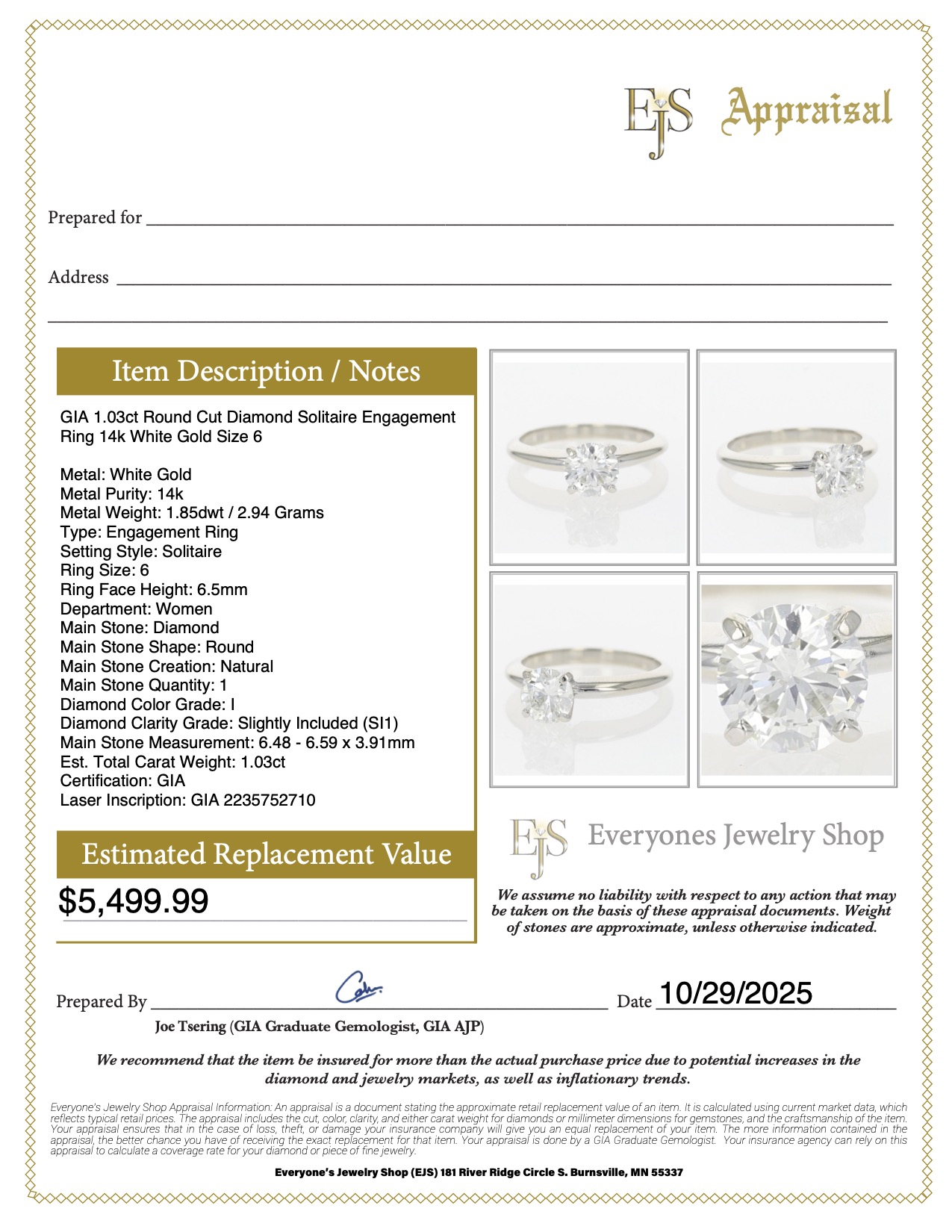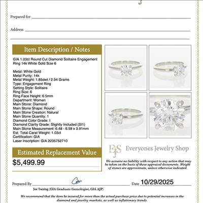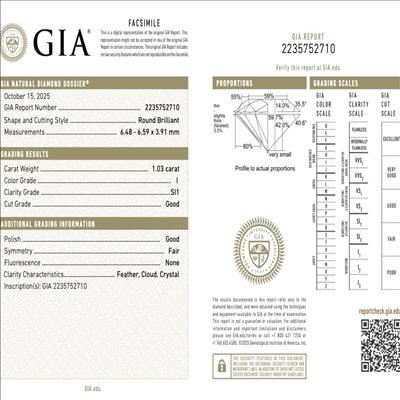 The primary diamond is laserscribed with GIA 2235752710 on the girdle.