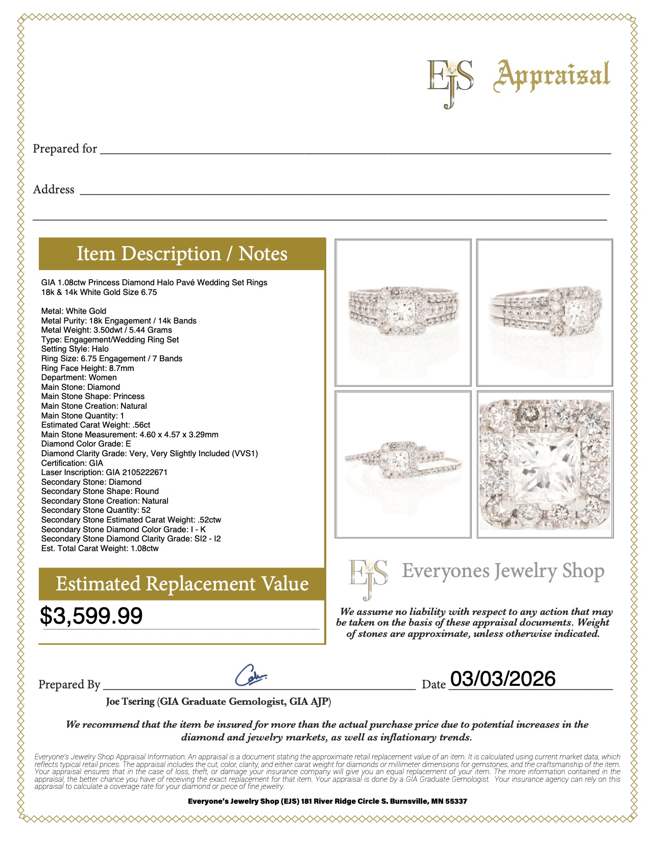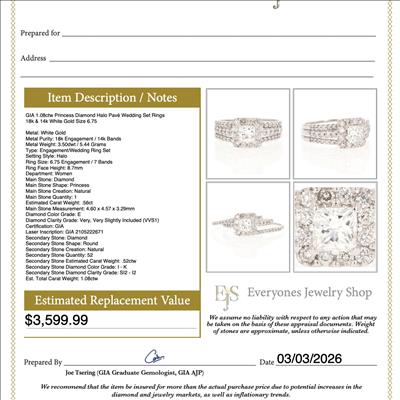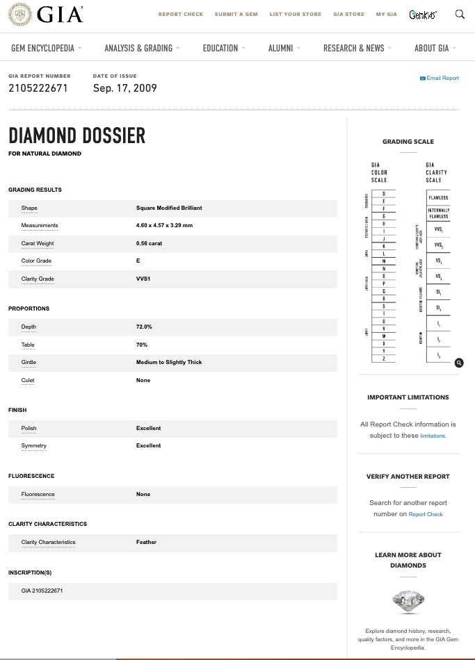The primary diamond is laserscribed with GIA 2105222671 on the girdle.