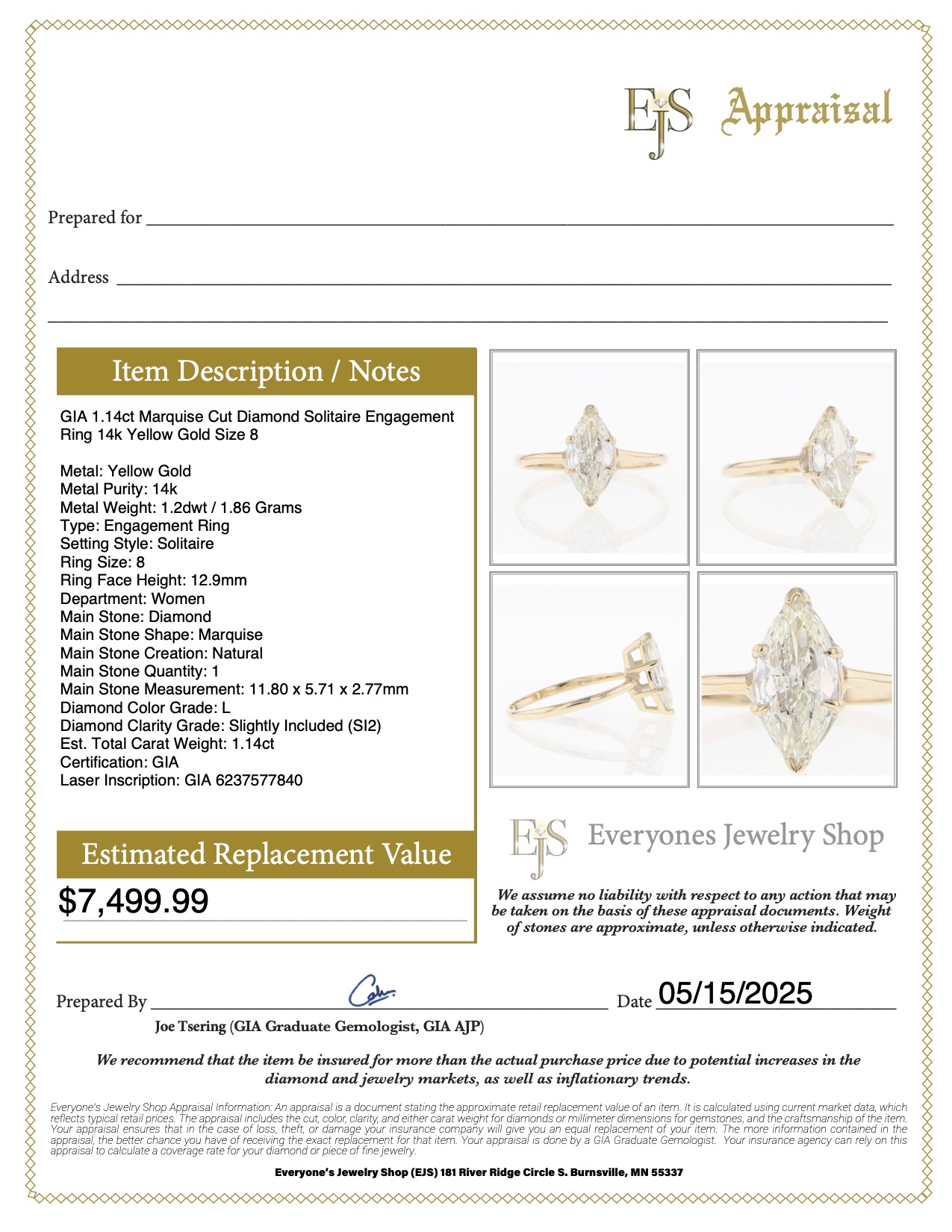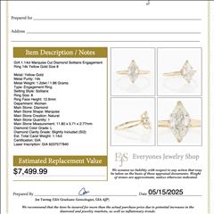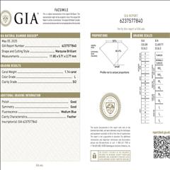 The primary diamond is laserscribed with GIA 6237577840 on the girdle.