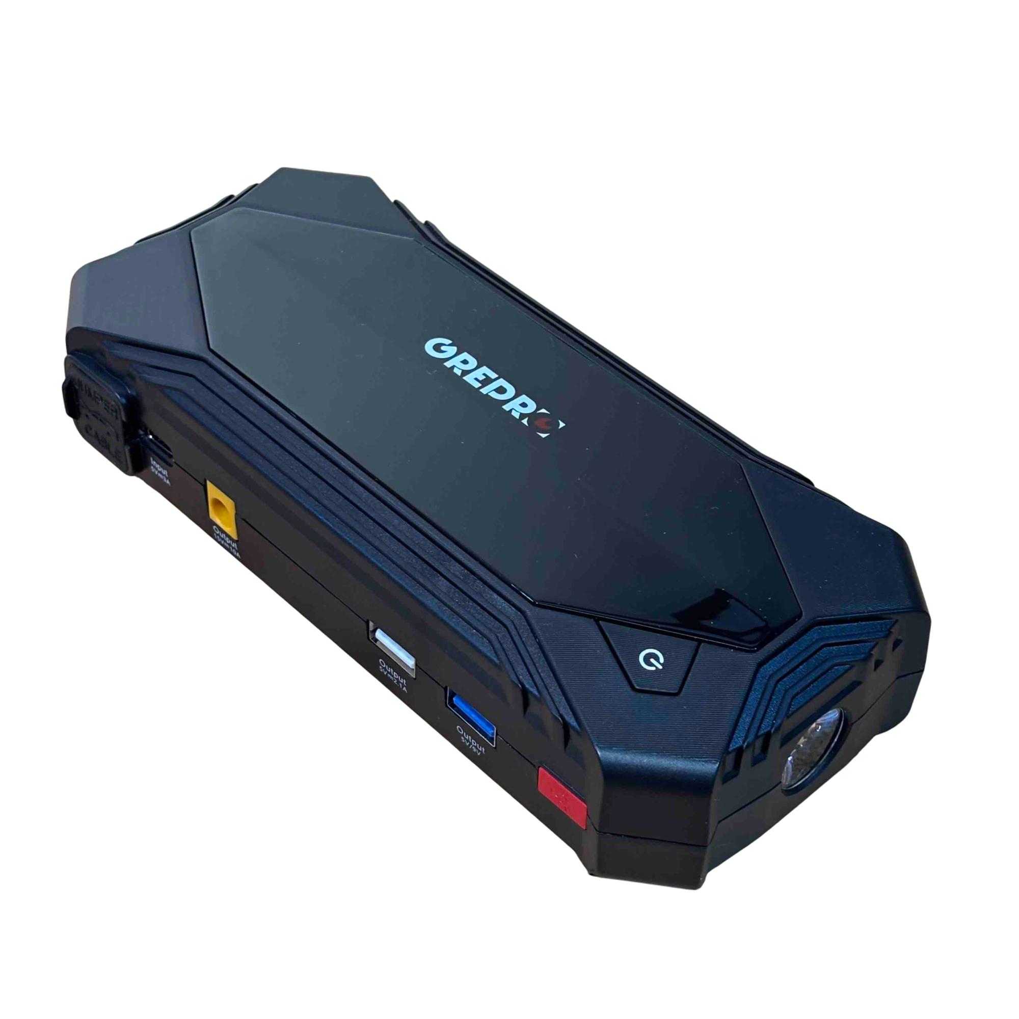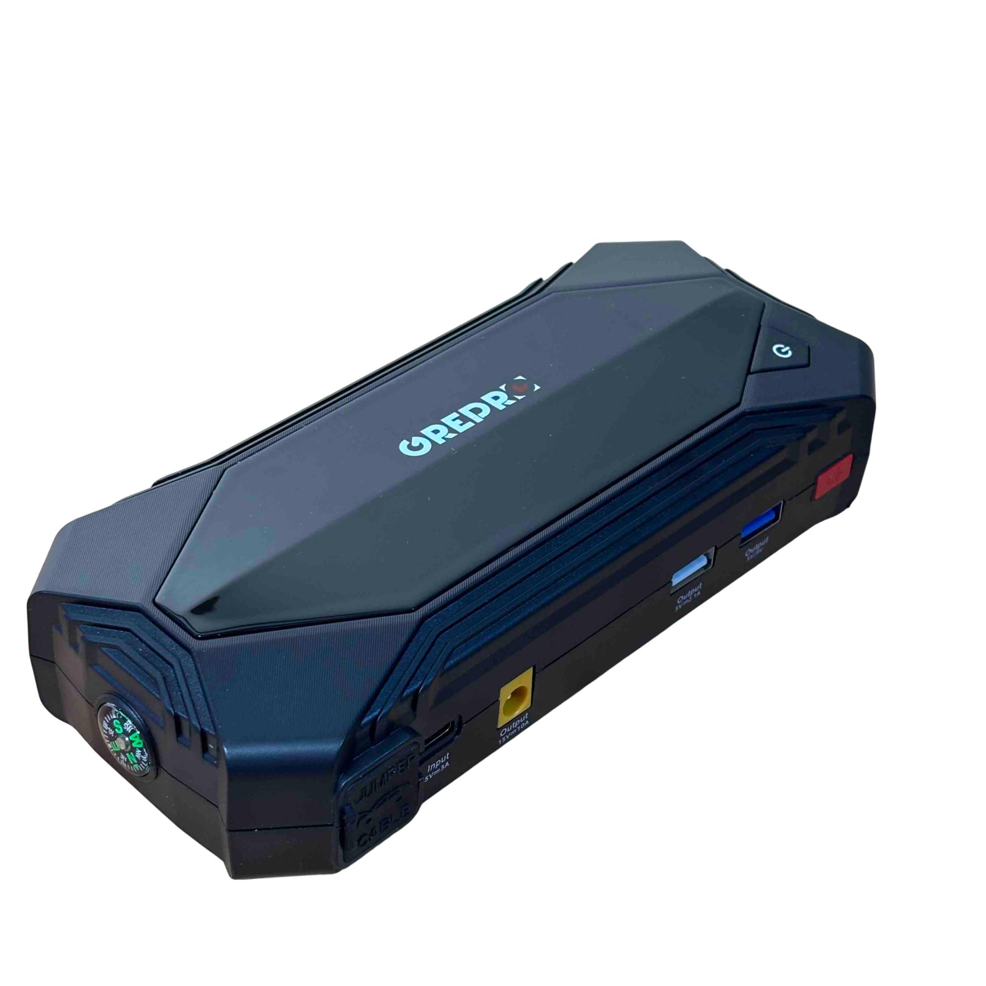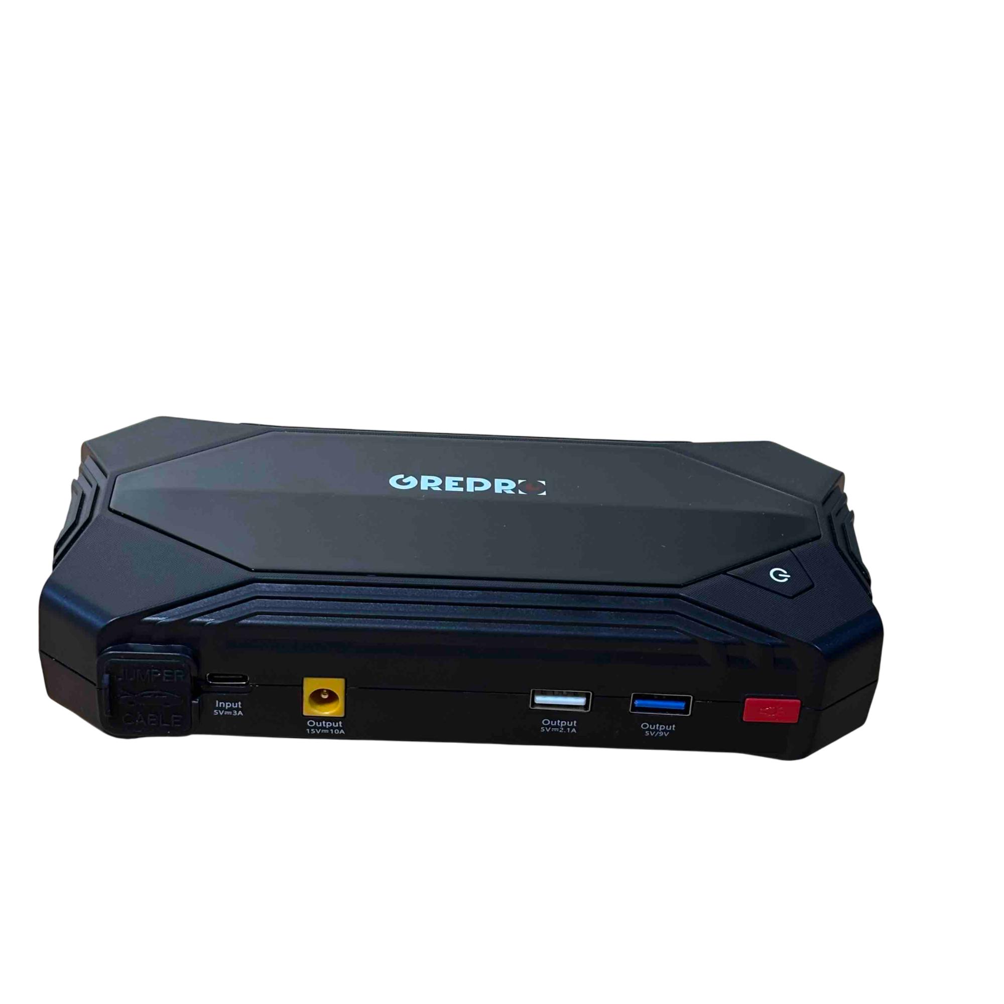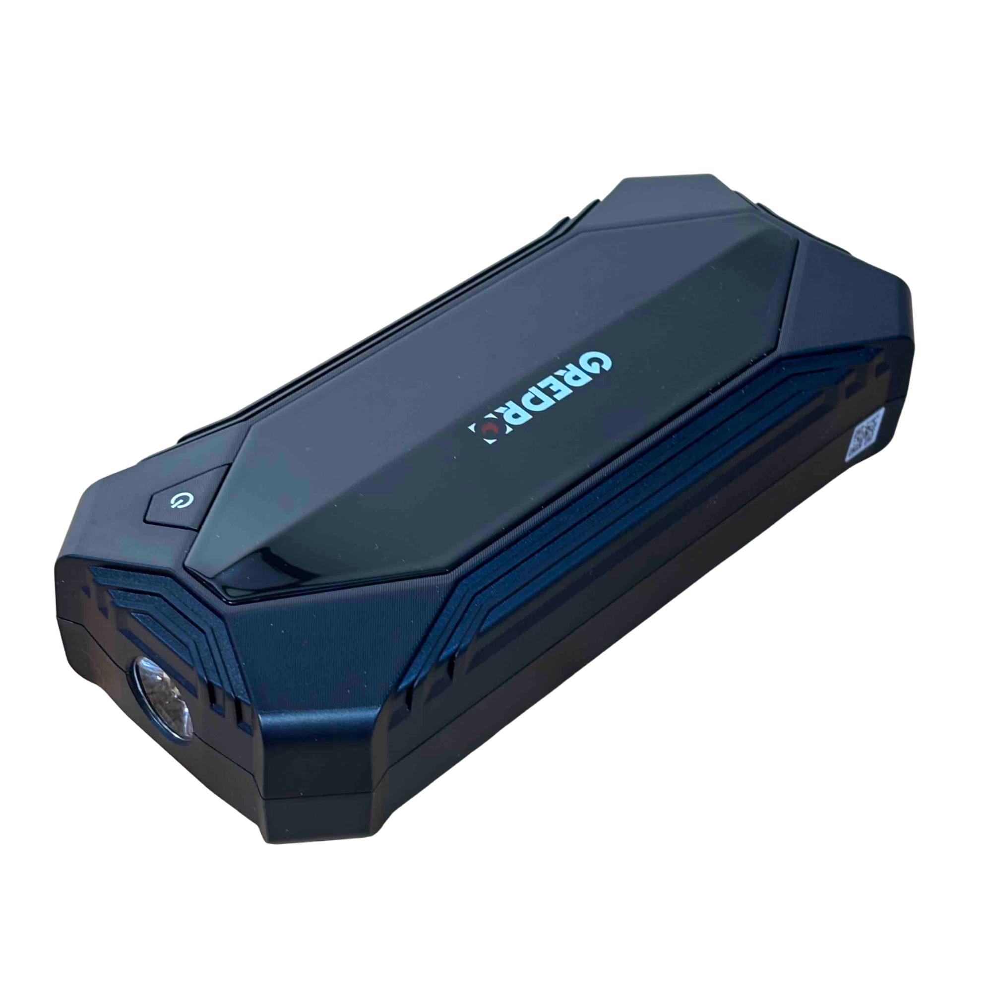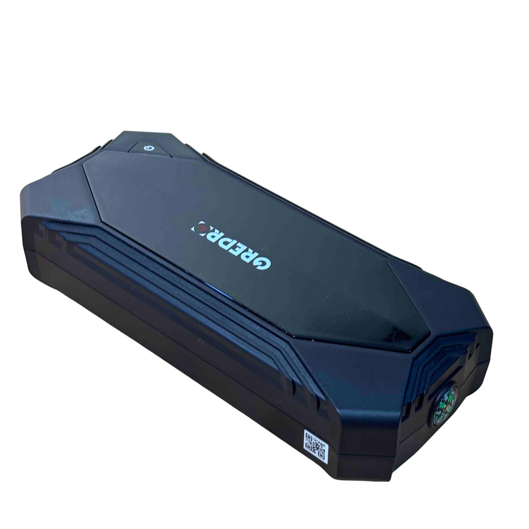 The OREPRO Jump Starter GP181 is a powerful and versatile device designed to jump-start your car with ease. With its robust battery, multiple USB ports for charging electronics, and built-in flashlight for convenience, this portable unit comes with jumper cables, a carrying case, and charging cords, making it perfect for emergency situations and everyday use. Its sleek, textured design and advanced safety features offer reliability and style on the go.
