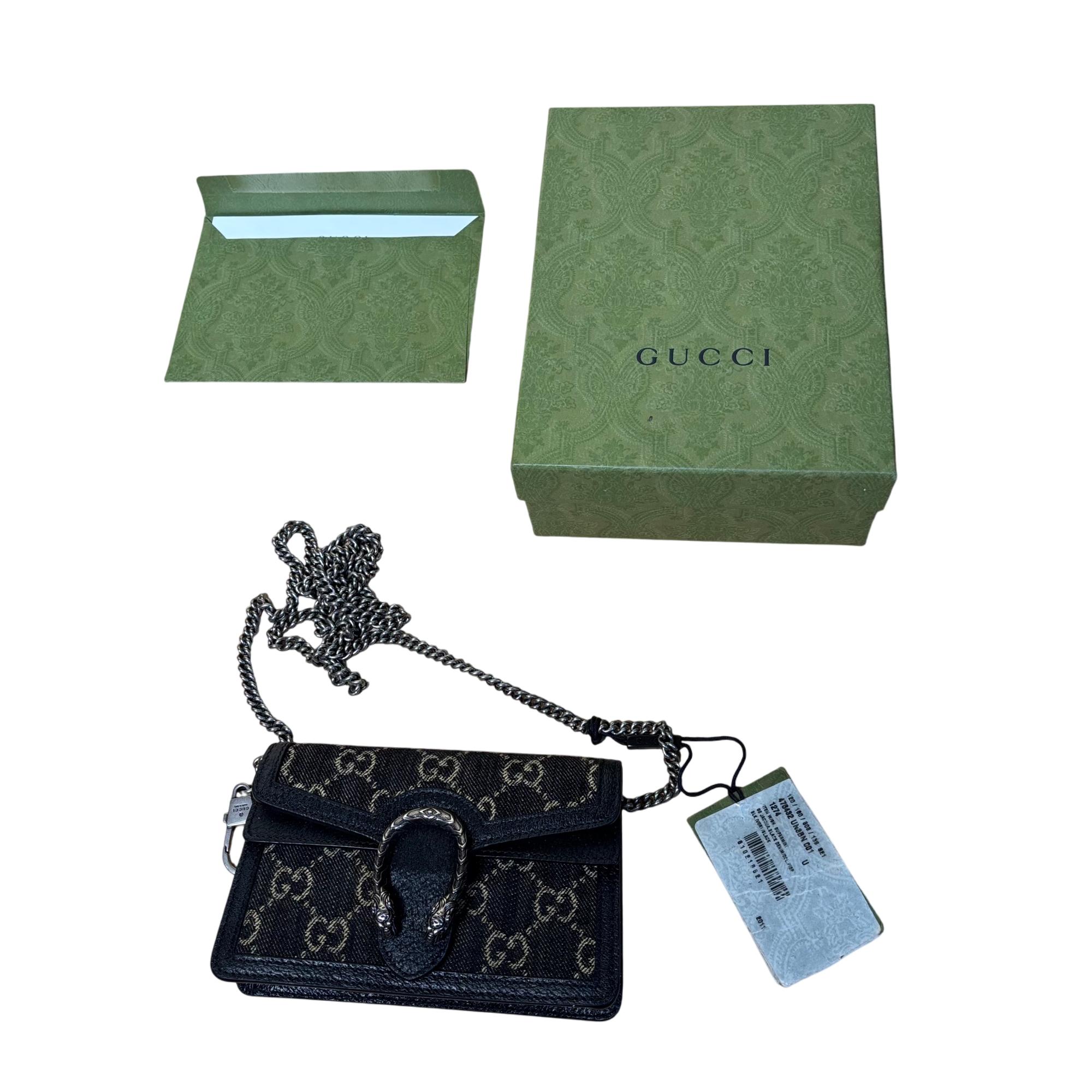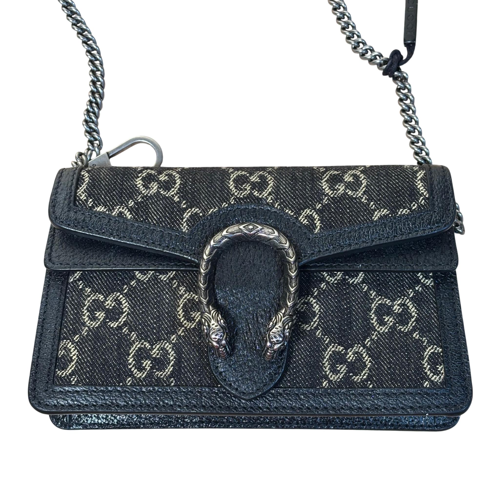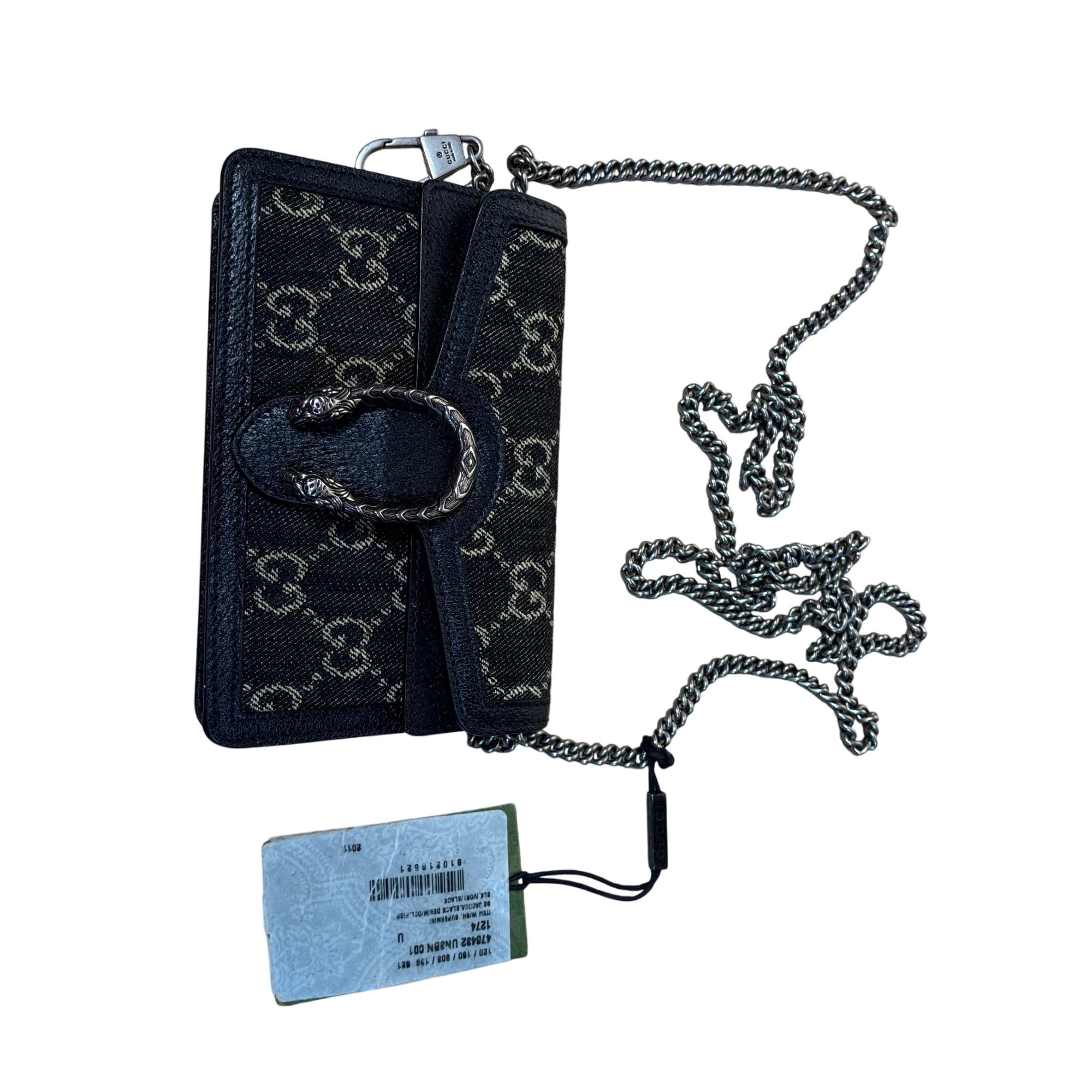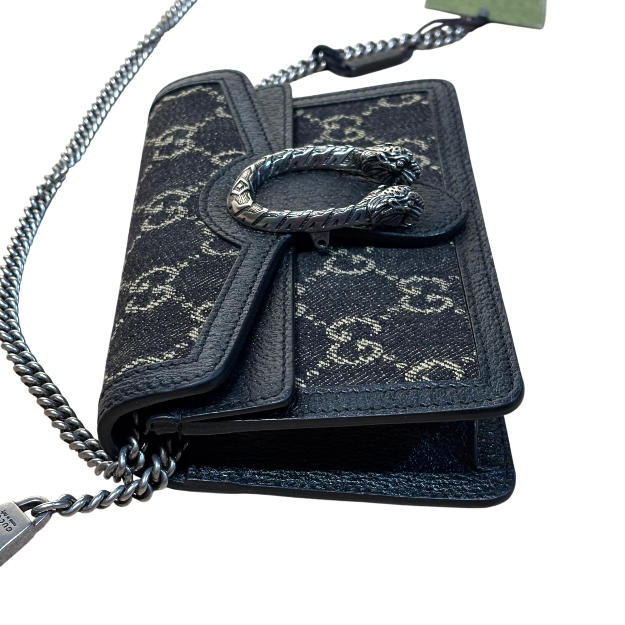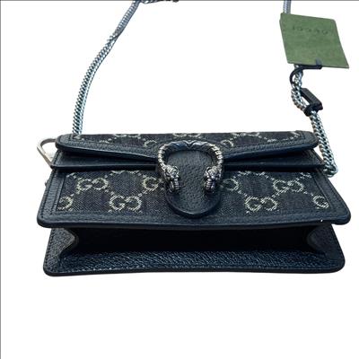 GUCCI 476432 UN3BN 001 Dionysus Black GG Denim Super Mini Shoulder Bag