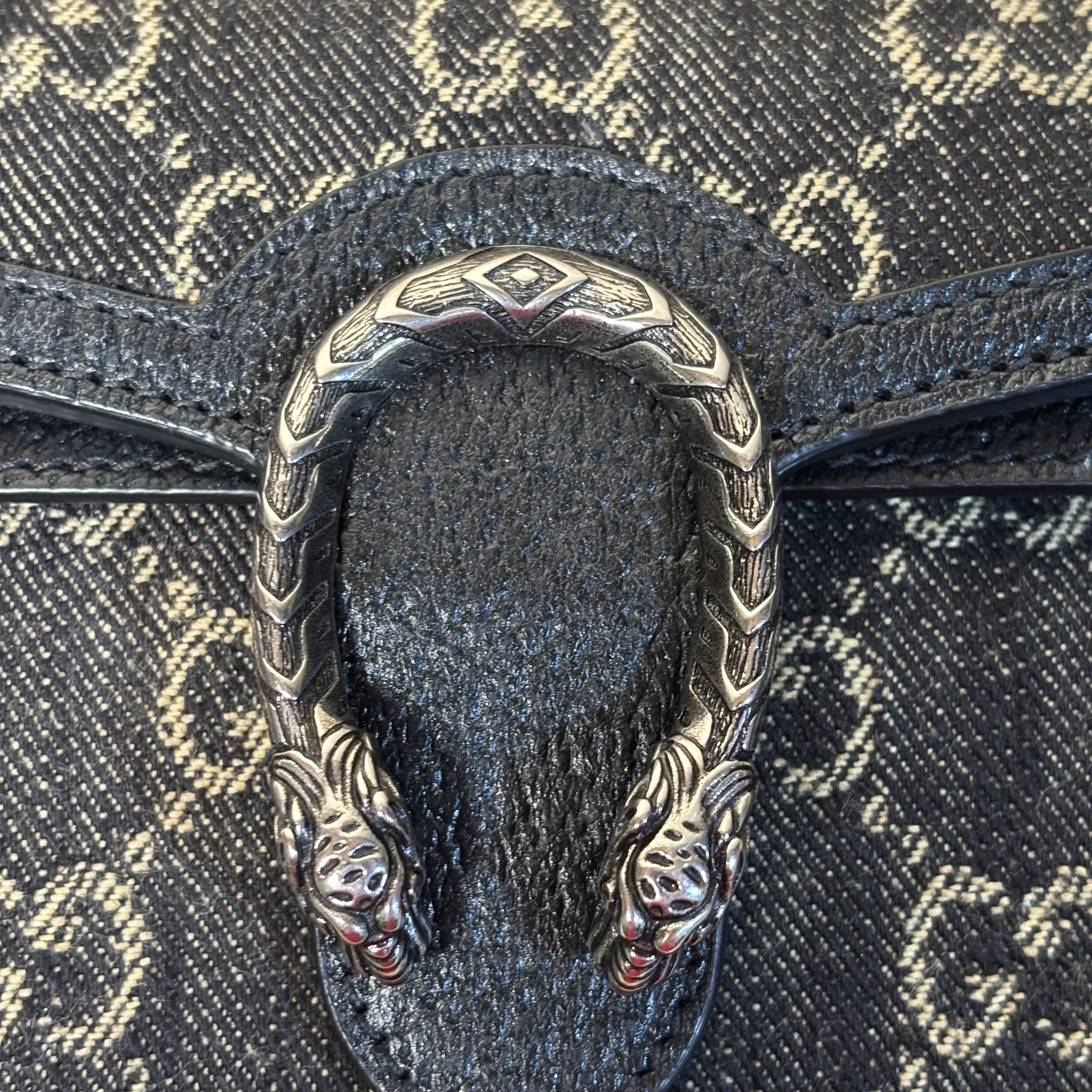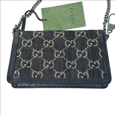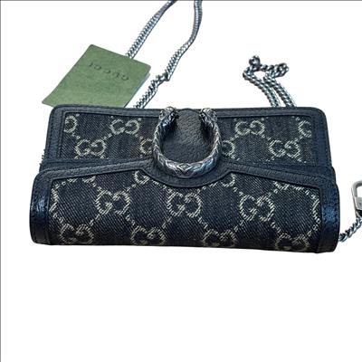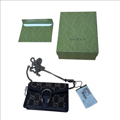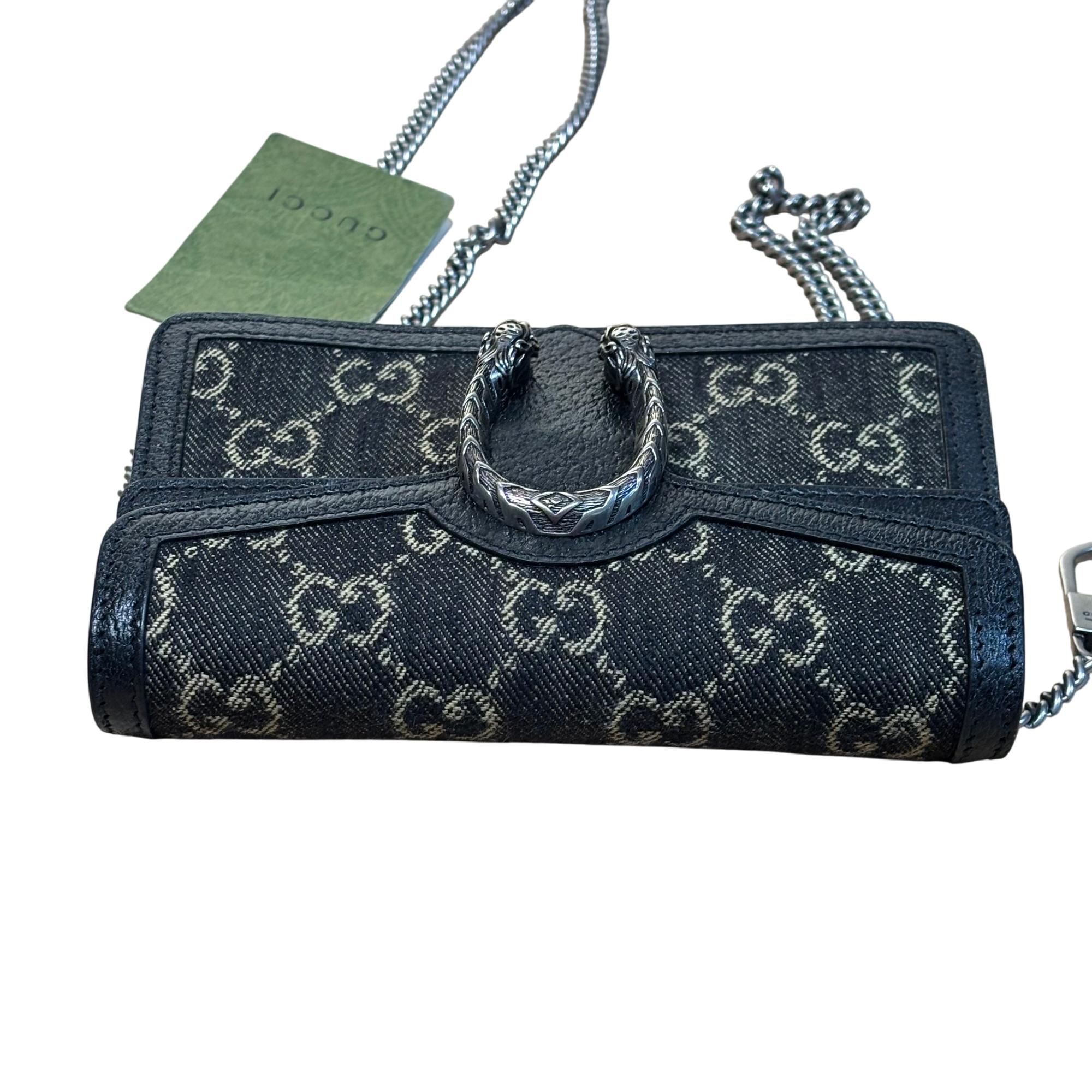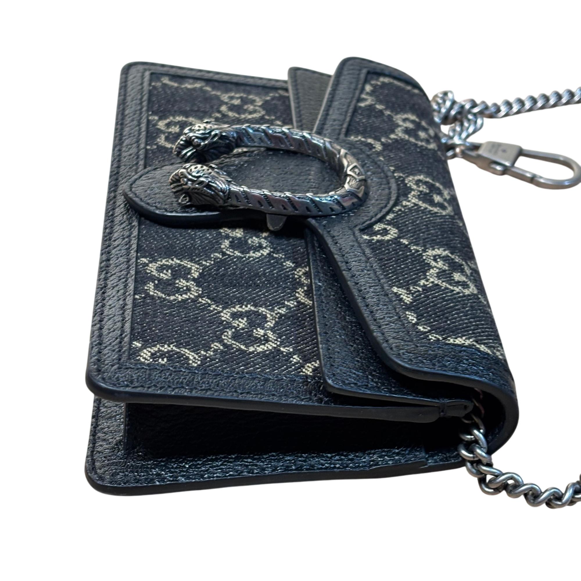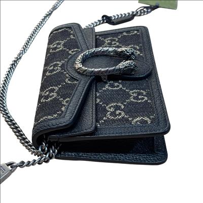 GUCCI 476432 UN3BN 001 Dionysus Black GG Denim Super Mini Shoulder Bag