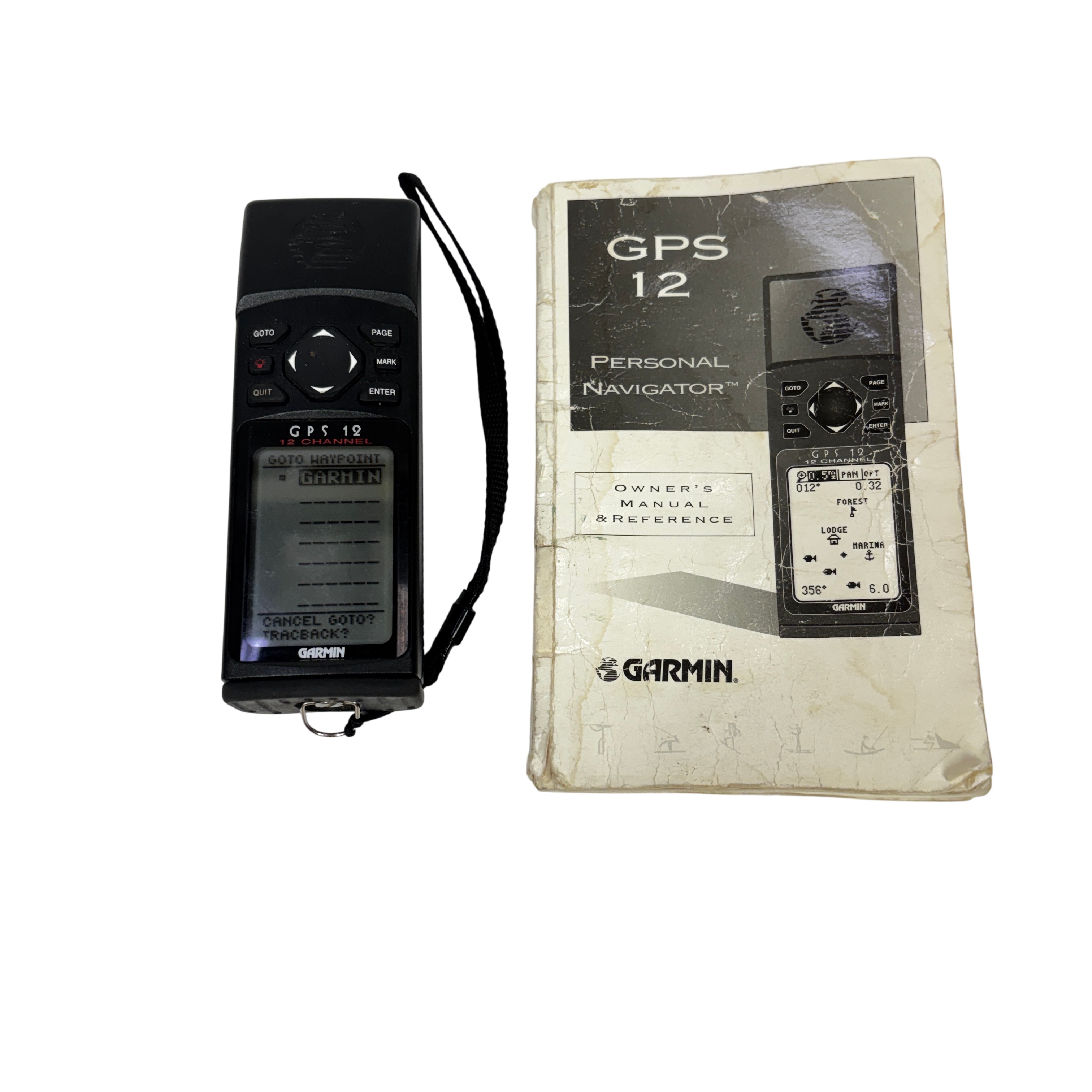 The Garmin GPS 12 Personal Navigator is a reliable handheld GPS device designed for outdoor enthusiasts. Featuring a 12-channel receiver, it ensures accurate and quick satellite acquisition. Its compact and durable design makes it perfect for hiking, camping, and other outdoor activities. The package includes the original manual for easy setup and operation.