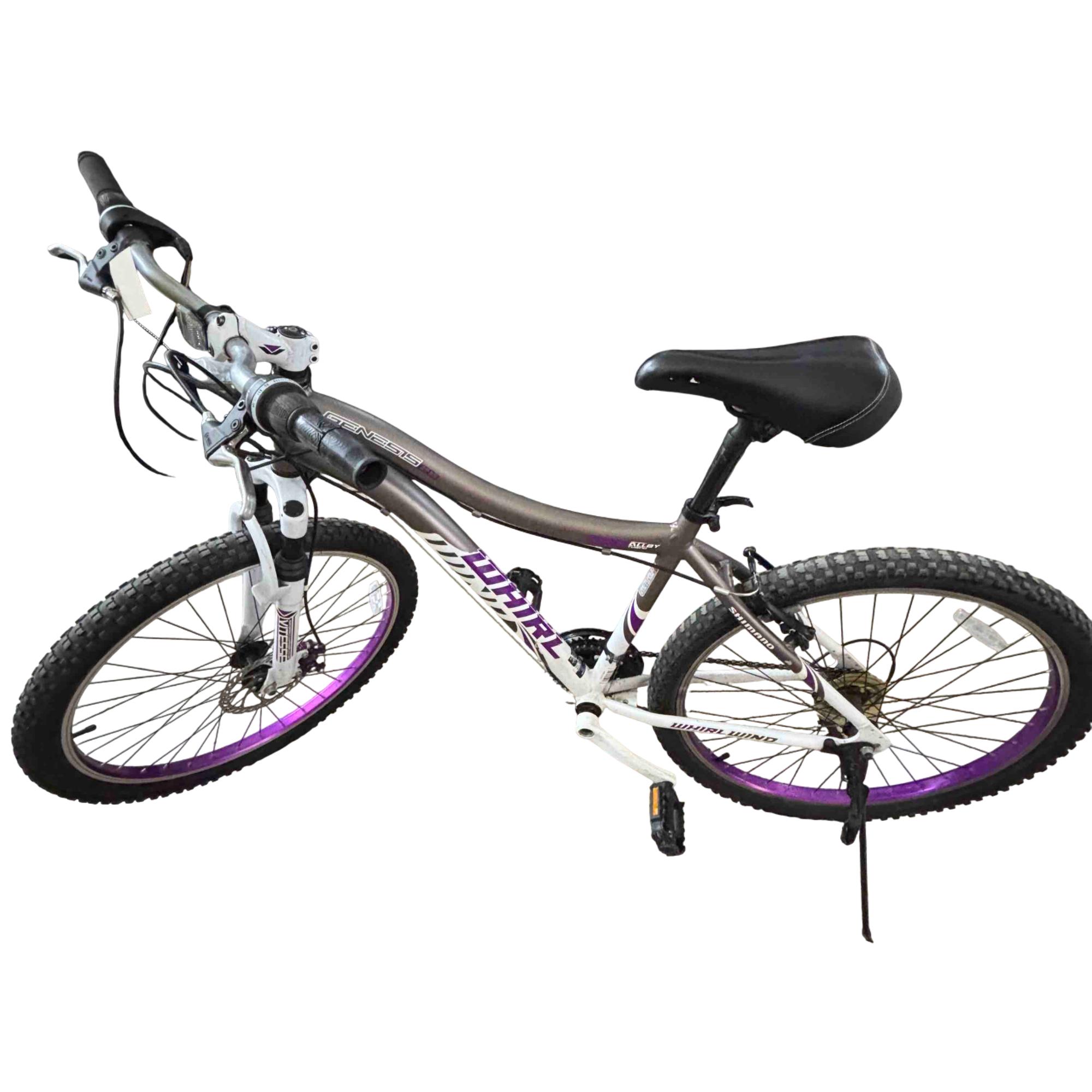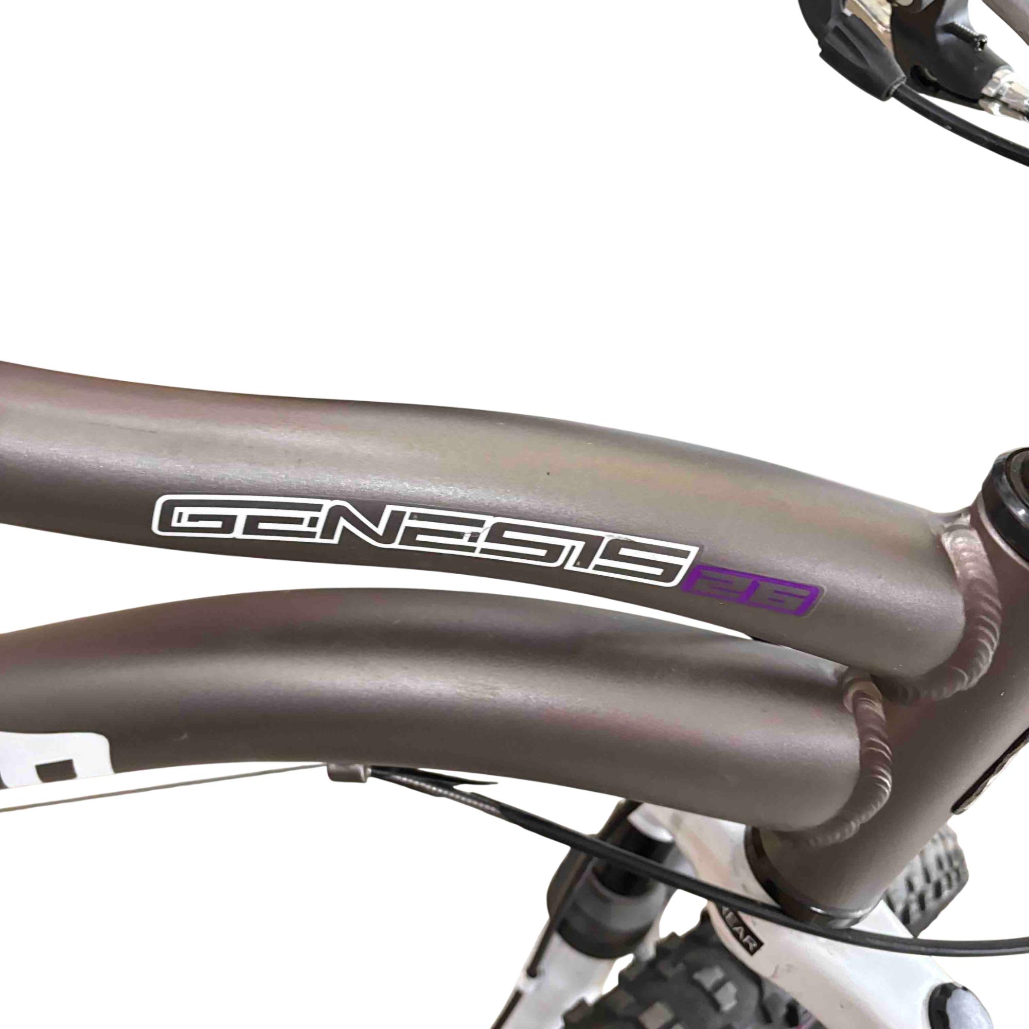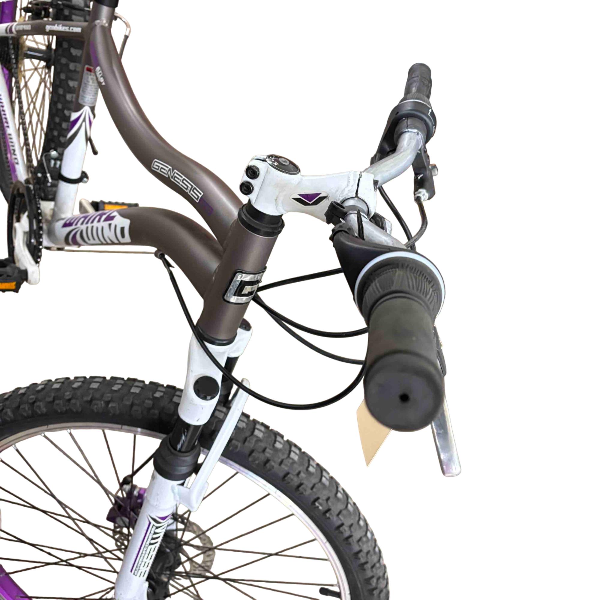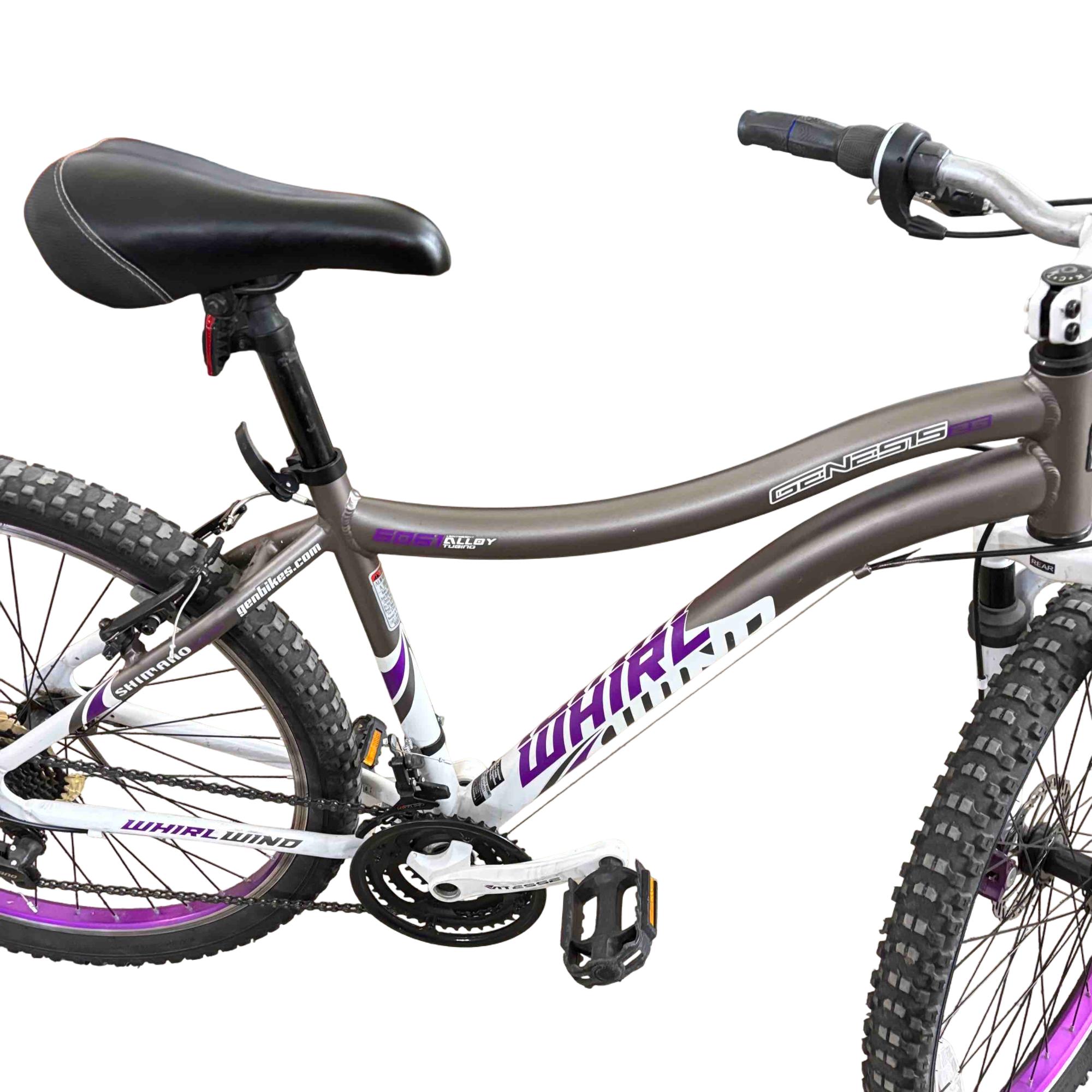 Ride with confidence and style on the Genesis GS62651 26" Mountain Bike. Equipped with Shimano Whirlwind gears and a performance suspension system, this bike is designed to conquer both urban streets and rugged trails. Its vibrant purple and white accents give it a standout look while providing a smooth and reliable ride.
