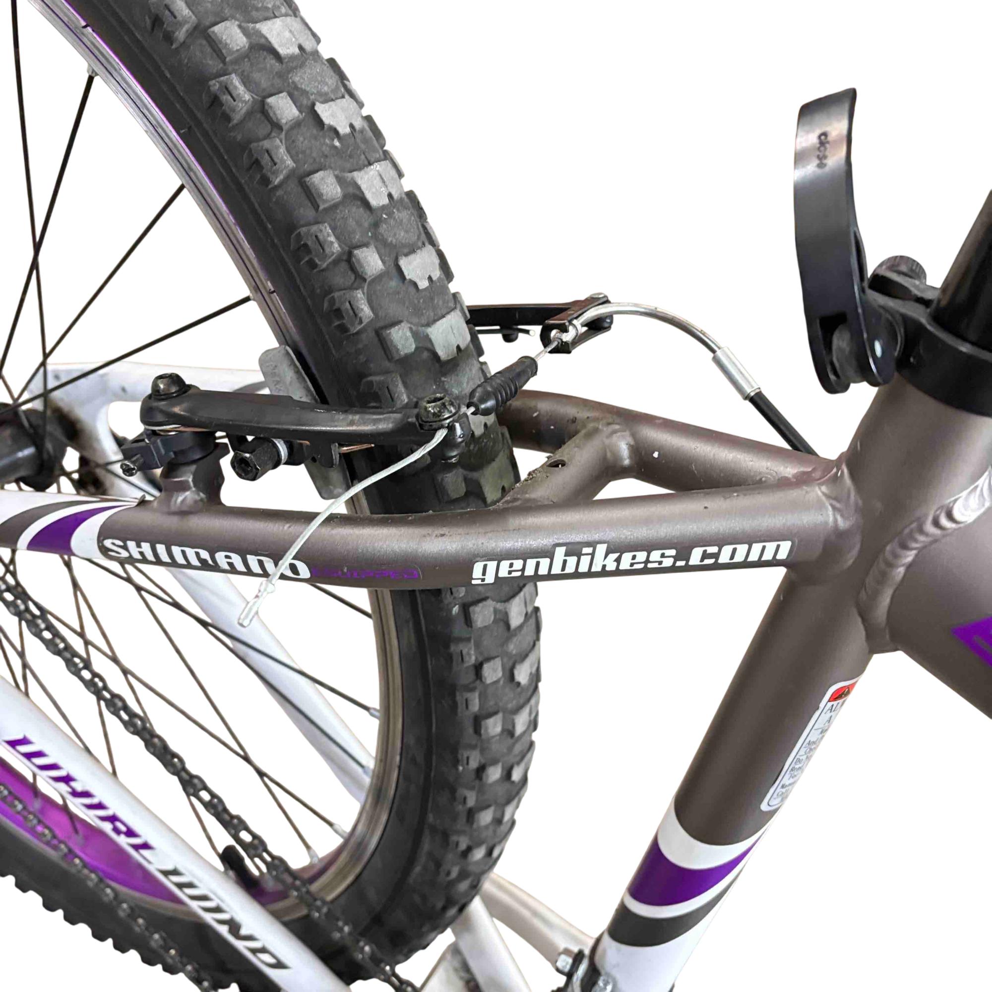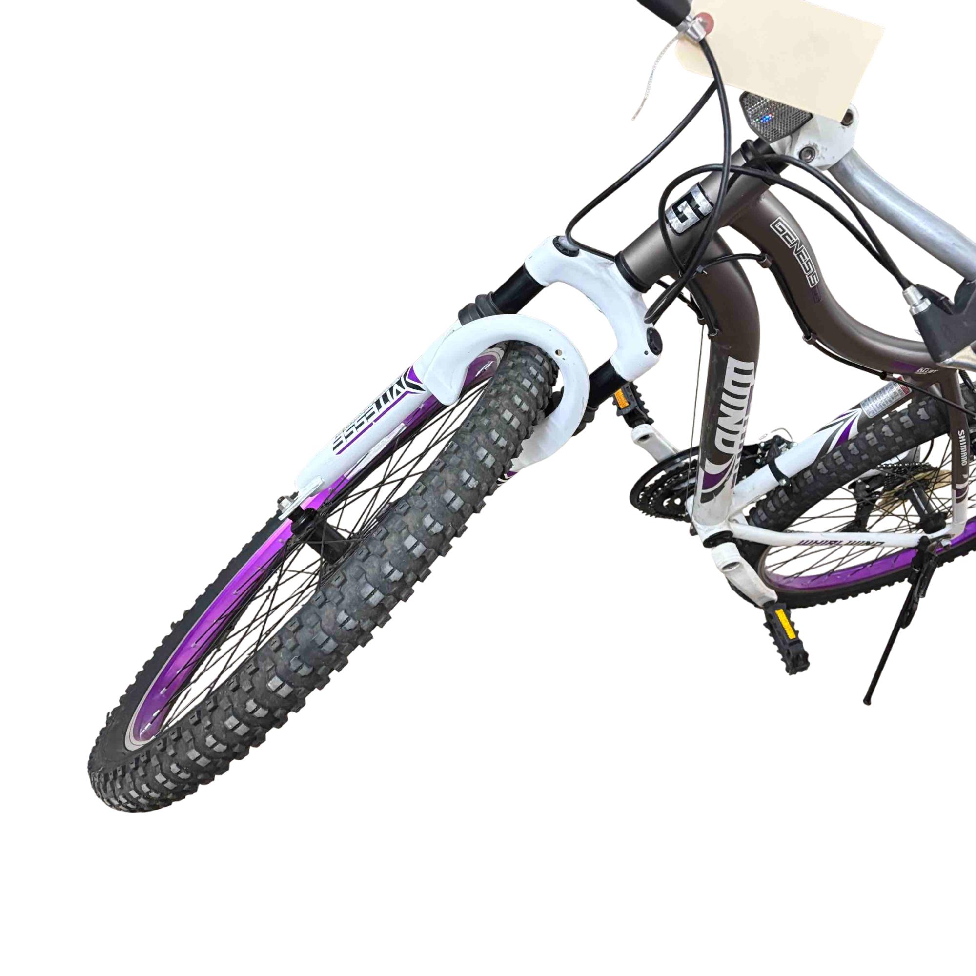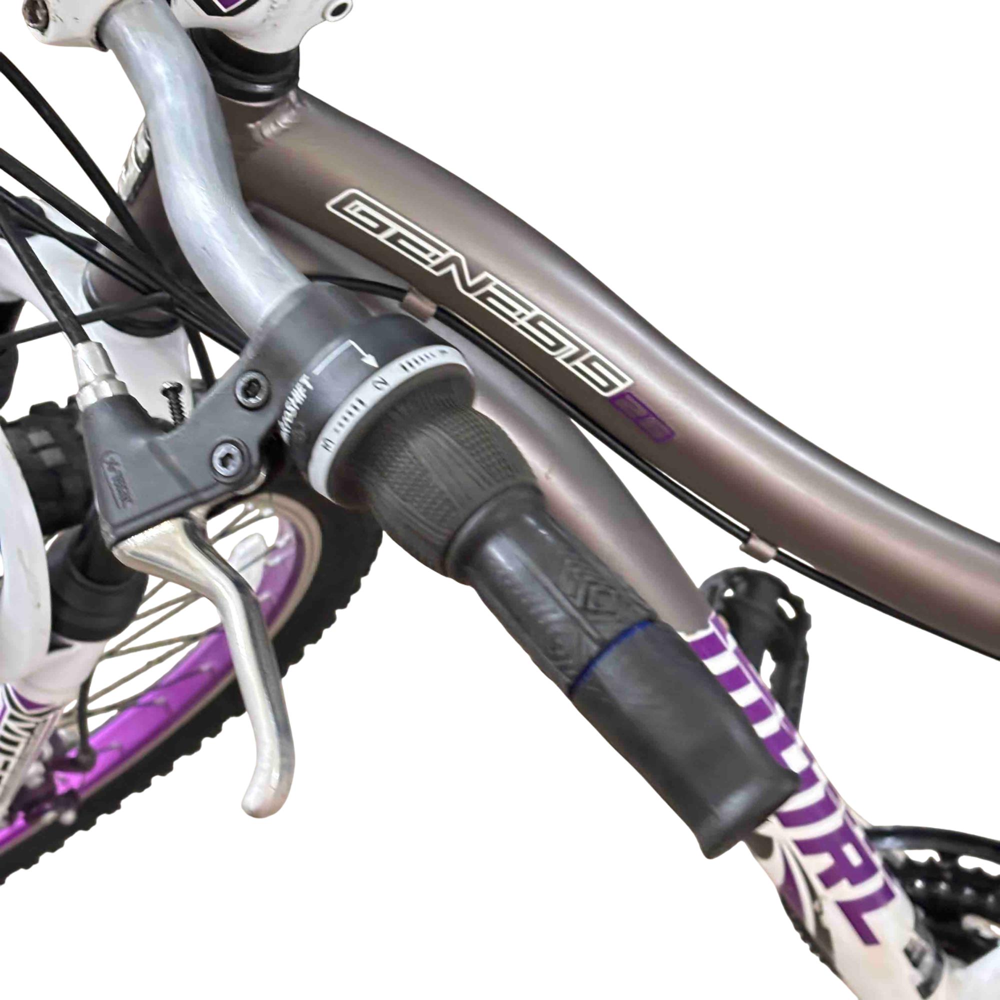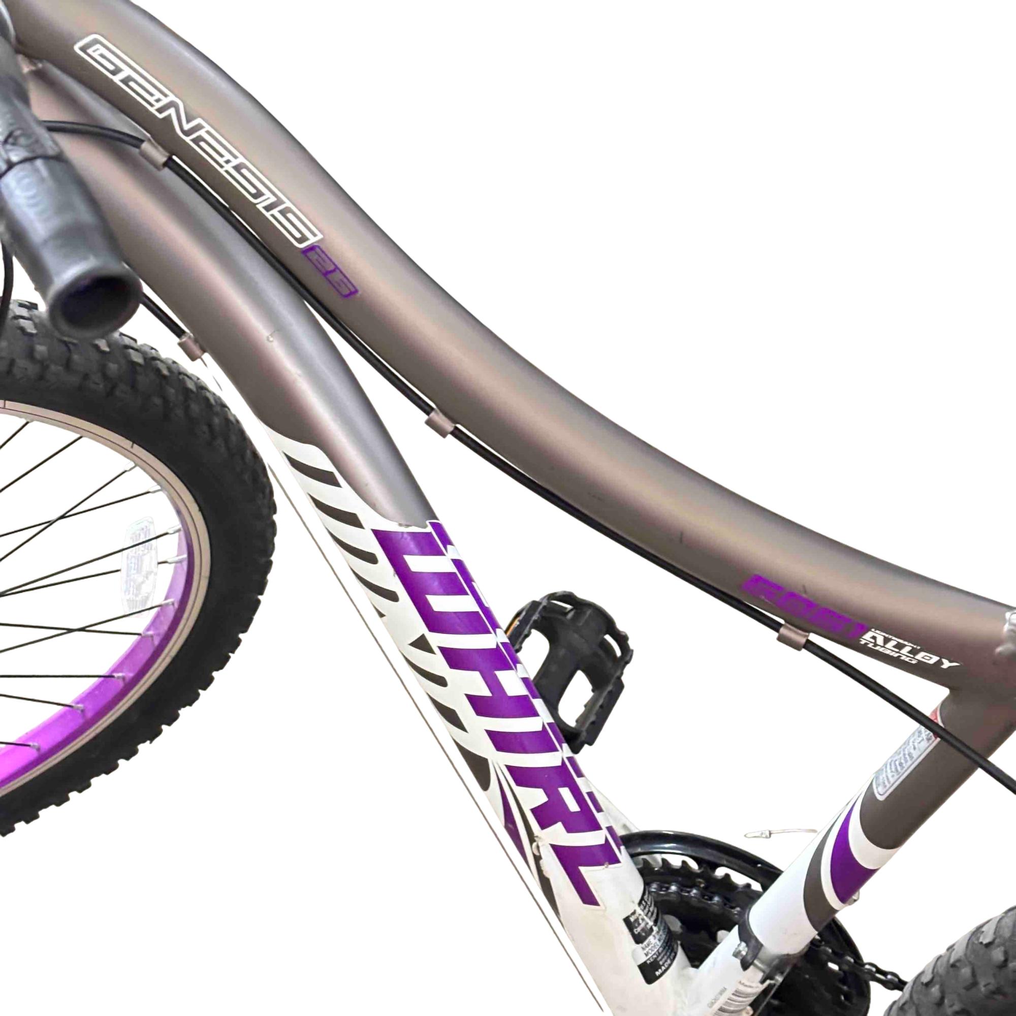 Ride with confidence and style on the Genesis GS62651 26" Mountain Bike. Equipped with Shimano Whirlwind gears and a performance suspension system, this bike is designed to conquer both urban streets and rugged trails. Its vibrant purple and white accents give it a standout look while providing a smooth and reliable ride.