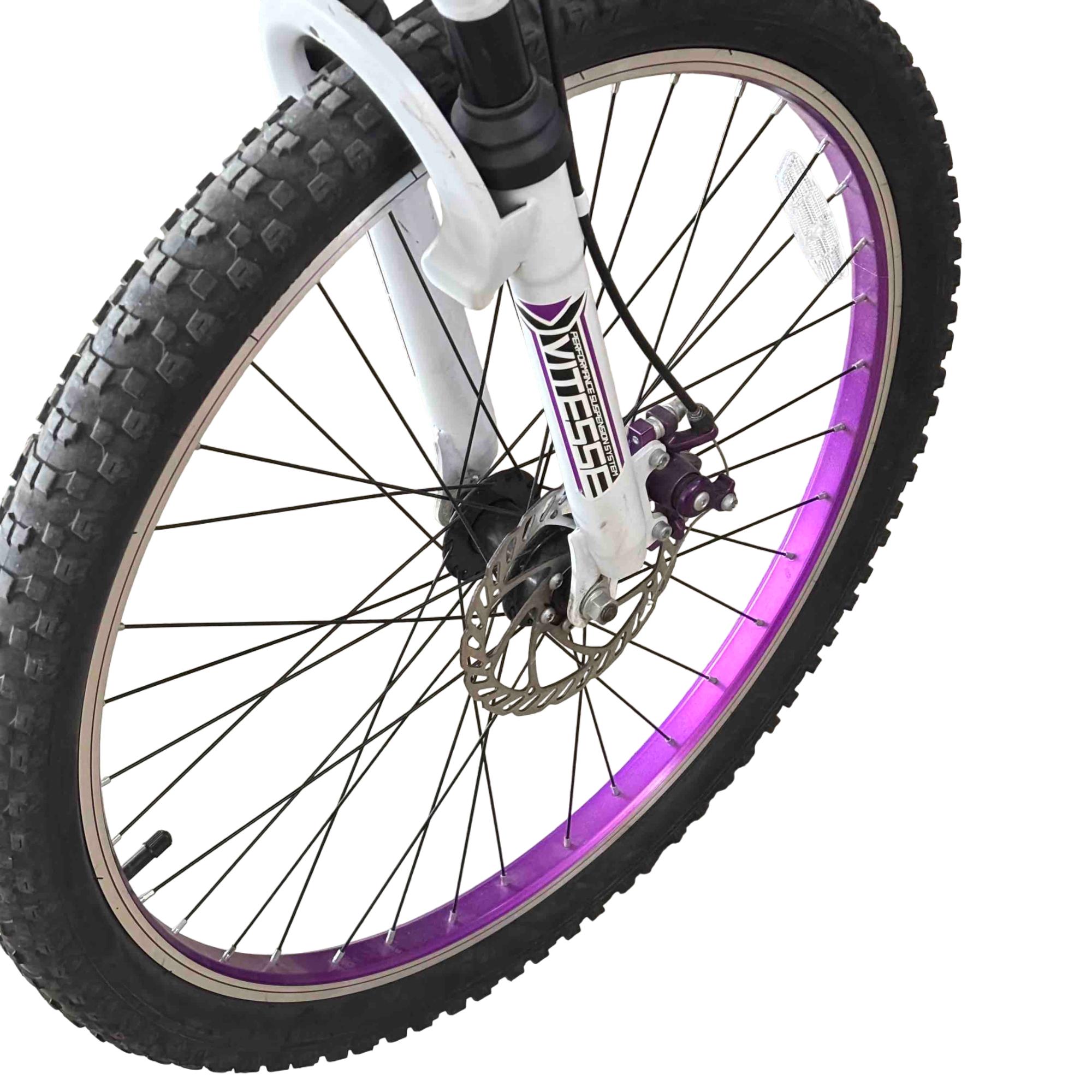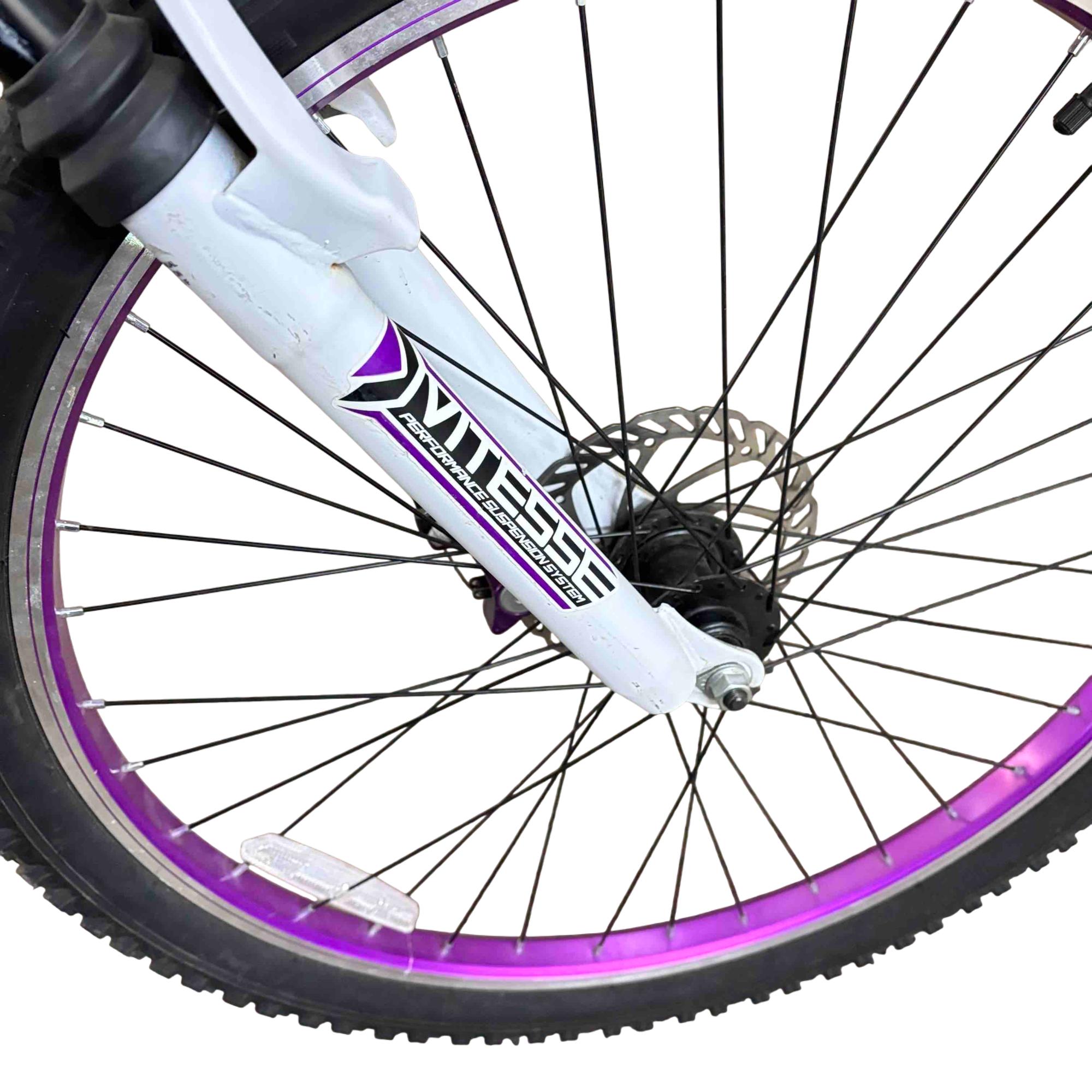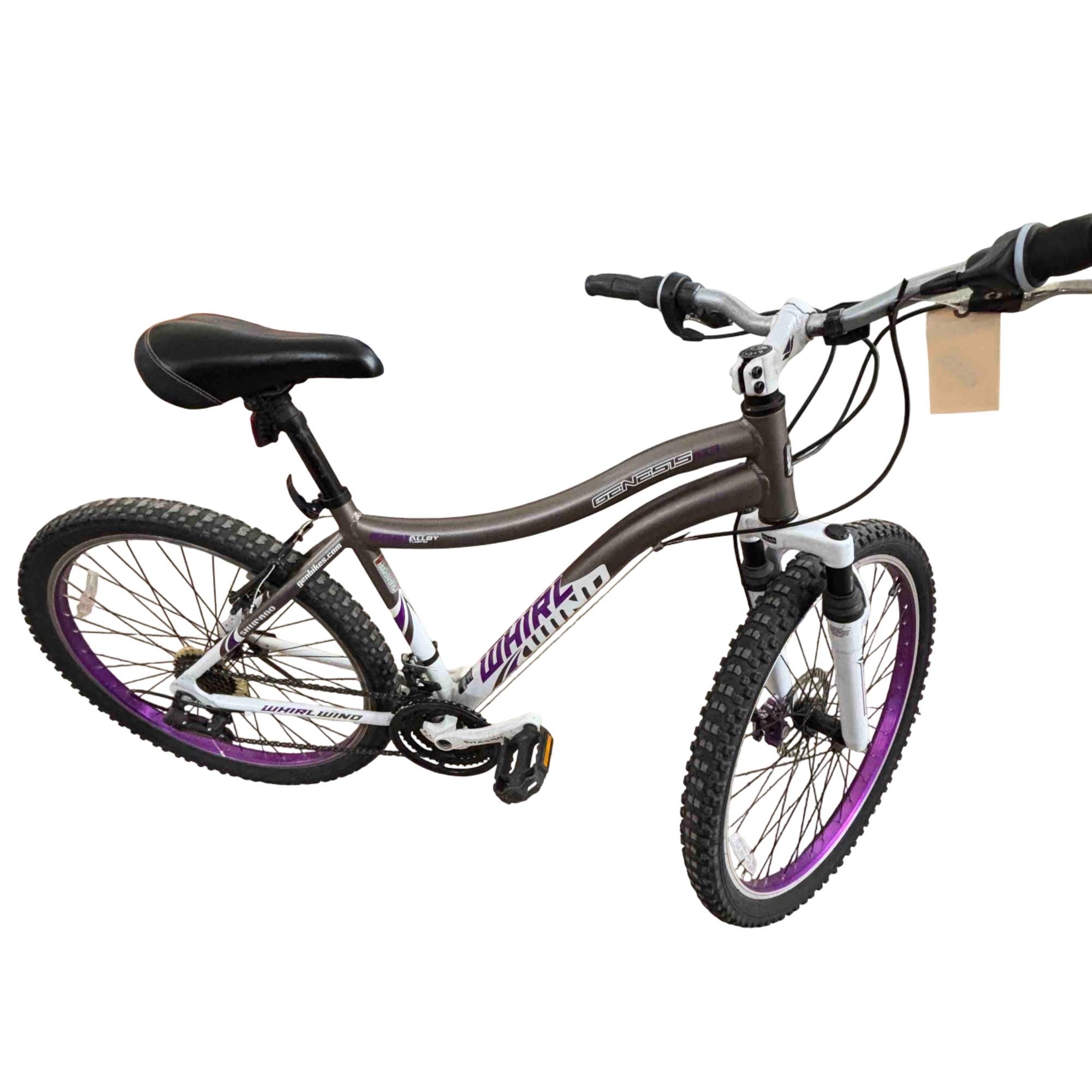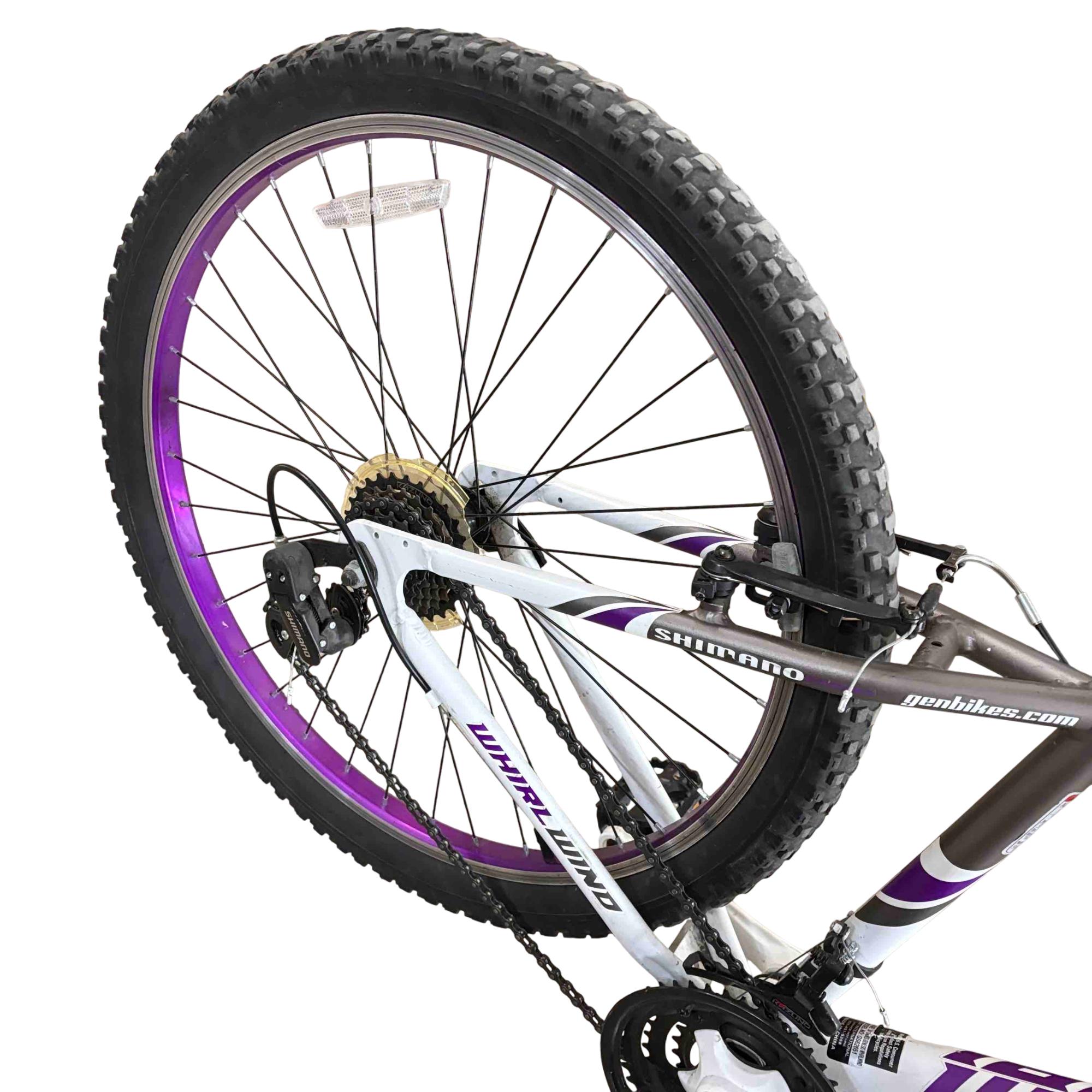 Ride with confidence and style on the Genesis GS62651 26" Mountain Bike. Equipped with Shimano Whirlwind gears and a performance suspension system, this bike is designed to conquer both urban streets and rugged trails. Its vibrant purple and white accents give it a standout look while providing a smooth and reliable ride.