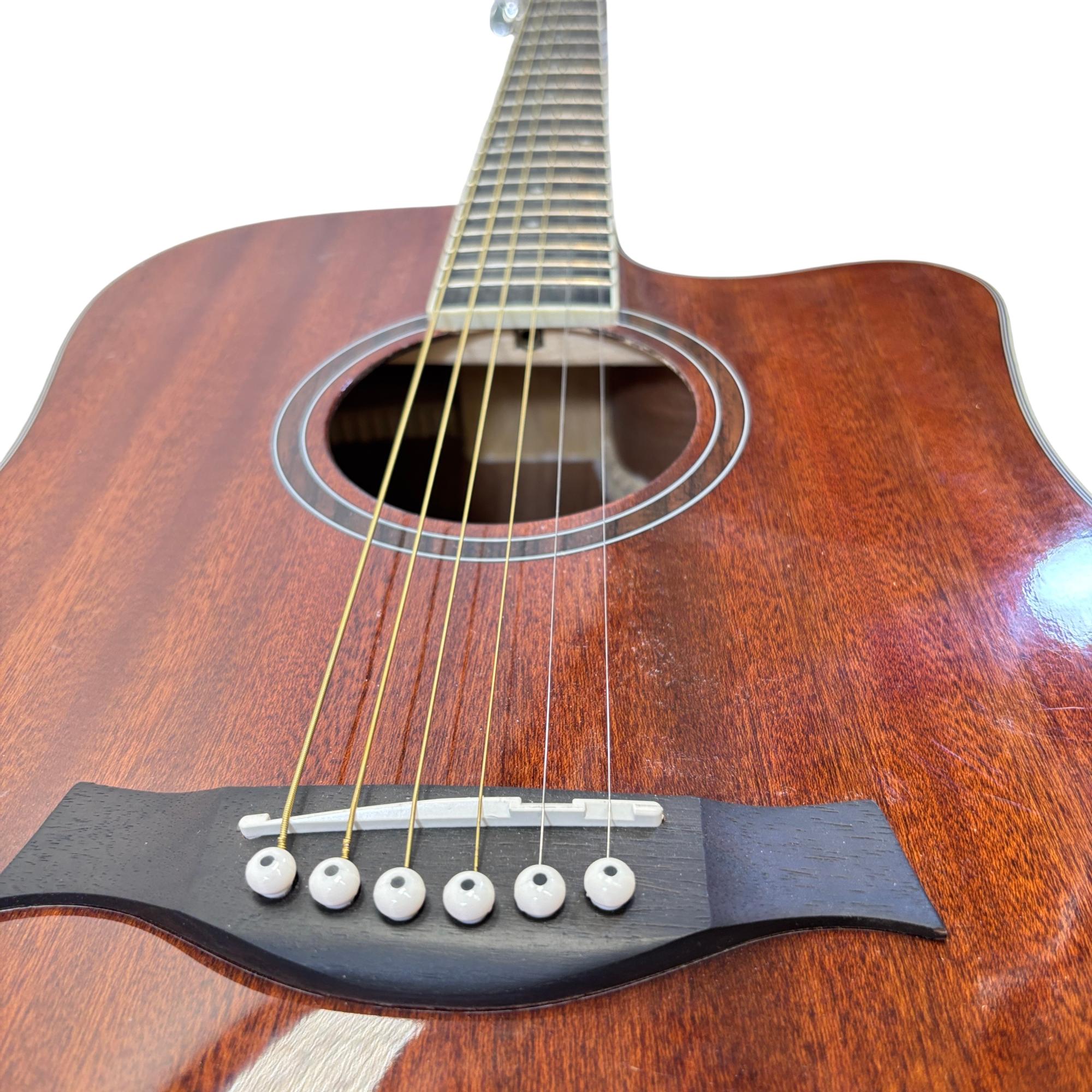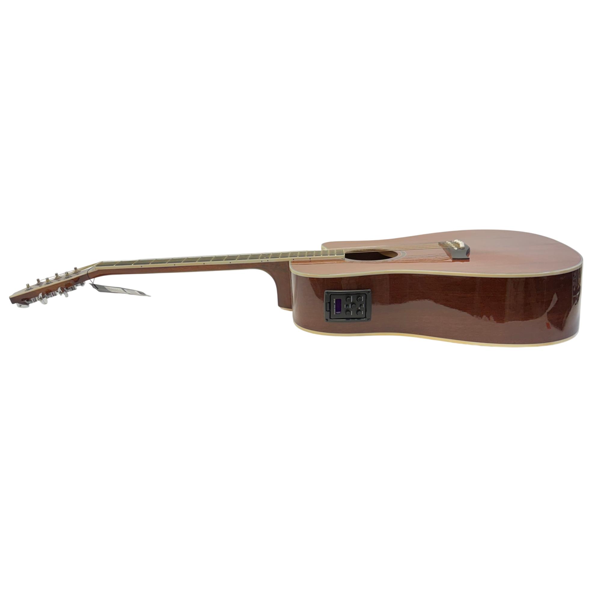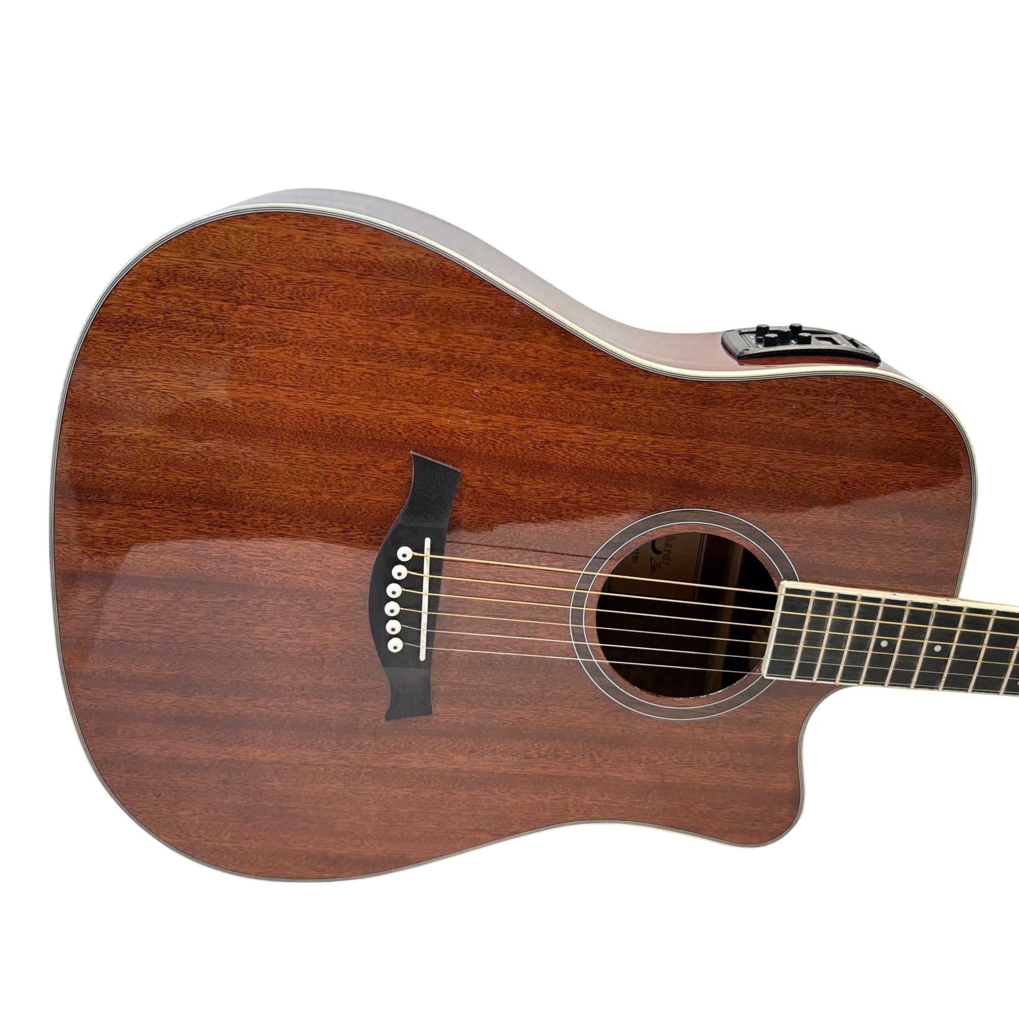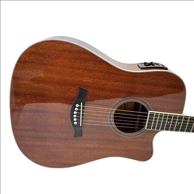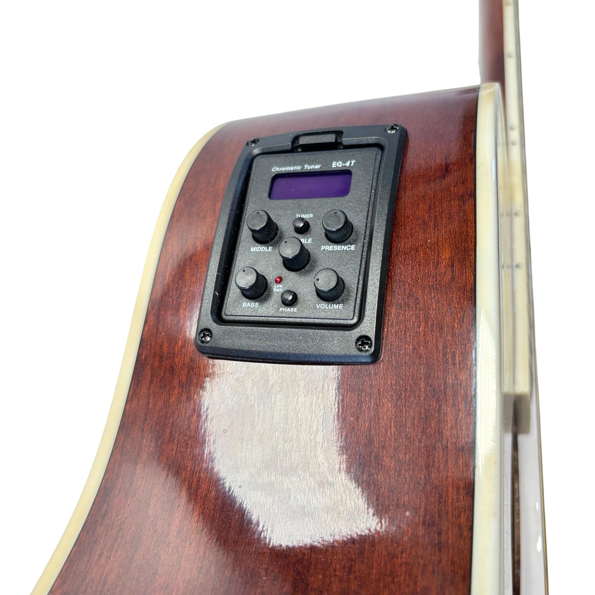 The Gephardt Zion Electro-Acoustic Guitar is crafted with a mahogany body that delivers rich, warm tones ideal for a variety of musical styles. Featuring a built-in chromatic tuner and an EQ-4T system with controls for bass, middle, presence, phase, and volume, this guitar offers versatile sound shaping options for both live performances and studio sessions.