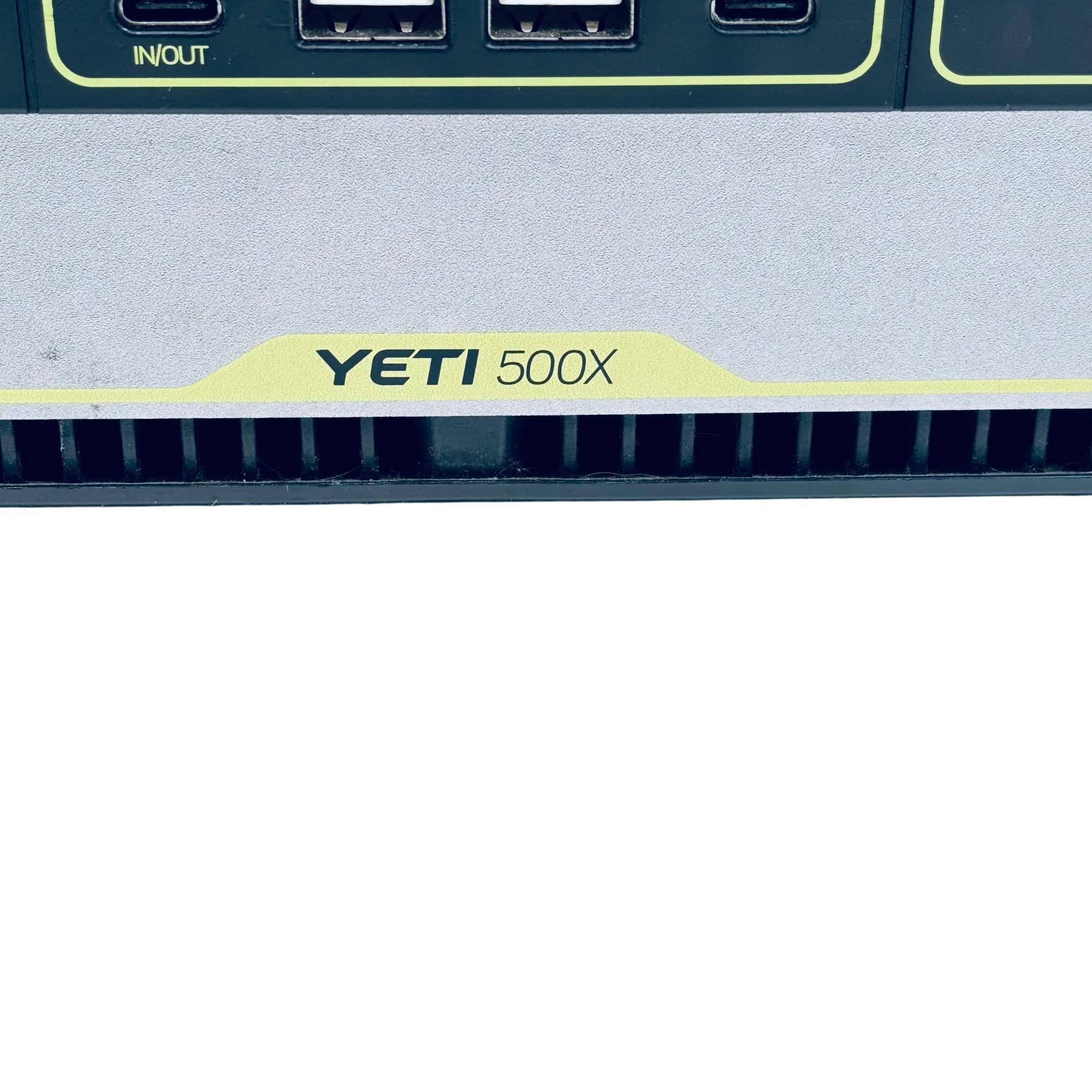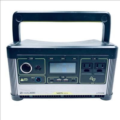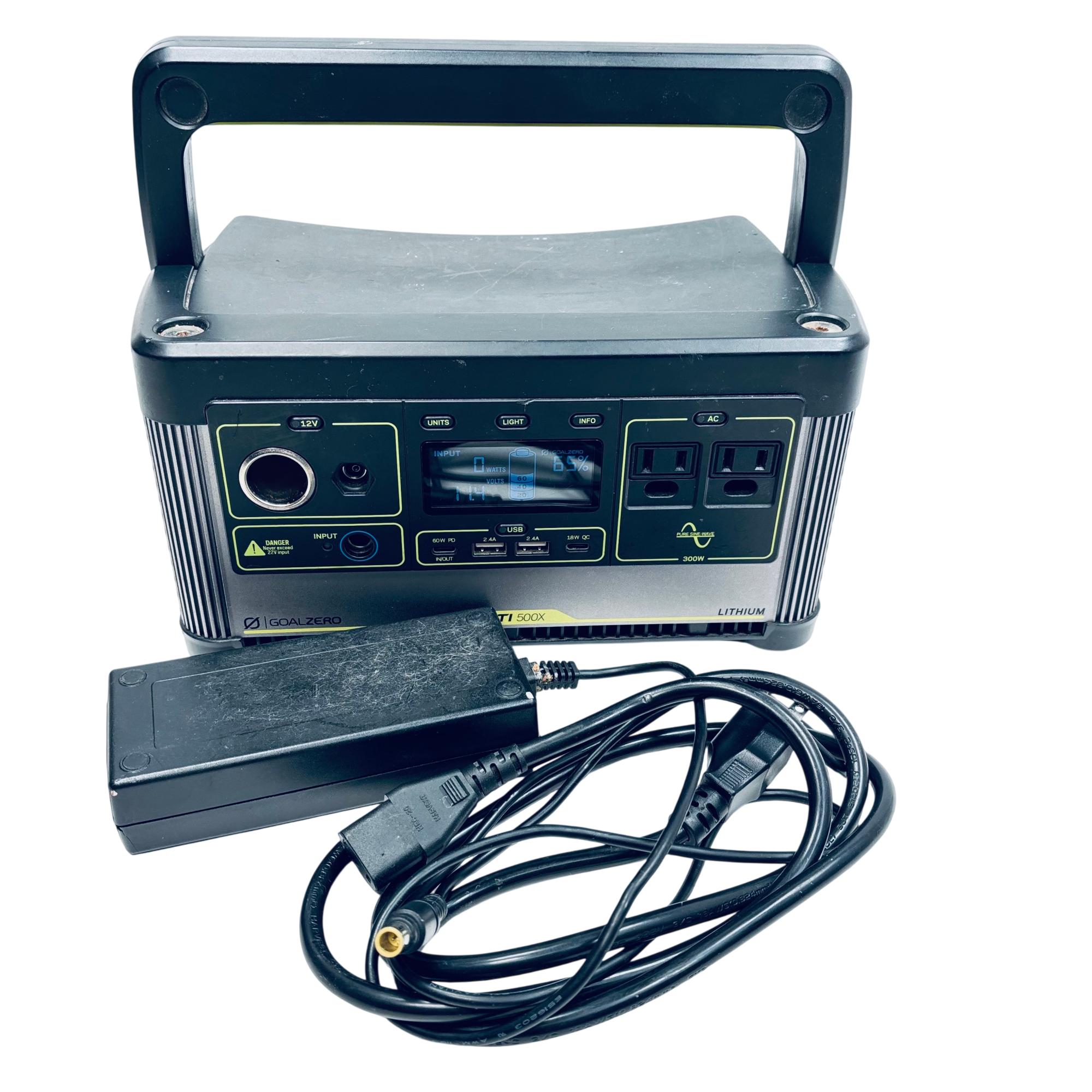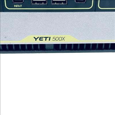 Goal Zero Yeti 500X Portable Power Station offers a compact and versatile power solution with a 500Wh lithium battery capacity. Designed with a robust black and silver metal casing, it features multiple input and output options, including USB and 12V ports, suitable for charging a variety of devices on the go. Its durable build includes a comfortable handle for easy transport, making it ideal for outdoor adventures and emergency power needs.